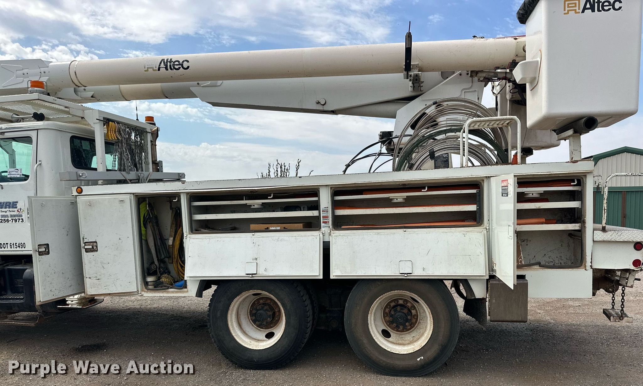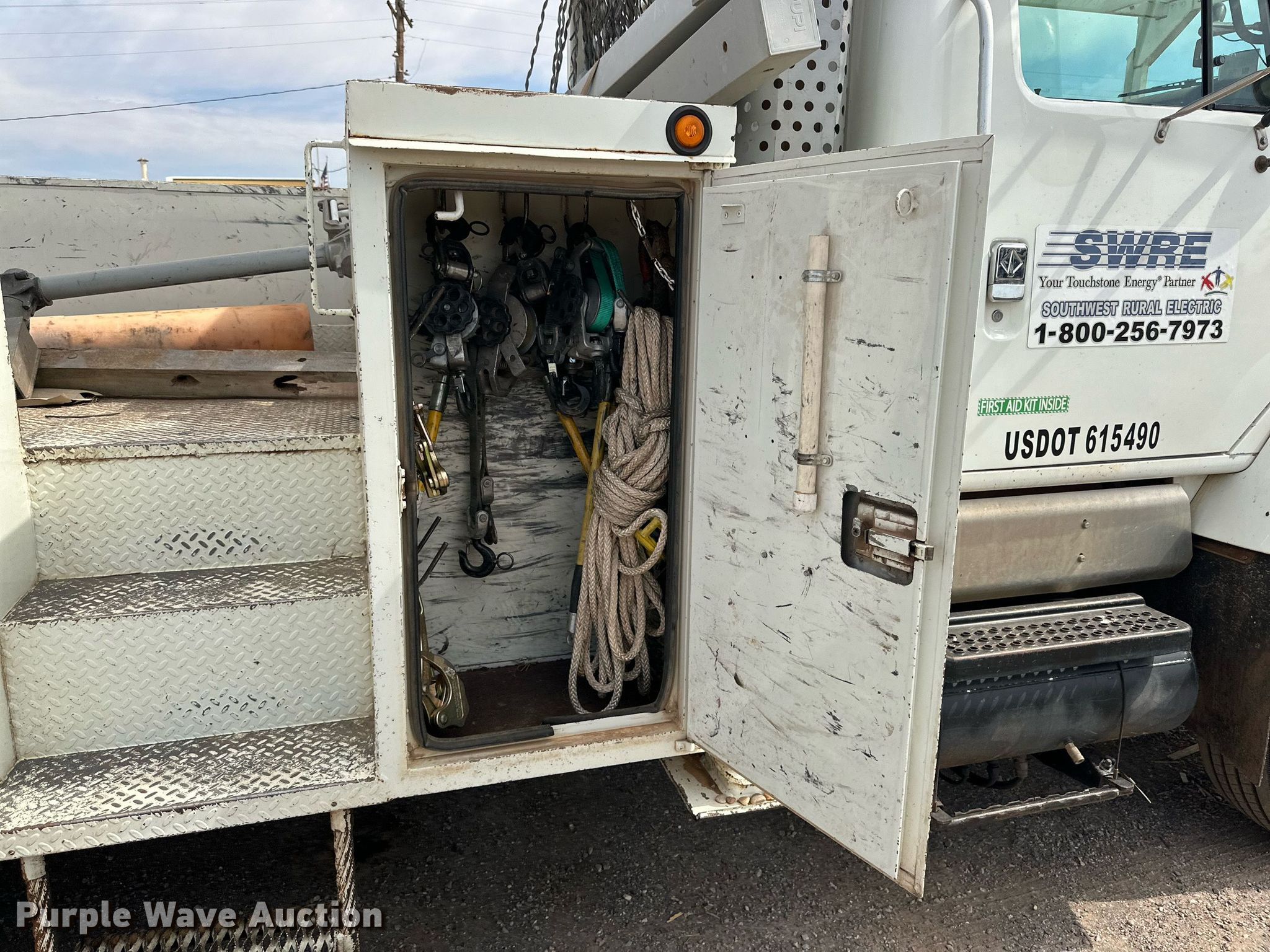 2001 International 2674 bucket truck. Miles: 295,429 on odometer, Hours: 21,196 on meter, VIN: 1HTGLADT31H309466. Engine Displacement: 8.7L, Cylinders: 6, Fuel type: Diesel. Transmission Eaton Fuller 8LL, Manual, Speed: 10. Chassis Axles: Tandem, Suspension: Spring, Brakes: Air, PTO. Interior AC, Heat, Heated mirrors, Cruise control. Features Bed 18' L x 96" W, Boom Maximum lift capacity: 300 lbs, Maximum lift height: 62', Boom type: Articulating, Man basket, Boom controls Ground, Platform/ basket, Material handler. Tires Size: 11R22.5. Notes Radio not included, Contents in toolboxes not included. Oklahoma title. Title distribution may be delayed up to 14 days from verification of funds. Southwest Rural Electric Association, Inc.. Tipton, OK 73570