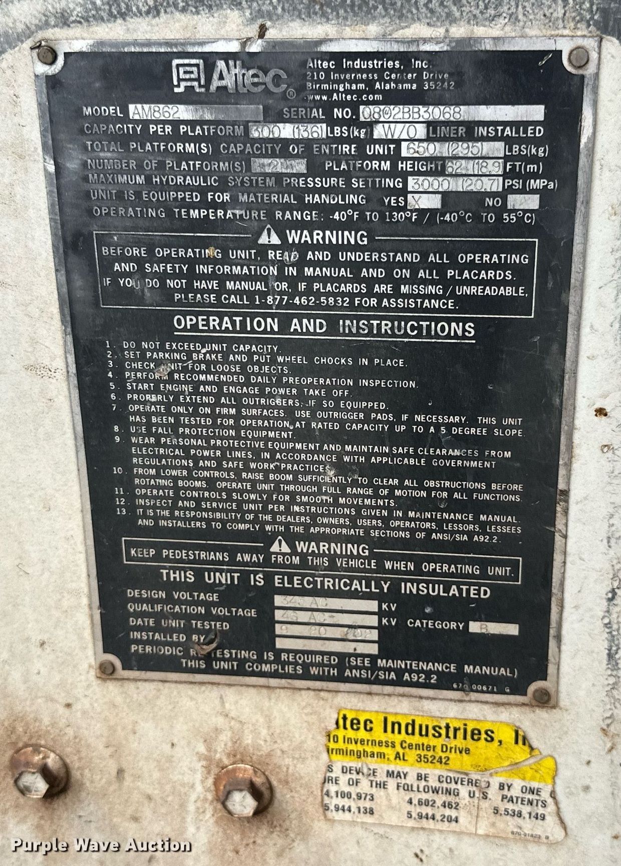 - Maximum lift height: 62'