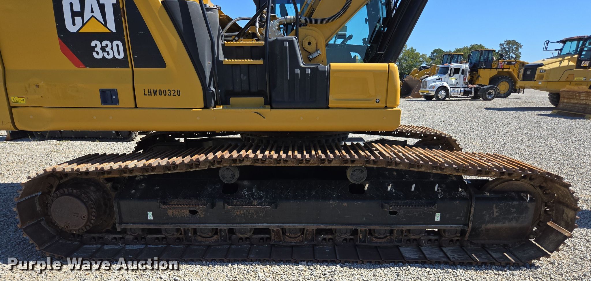 2019 Caterpillar 330 excavator. Hours: 5,976 on meter, Serial: CAT00330LLHW00320. Engine Caterpillar C7.1 Acert, Displacement: 7.1L, Cylinders: 6, Fuel type: Diesel. Transmission Hydrostatic, Two speed travel, Straight travel. Operators station Enclosed cab, AC, Heat. Features Auxiliary hydraulics, Boom Standard, Stick Stick length: 10' 3", Thumb: Manual, Bucket Caterpillar, Capacity: 2.37 cu.yd., Width: 72", Cutting edge: Bolt-on. Tracks Width: 31.5", Steel, Grouser pads: Triple. Jonesboro, AR 72404
