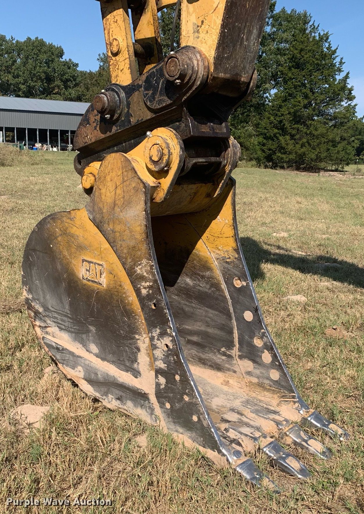 1996 Caterpillar 322L excavator. Hours: 9,704 on meter, Miles or hours may vary, unit still in use, Serial: 9RL01221. Engine Caterpillar 3116, Serial: 98Z16985, Displacement: 6.6L, Cylinders: 6, Fuel type: Diesel. Transmission Hydrostatic, Two speed travel. Operators station Enclosed cab, Heat. Features One-way, Boom Standard, Stick Stick length: 9' 8", Quick coupler: Hydraulic, Bucket Caterpillar, Width: 28", Cutting edge: Bolt-on, Teeth: 4. Tracks Width: 31.5", Steel, Grouser pads: Triple. Notes Non-operational quick coupler, Front glass missing. Winnsboro, TX 75494