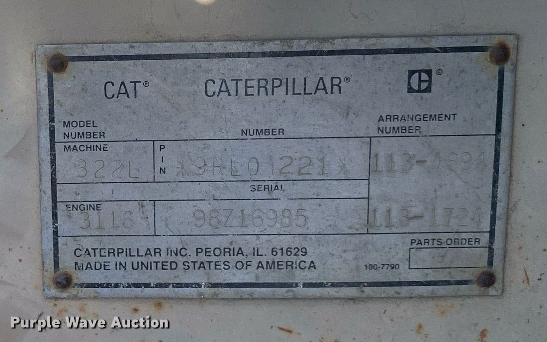 Purple Wave is selling a used Hydraulic Excavator in Texas. This item is a 1996 Caterpillar 322L excavator with the following: Hours: 9,704 on meter, Miles or hours may vary, unit still in use, Serial: 9RL01221