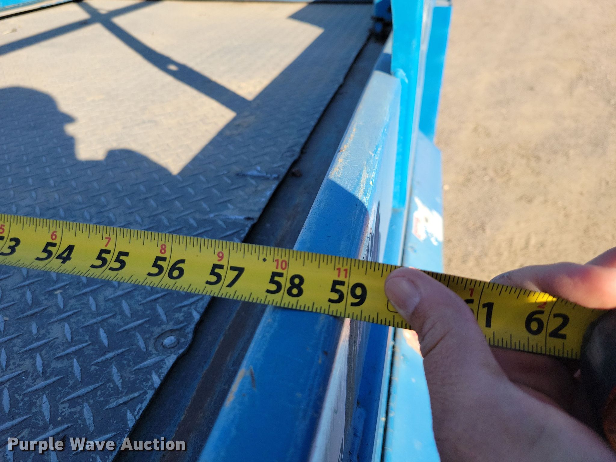2008 Genie GS-2668 RT scissor lift. Hours: 1,834 on meter, Serial: GS6808-51667. Engine Perkins 403C-11, Cylinders: 3, Fuel type: Diesel. Chassis Four wheel drive. Features Maximum lift capacity: 1,250 lbs, Maximum reach length: 32', Maximum lift height: 26', Hydraulic outriggers, Platform: 156" L x 59" W, AC power outlet, Air outlet, Controls: Platform, Remote Control, Platform extensions: Manual. Tires Tire size: 26x12D380 NHS, Solid, Non-marking. Mitchell, SD 57301