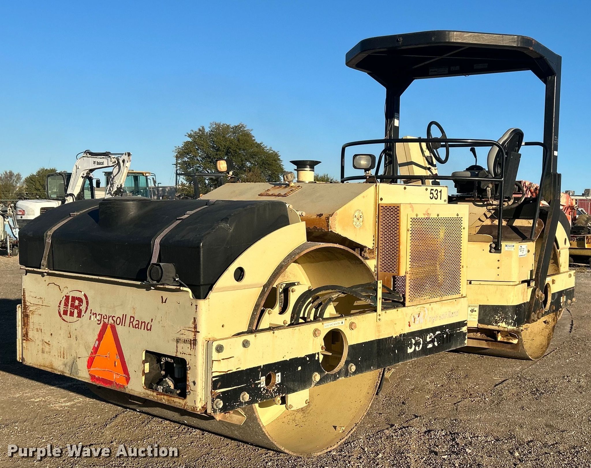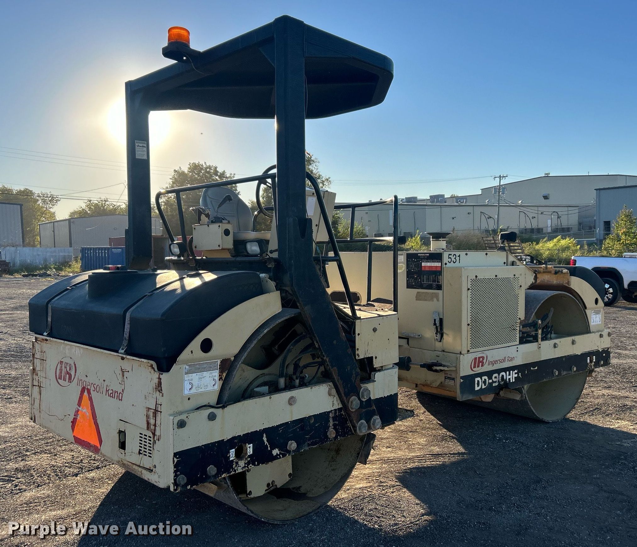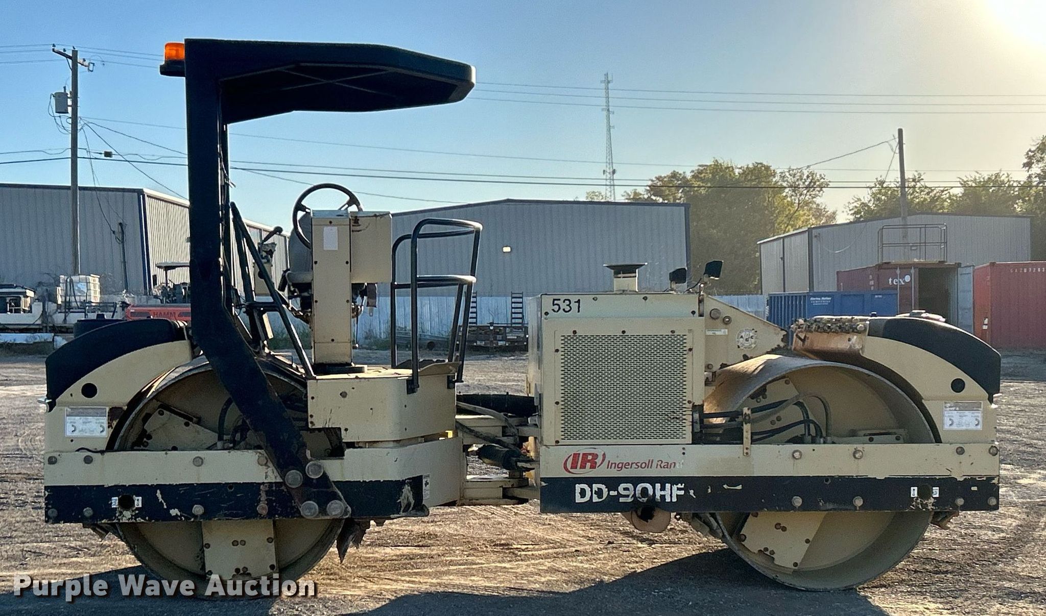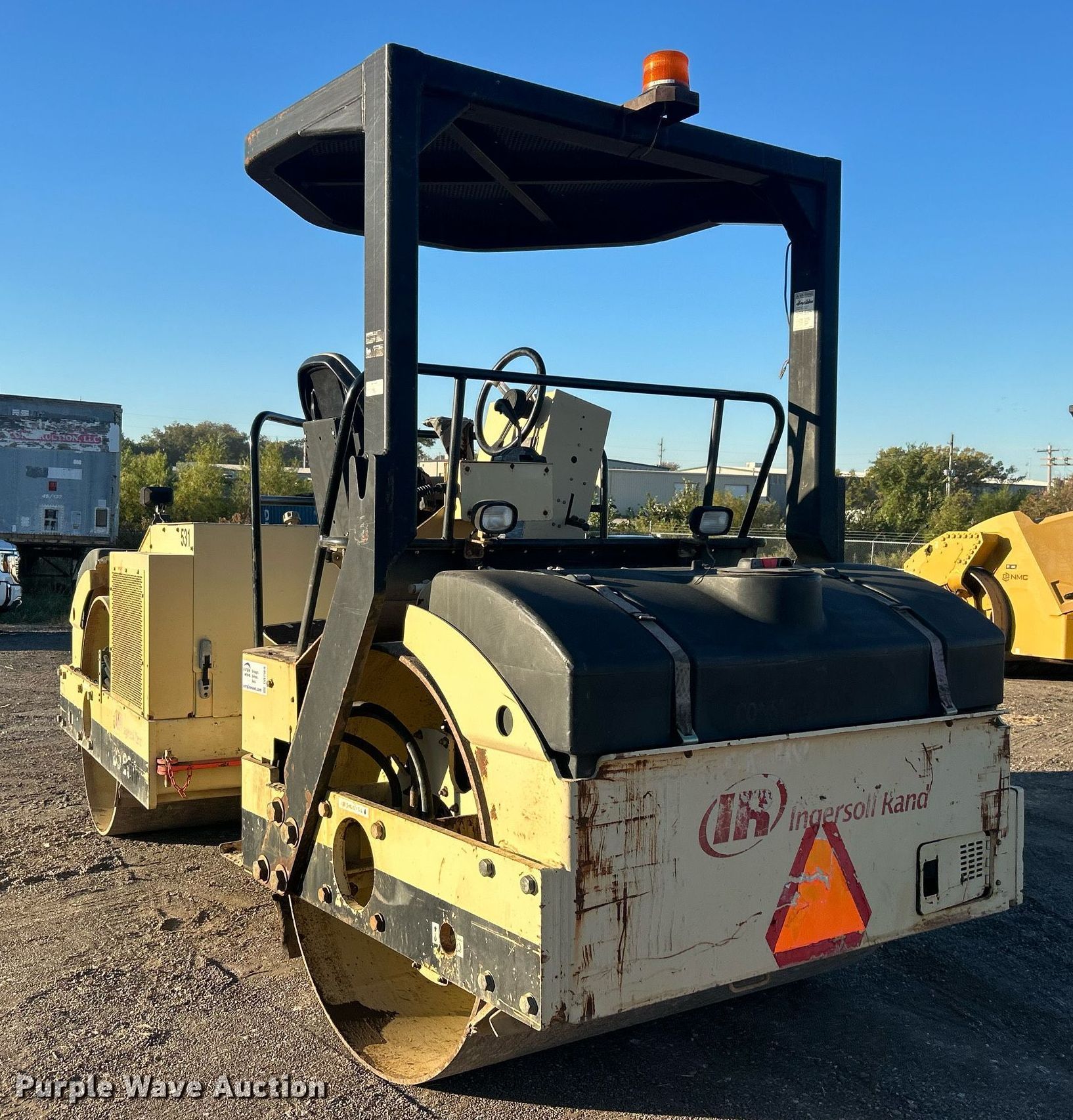 Purple Wave is selling a used Double Drum Roller Compactor in Oklahoma. This item is a 2007 Ingersoll Rand DD-90HF double drum vibratory roller with the following: Hours: 5,339 on meter, Serial: 193197