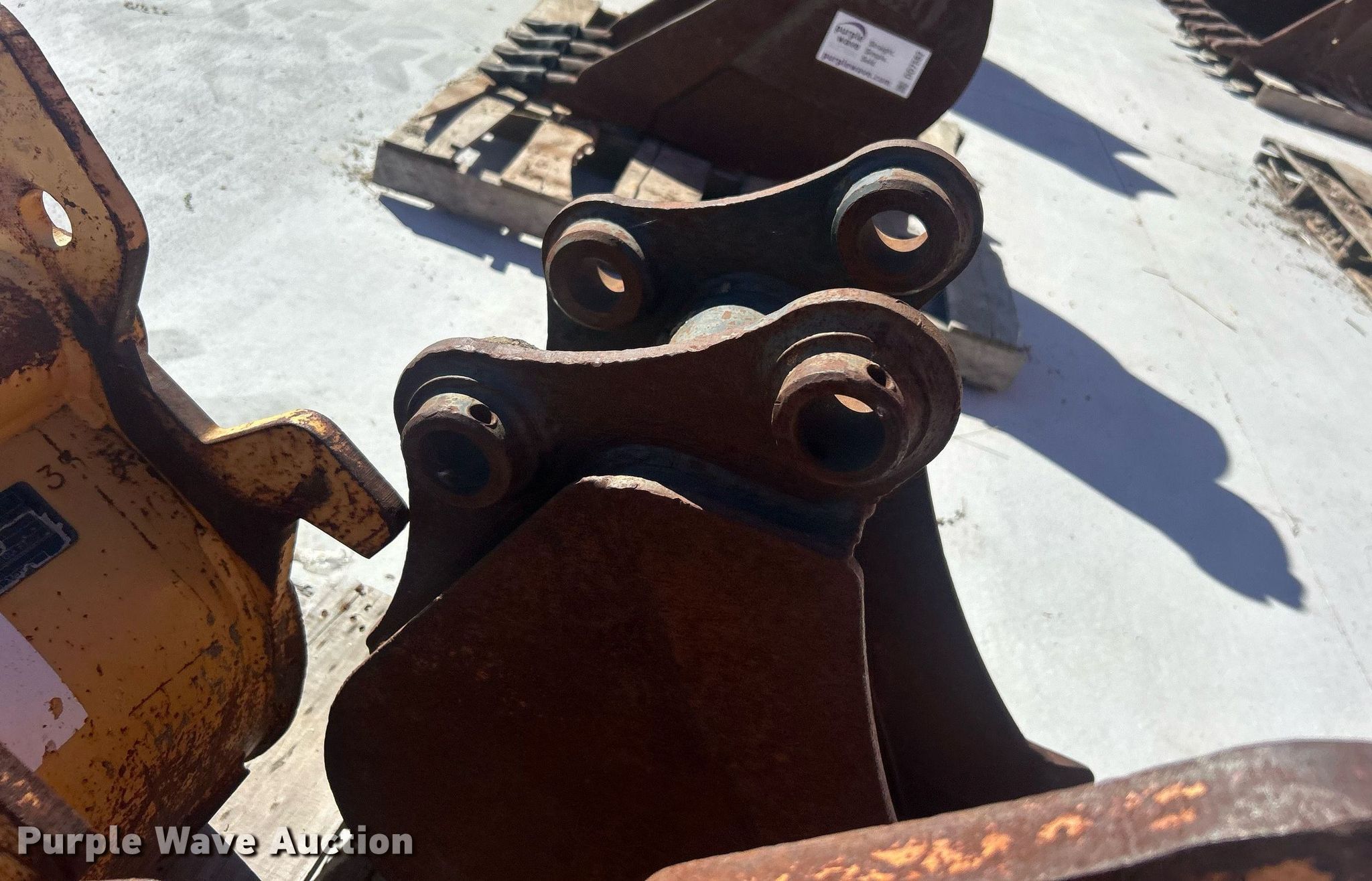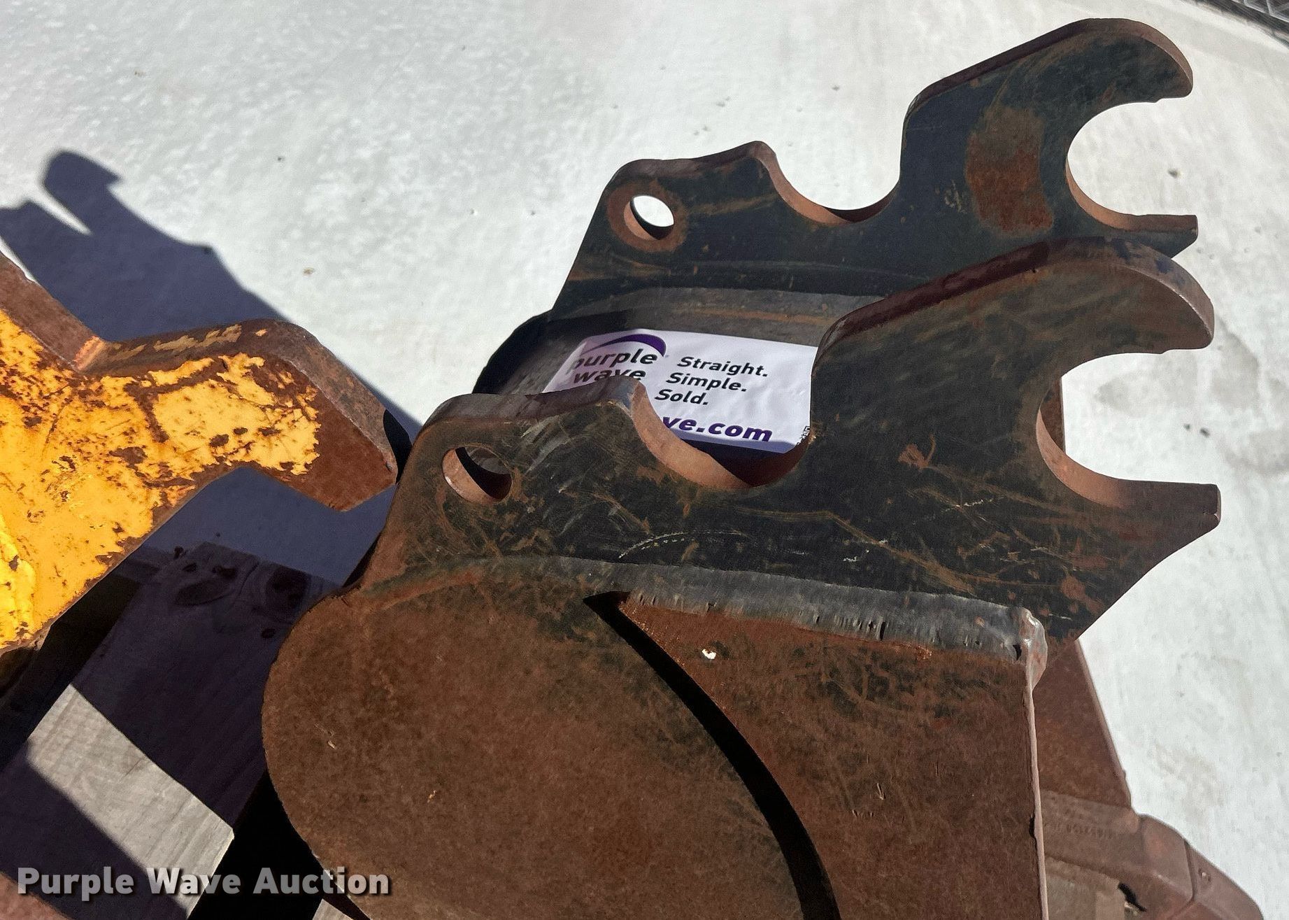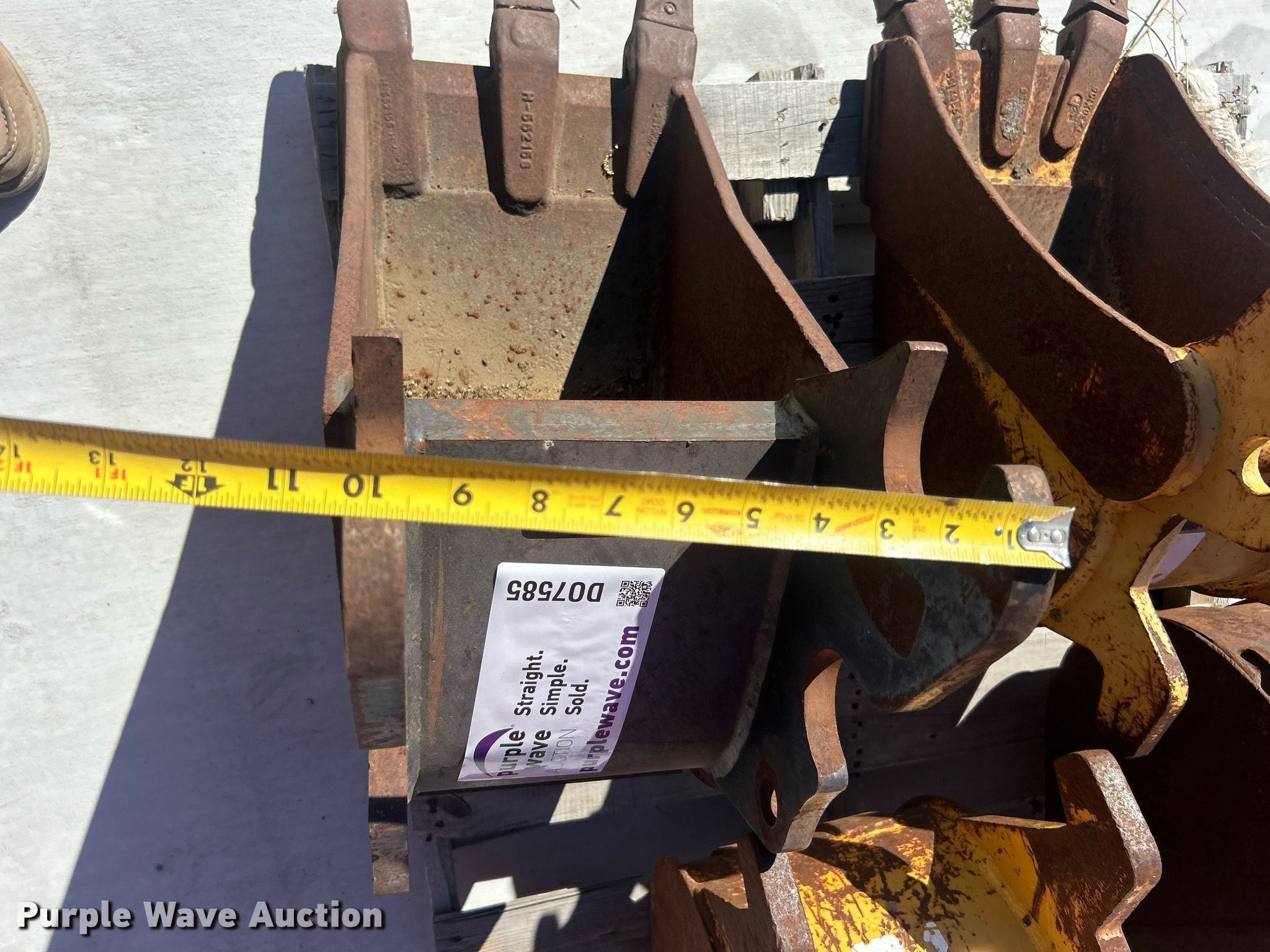 Purple Wave is selling a used Bucket or Loader Attach. in Oklahoma. This item is a (4) buckets with the following: Width: 12", Teeth: 3, Capacity: 2.1 cu.ft.