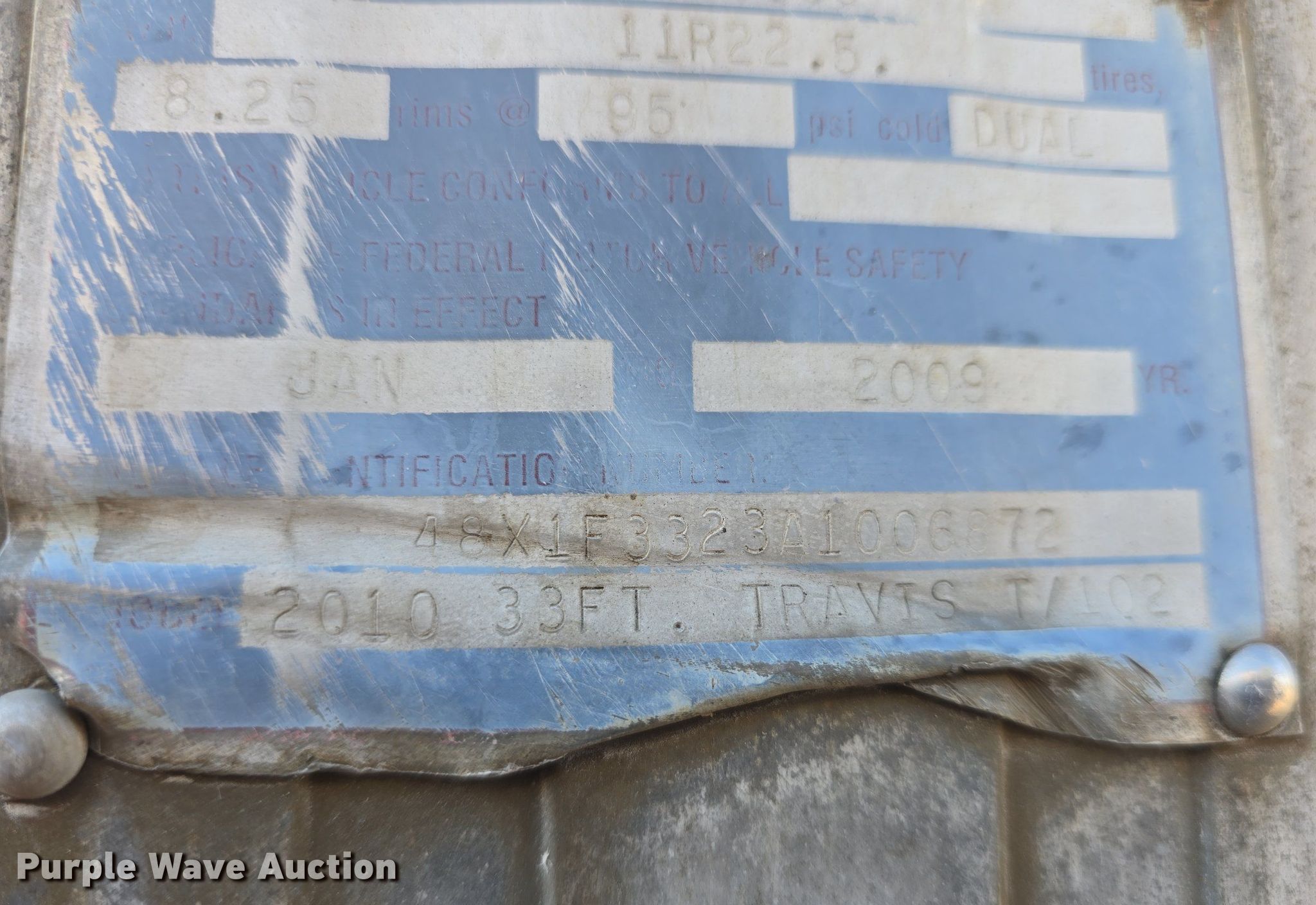Purple Wave is selling a used Grain or Commodity Trailer in Kansas. This item is a 2010 Travis T102 grain trailer with the following: VIN: 48X1F3323A1006872, Unit #: 48
