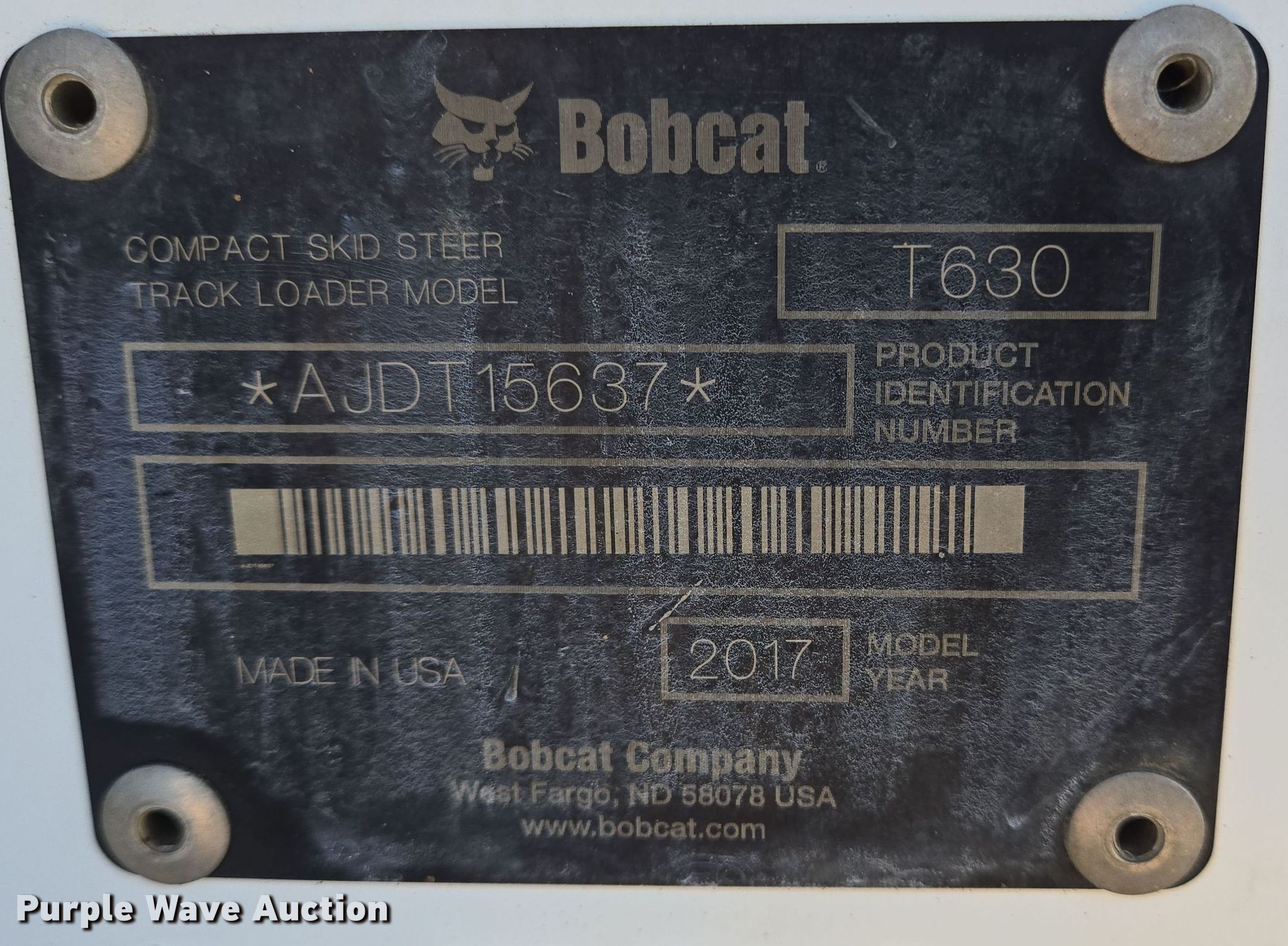 Purple Wave is selling a used Tracked Skid Steer Loader in Texas. This item is a 2017 Bobcat T630 skid steer loader with the following: Hours: 4,462 on meter, Serial: AJDT15637