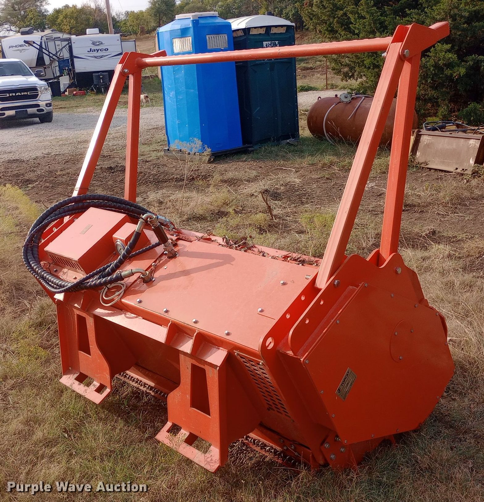 Purple Wave is selling a used Skid Steer Attach. in Kansas. This item is a 2023 Topcat SSFM81 skid steer mulcher with the following: Serial: SSFM8123031301E, Width: 63"