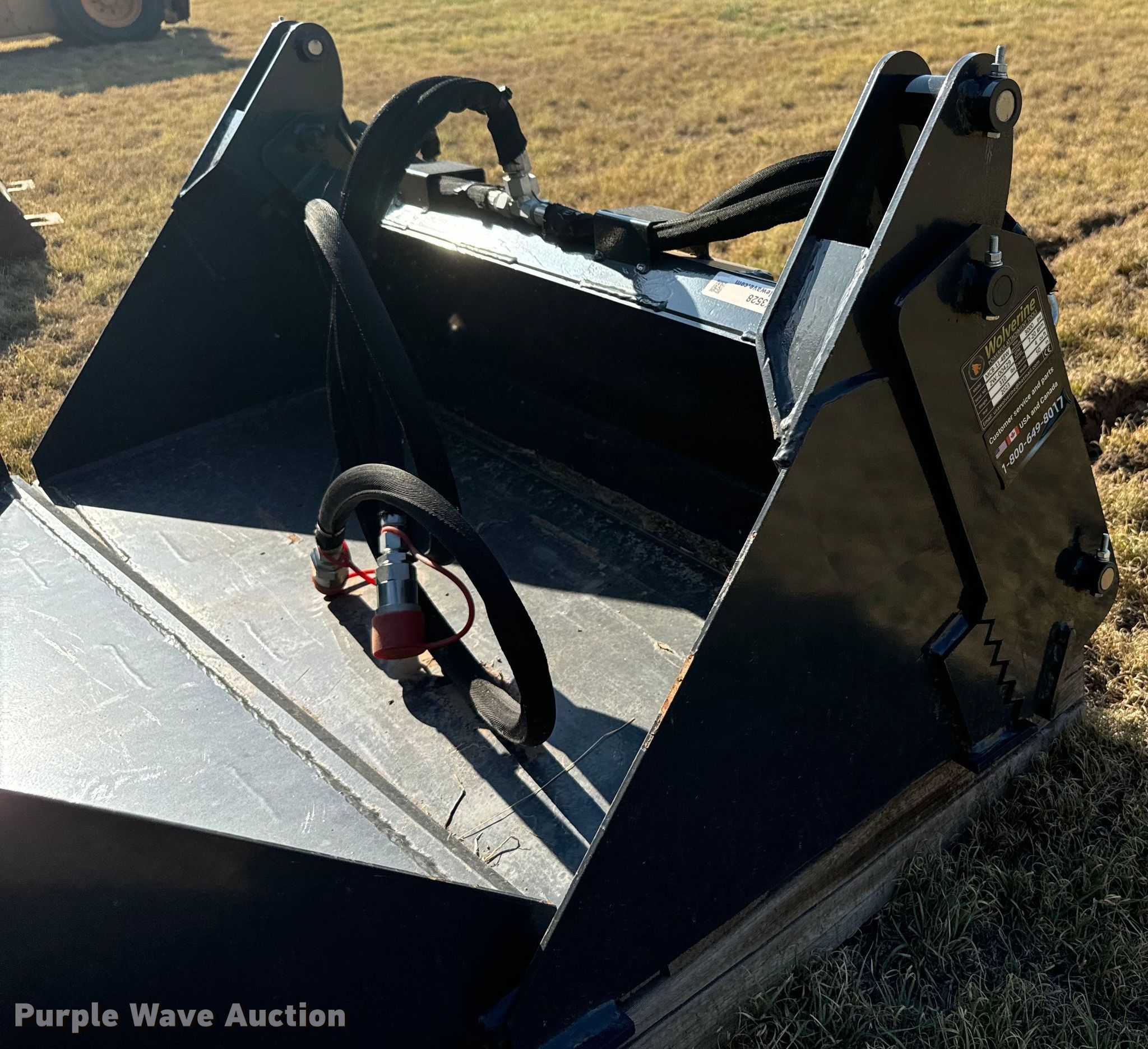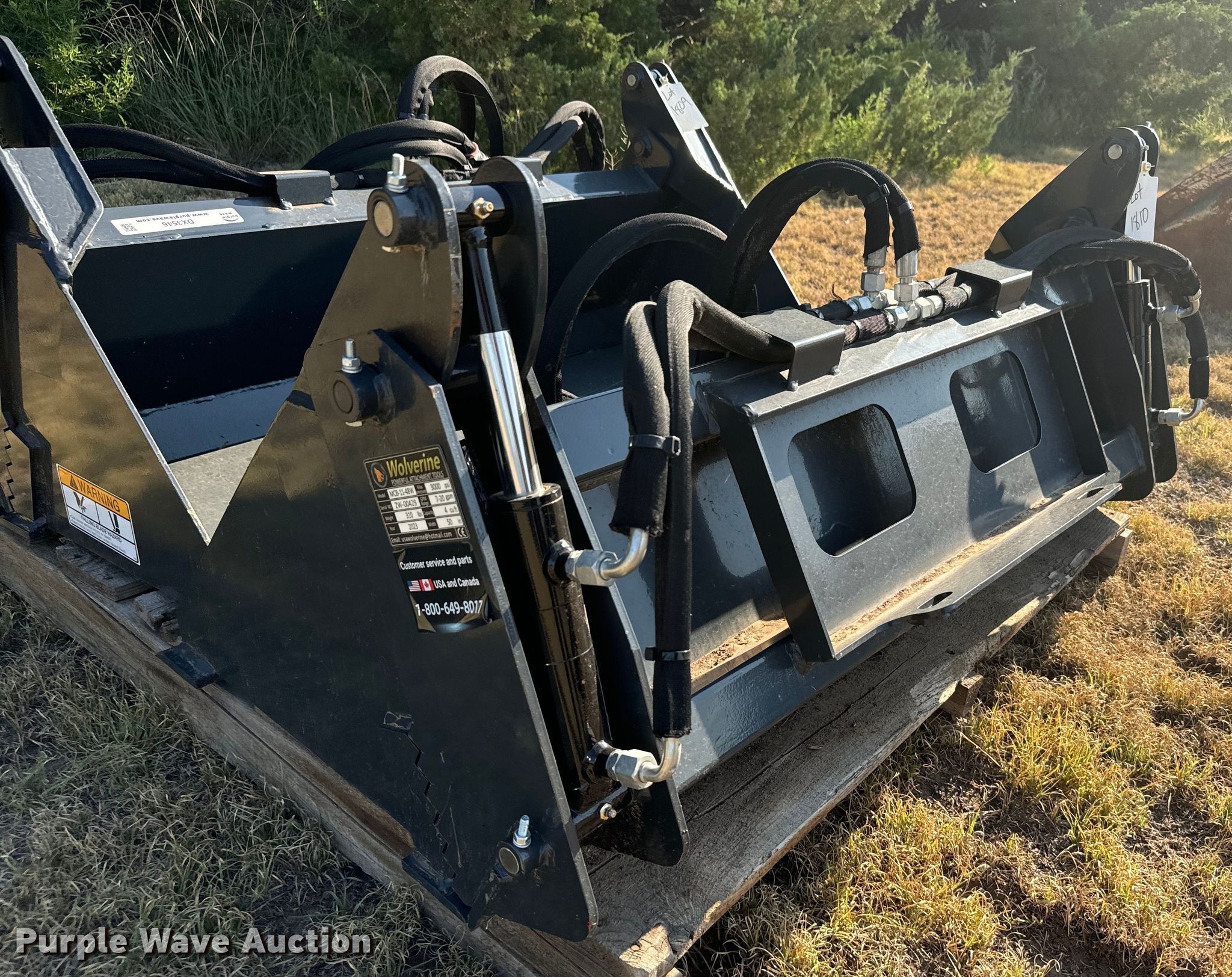 Purple Wave is selling a used Skid Steer Attach. in Kansas. This item is a 2023 Wolverine MCB-11-48W compact utility loader four-in-one bucket with the following: Serial: ZW-00429, Width: 48", Cutting edge: Weld-on
