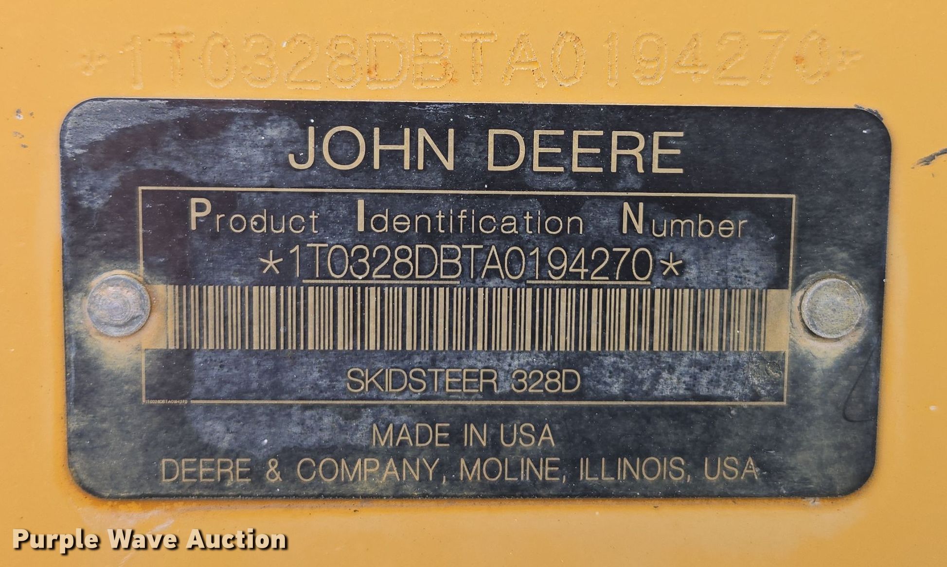 Purple Wave is selling a used Skid Steer Loader in Kansas. This item is a 2011 John Deere 328D skid steer loader with the following: Hours: 4,106 on meter, Serial: 1T0328DBTA0194270