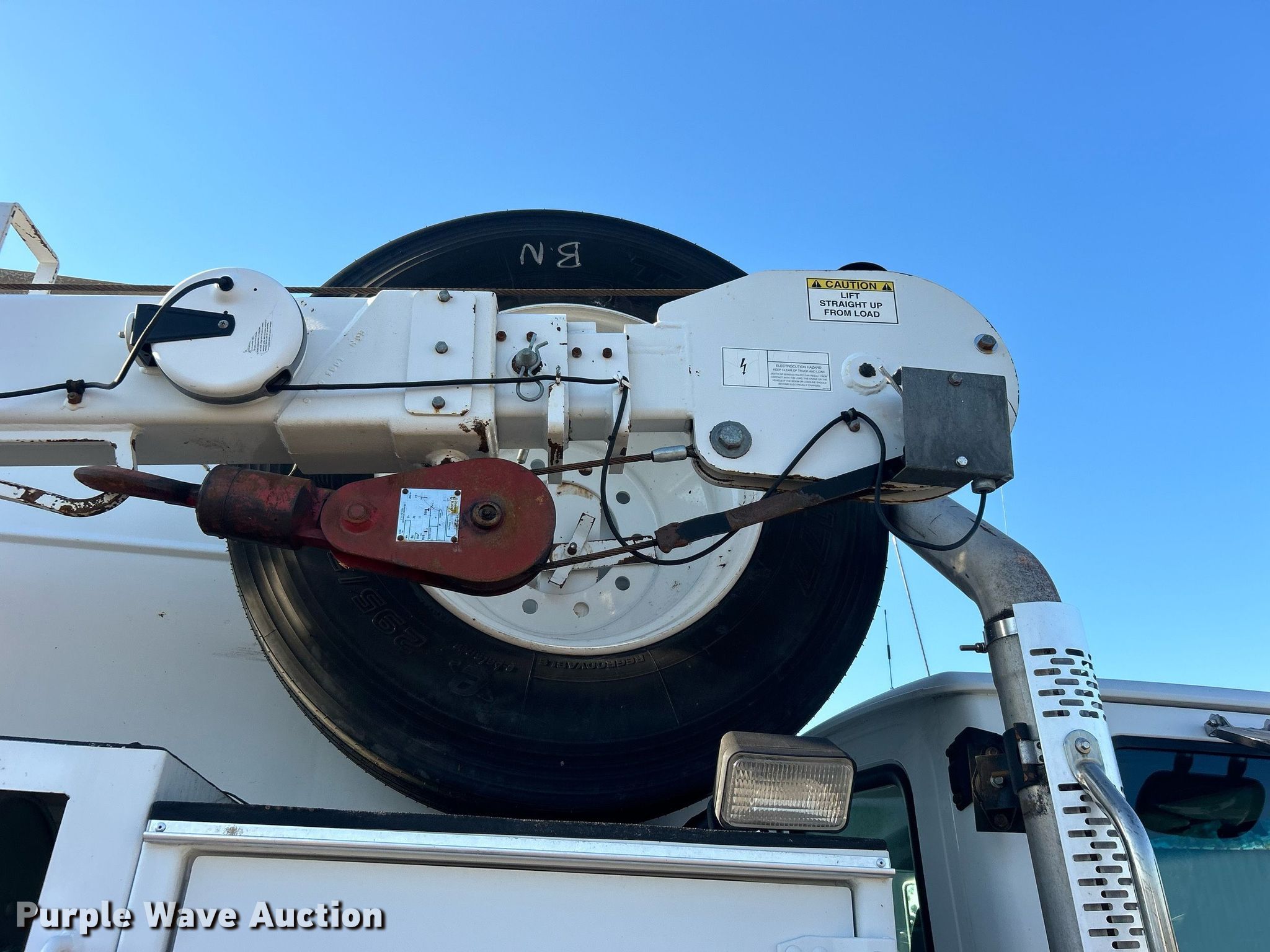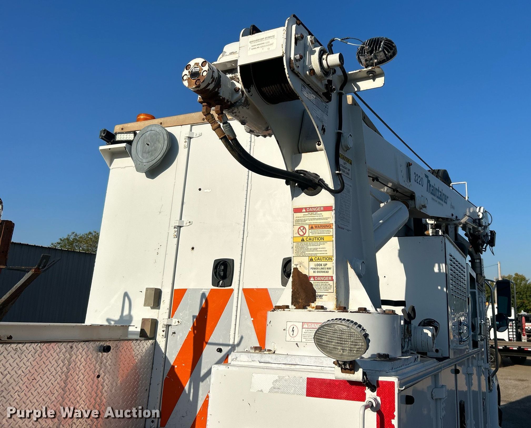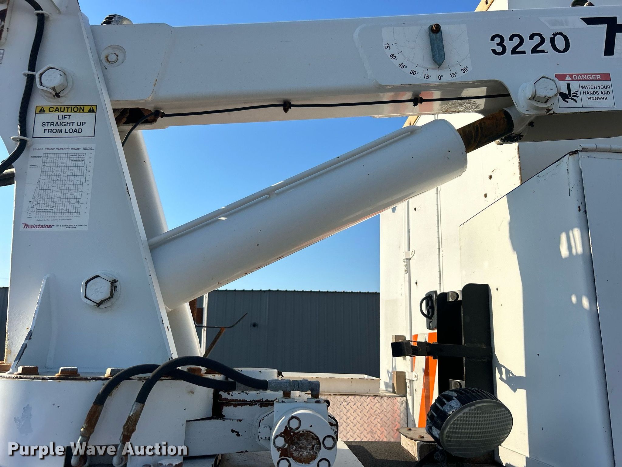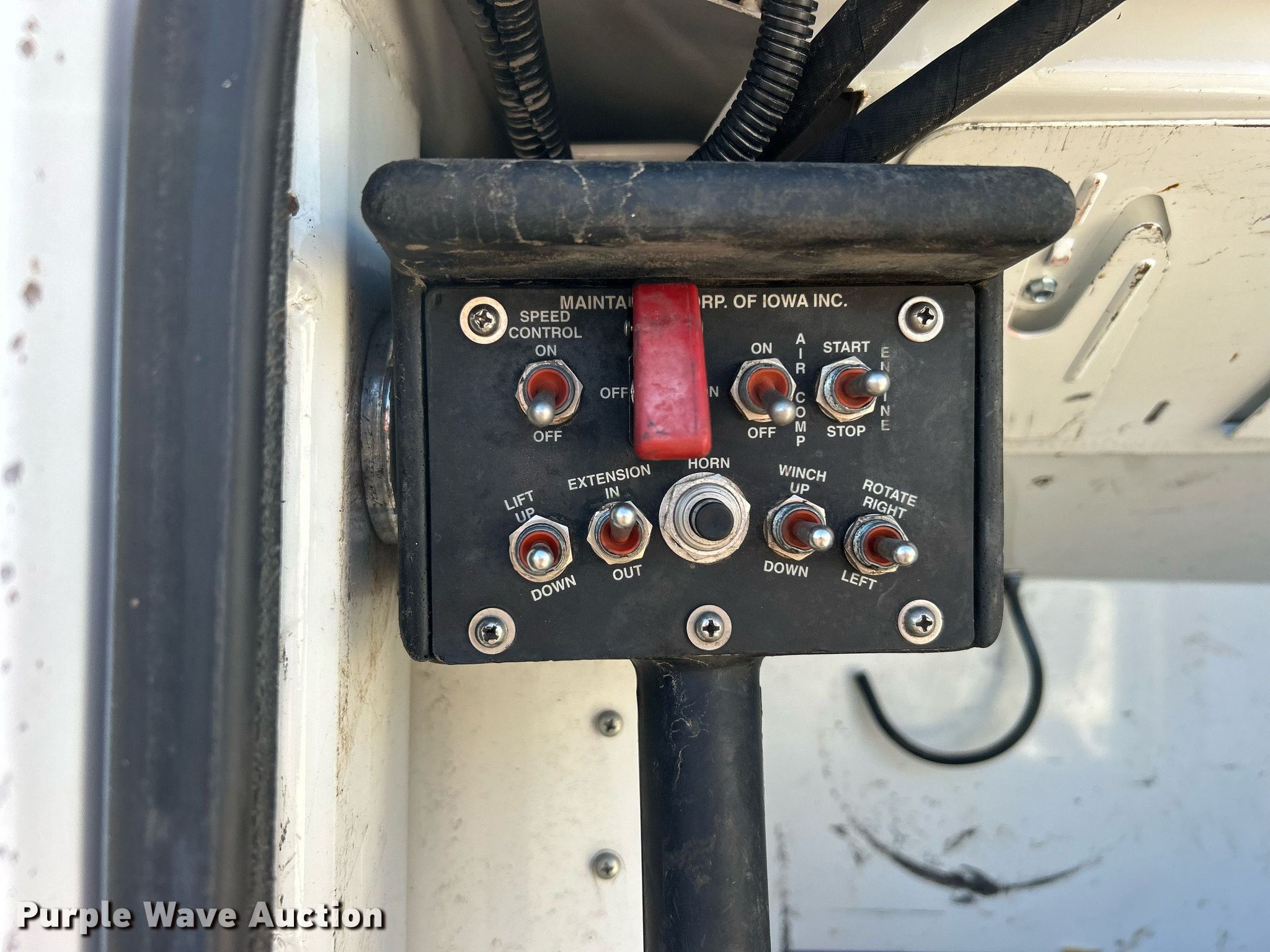 2006 Sterling Acterra utility / service truck. Miles: 267,261 on odometer, VIN: 2FZACGCS96AV88465. Engine Mercedes Benz, Displacement: 388 C.I.D., Cylinders: 6, Fuel type: Diesel, HP: 260, kW: 194. Transmission Manual, Speed: 6. Chassis Axles: Single, Suspension: Spring, Brakes: Air, PTO, GVWR: 29,000 lbs. Interior AC, Heat, Heated mirrors, Cruise control. Features Bed 11' 8" L x 96" W, Air compressor Quincy, Oil/lube system Hose reels, Crane Maintainer 3220, Maximum boom length: 20' Maximum lift capacity: 6,000 lbs.. Tires Size: 275/80R22.5. Notes Rust damage. Oklahoma title. 15107 North 137th East Avenue. Collinsville, OK 74021