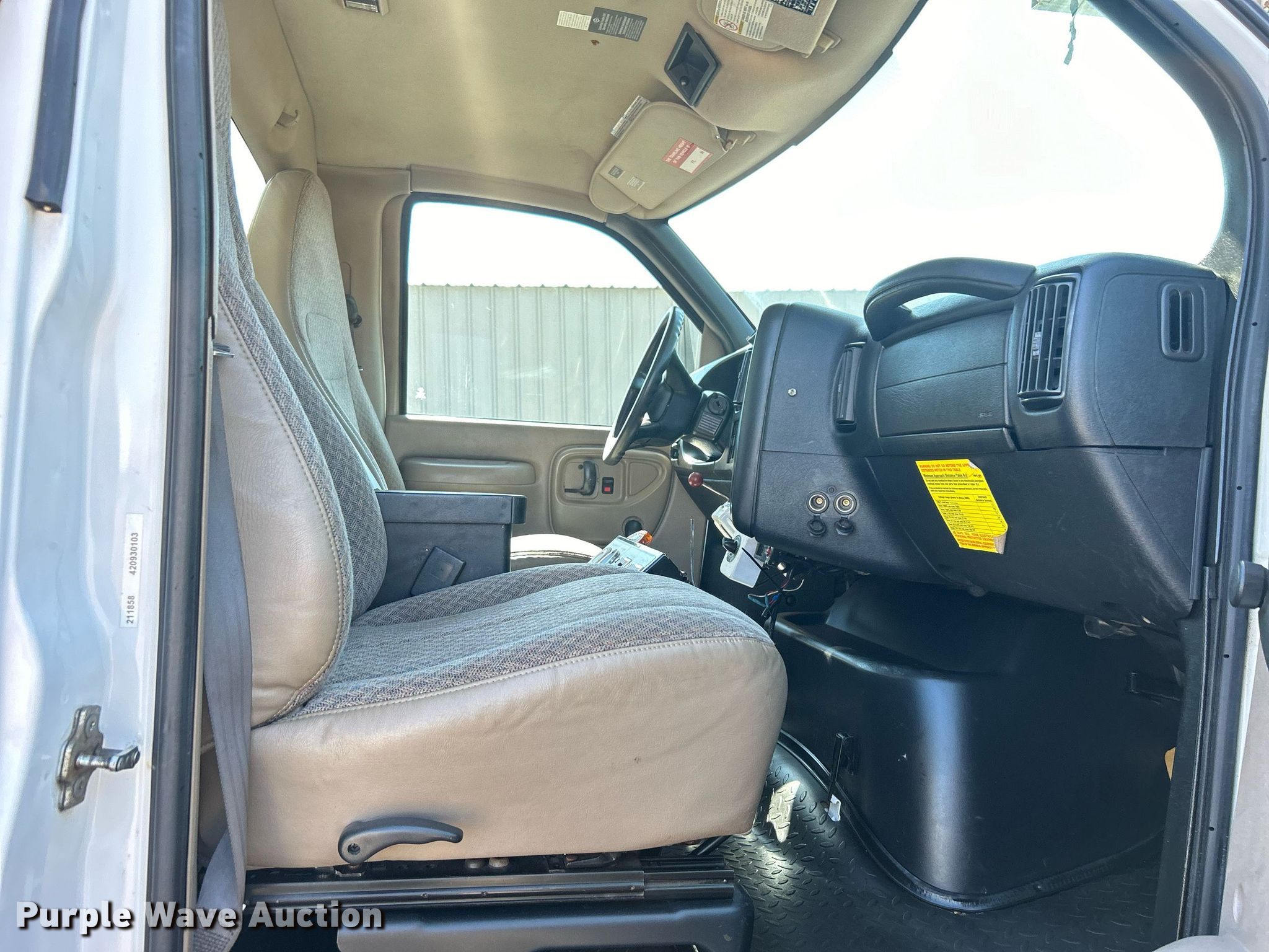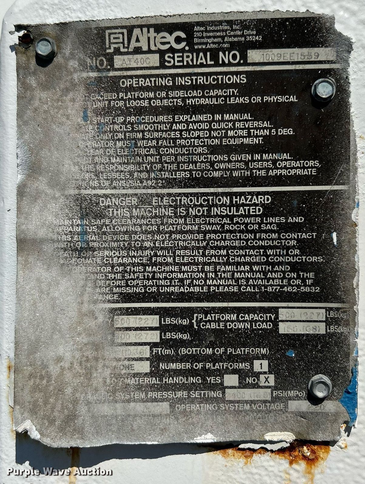 2009 GMC C8500 bucket truck. Miles: 136,263 on odometer, VIN: 1GDM8C1B59F412089. Engine Isuzu 6HK1-TC, Displacement: 7.8L, Cylinders: 6, Fuel type: Diesel. Transmission Automatic. Chassis Axles: Single, Suspension: Spring, Brakes: Air, PTO. Interior AC, Heat, Cruise control. Features Bed 12' 4" L x 96" W, Boom Altec AT40C, Boom length: 20', Maximum lift capacity: 500 lbs, Maximum lift height: 40', Boom type: Telescopic, Man basket, Boom controls Platform/ basket, Reel carrier. Tires Size: 11R22.5. Notes Dash warning indicator: Low air, Bed damage, hole. Oklahoma title. 15107 North 137th East Avenue. Collinsville, OK 74021