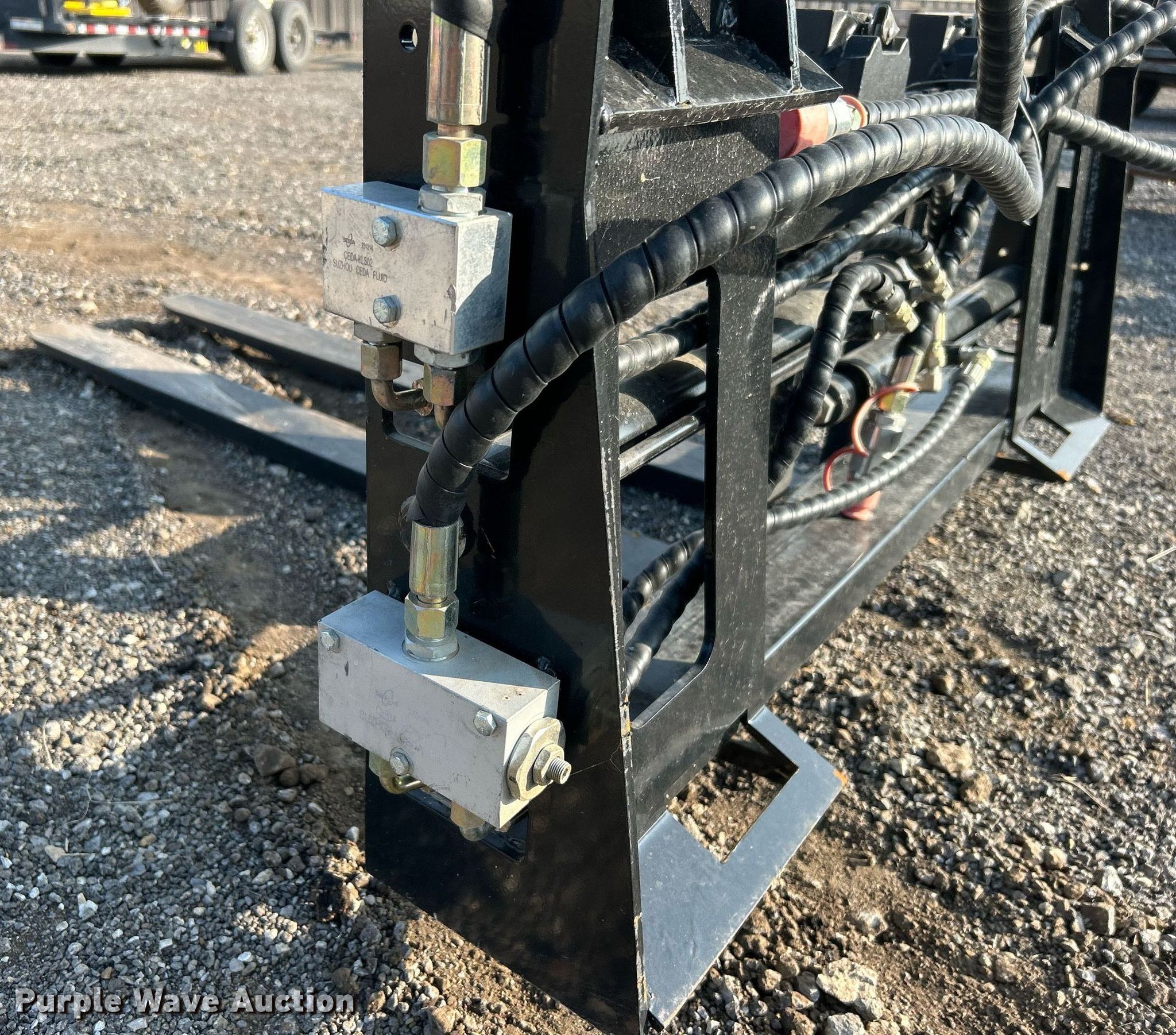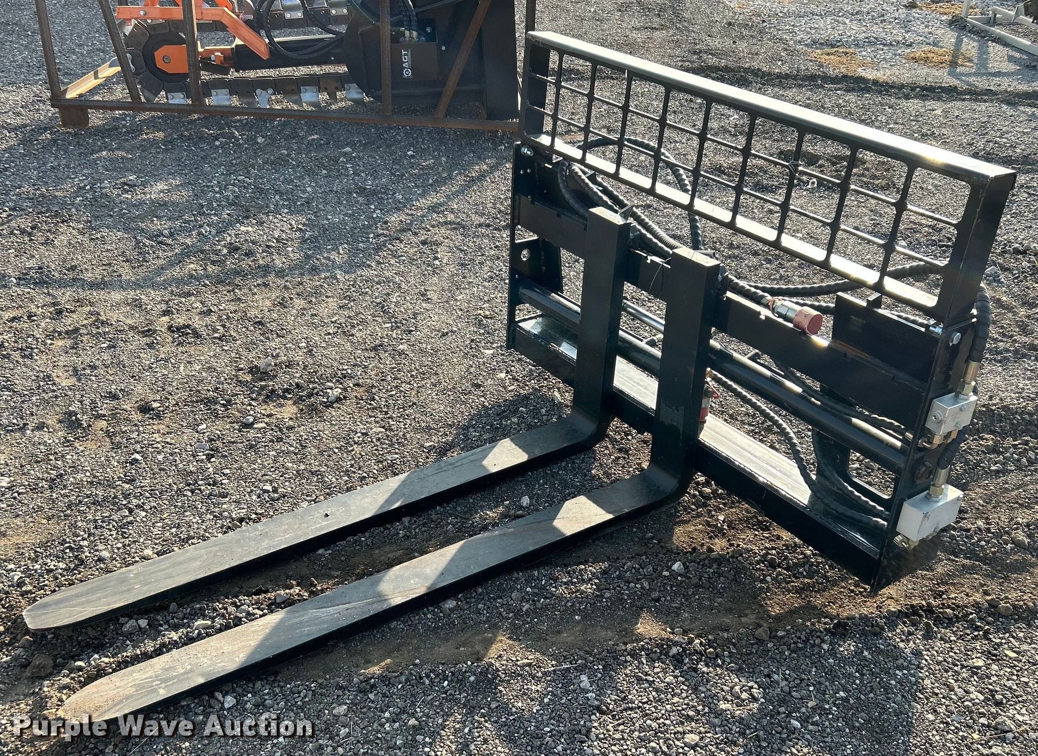 Purple Wave is selling a used Skid Steer Attach. in Oklahoma. This item is a AGT 48" L skid steer forks with the following: Hydraulic operated