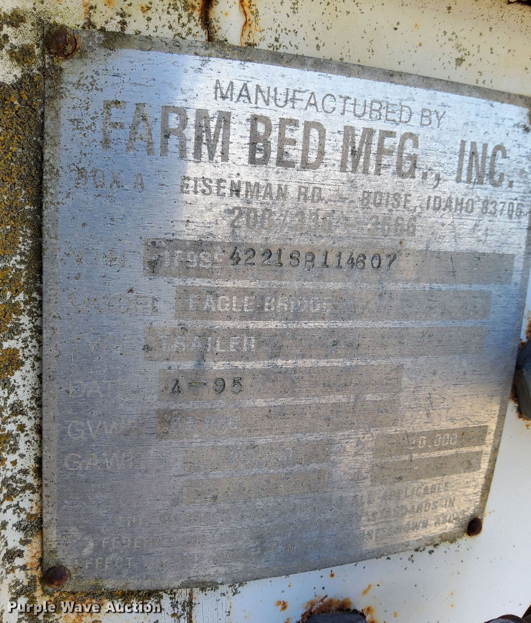 Purple Wave is selling a used Grain or Commodity Trailer in Iowa. This item is a 1995 Farm Bed Mfg Eagle Bridge live bottom trailer with the following: Overall: 43' 9" L x 104" W