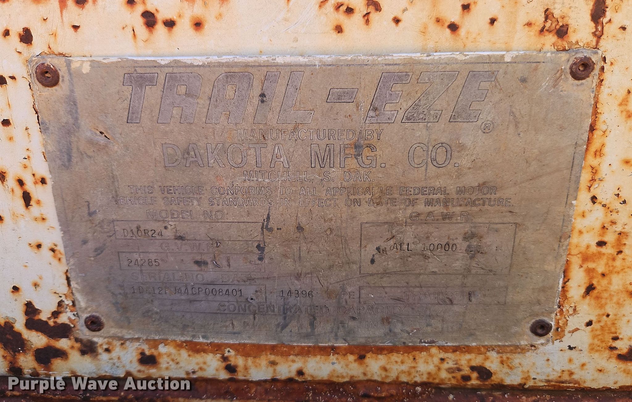 Purple Wave is selling a used Equip. Trailer in Kansas. This item is a 1986 Trail-Eze T220 equipment trailer with the following: VIN: 1DA12RJ44GP008401