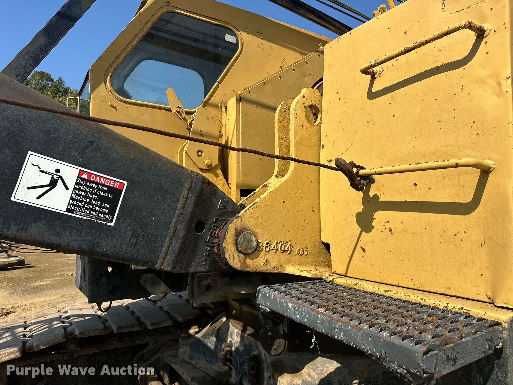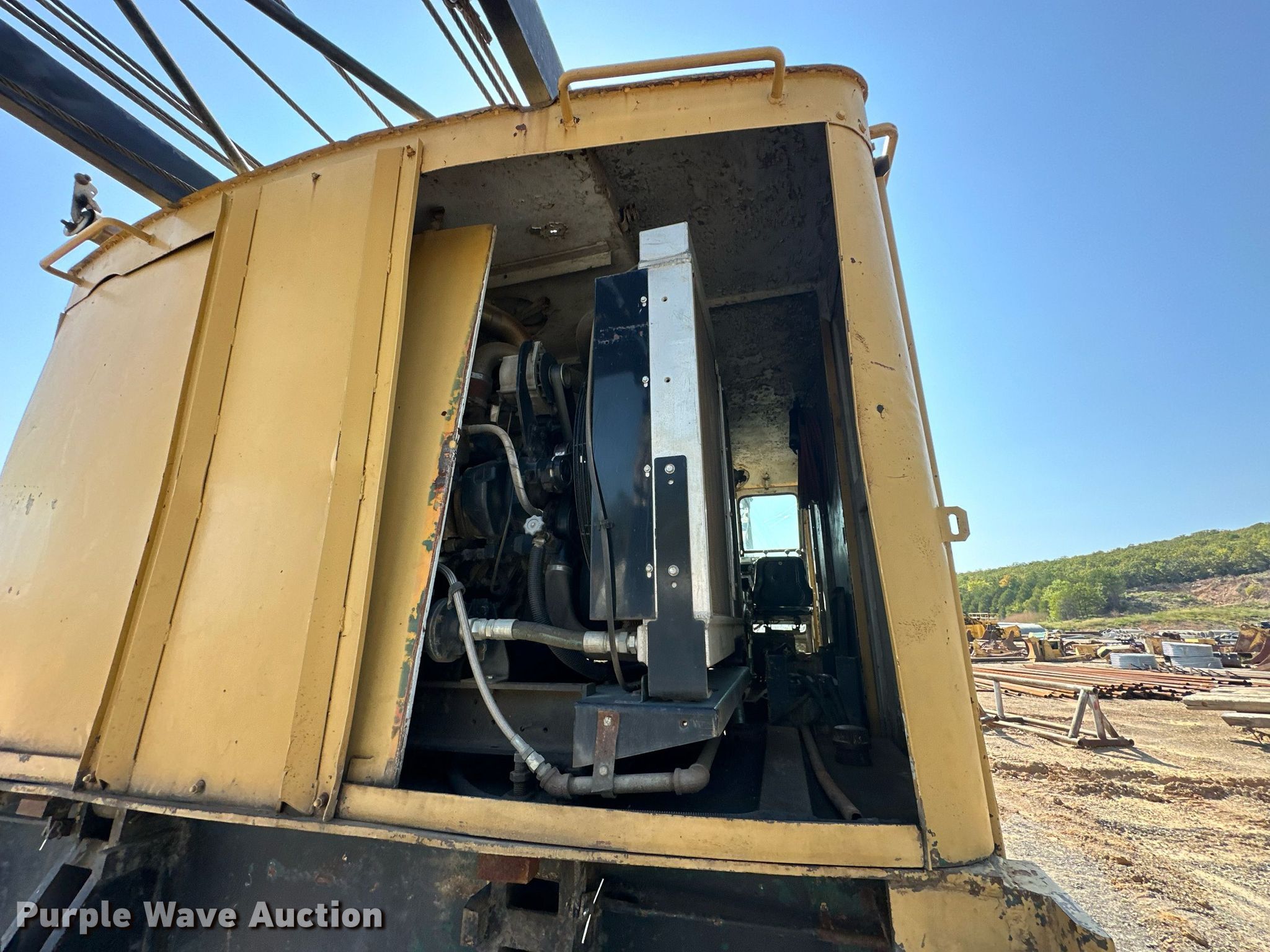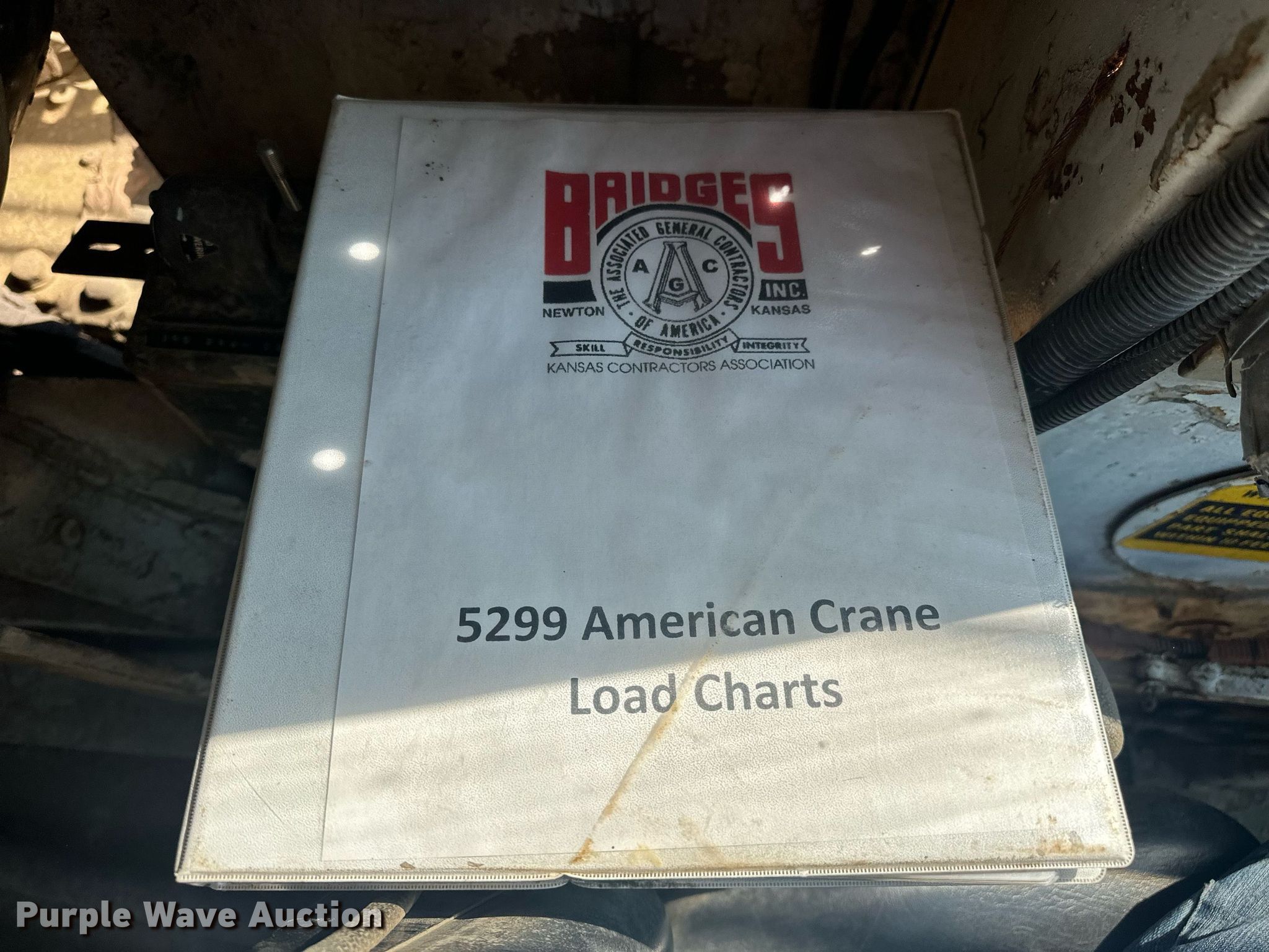 1968 American 5299-C crane. Hours: 4,809 on meter, Serial: GS12586. Engine Cylinders: 6, Fuel type: Diesel. Transmission Direct-drive Torque converter. Chassis Propulsion: Mechanical, Controls: Air actuated. Operators station Enclosed cab, Heat, Crane controls: Stick. Features Lattice, Maximum boom length: 100' Sections: 4, Maximum lift capacity: 100,000 lbs, Maximum lift height: 100', Boom controls In-cab, Removable counter weight, Manuals, Lift chart. Tracks Width: 36", Extendable tracks. Notes Glass cracked. Robinson Construction, LLC. Poteau, OK 74953