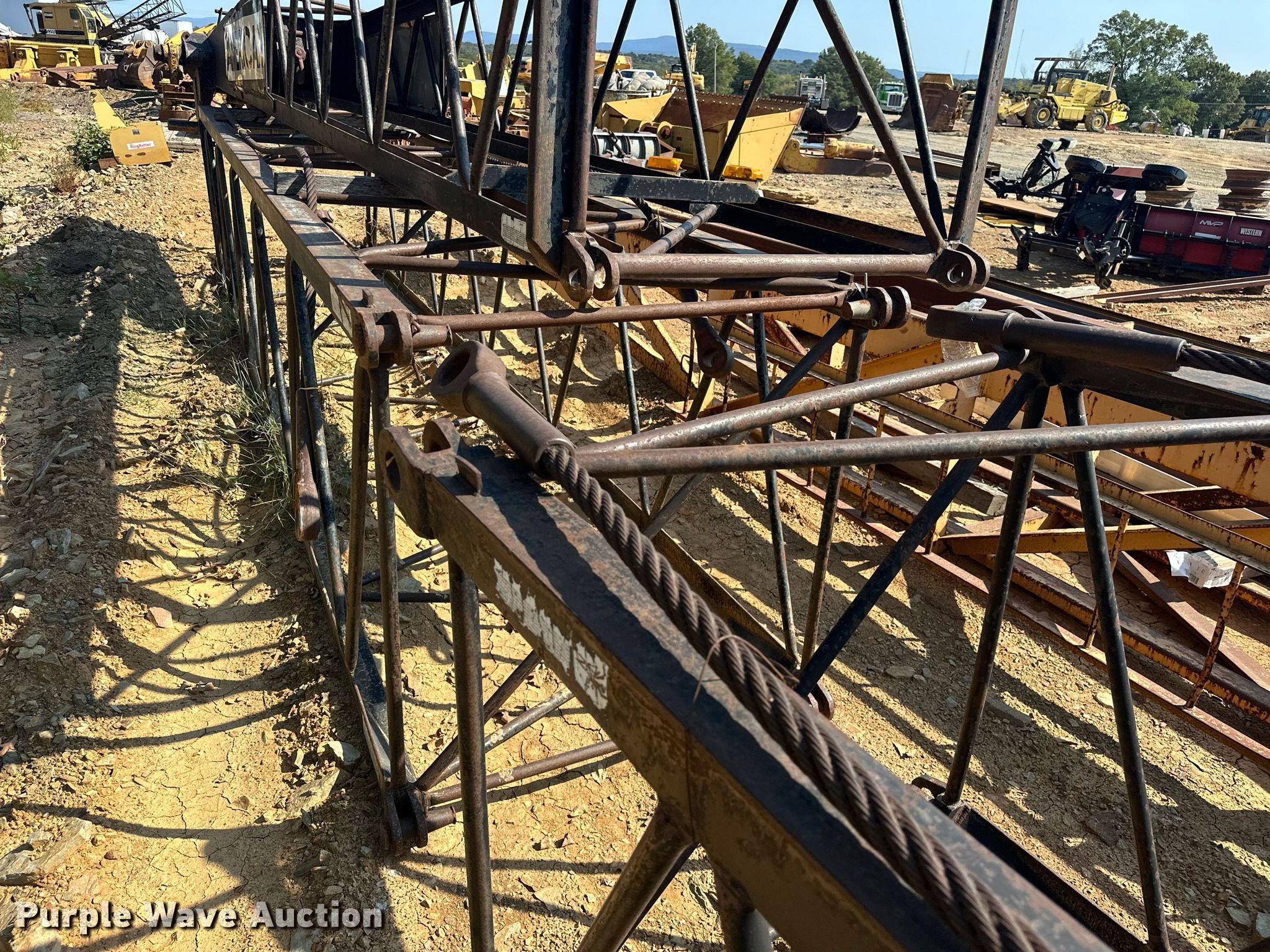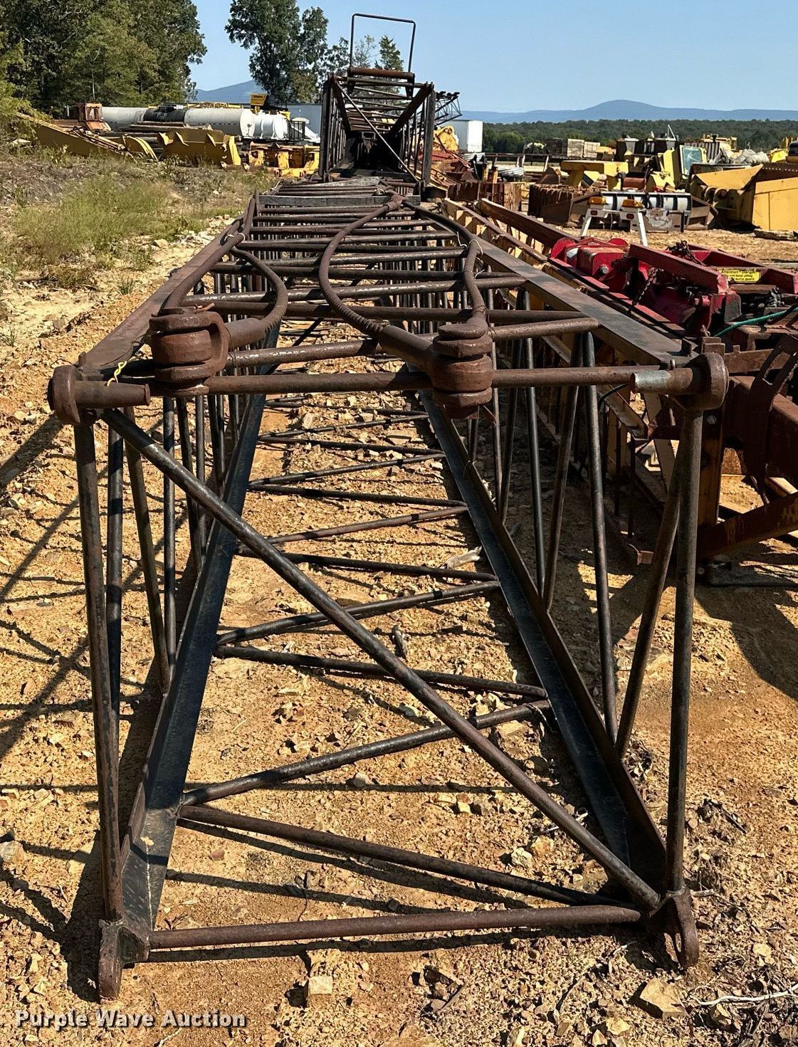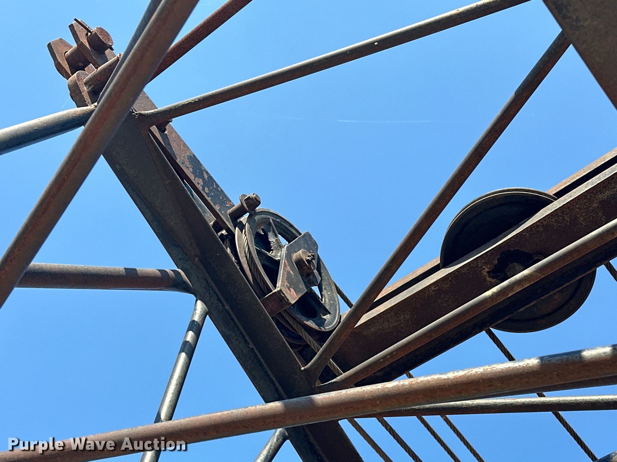 1968 American 5299-C crane. Hours: 4,809 on meter, Serial: GS12586. Engine Cylinders: 6, Fuel type: Diesel. Transmission Direct-drive Torque converter. Chassis Propulsion: Mechanical, Controls: Air actuated. Operators station Enclosed cab, Heat, Crane controls: Stick. Features Lattice, Maximum boom length: 100' Sections: 4, Maximum lift capacity: 100,000 lbs, Maximum lift height: 100', Boom controls In-cab, Removable counter weight, Manuals, Lift chart. Tracks Width: 36", Extendable tracks. Notes Glass cracked. Robinson Construction, LLC. Poteau, OK 74953