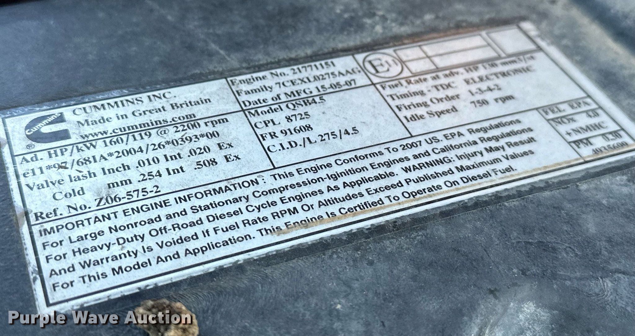 2007 Case SV212 single drum vibratory roller. Hours: 3,379 on meter, Serial: DDD001130. Engine Cummins QSB4.5, Serial: 21771151, Displacement: 4.5L, Cylinders: 4, Fuel type: Diesel. Transmission Hydrostatic. Operators station OROPS. Features Drum: Smooth, Vibratory system: Single, Two speed, Front drum Width: 87", Diameter: 60", Drum scrapers: Front, Rear. Tires Size: 23.1-26. Notes Dead battery, Electrical issues, Hood issues, will not close, Non-operational unit. Robinson Construction, LLC. Wilburton, OK 74578
