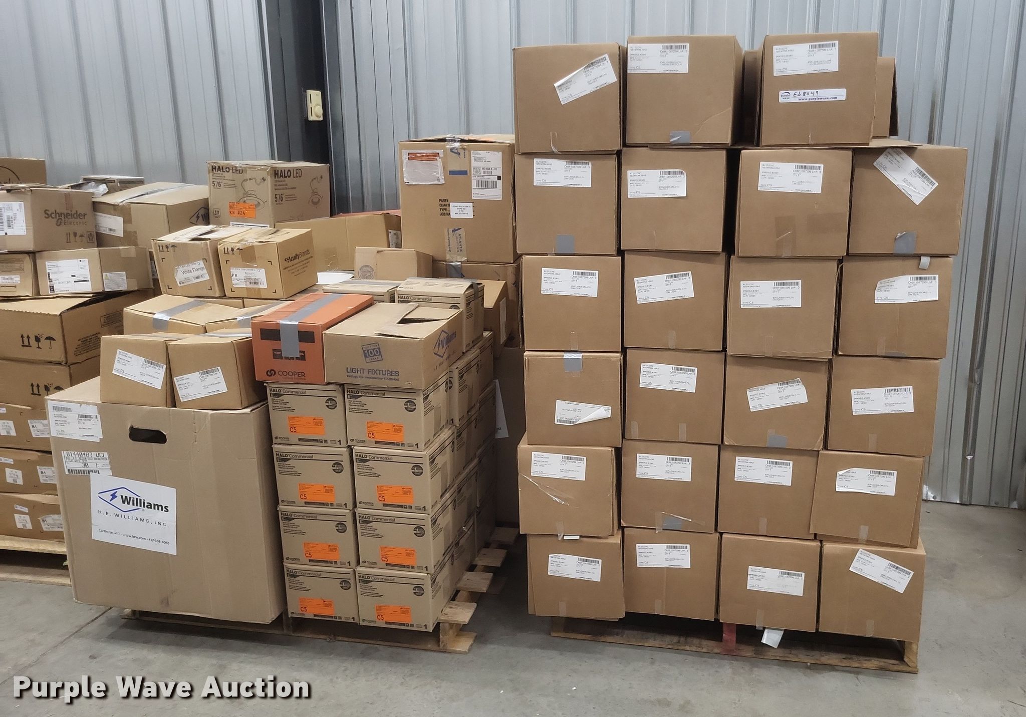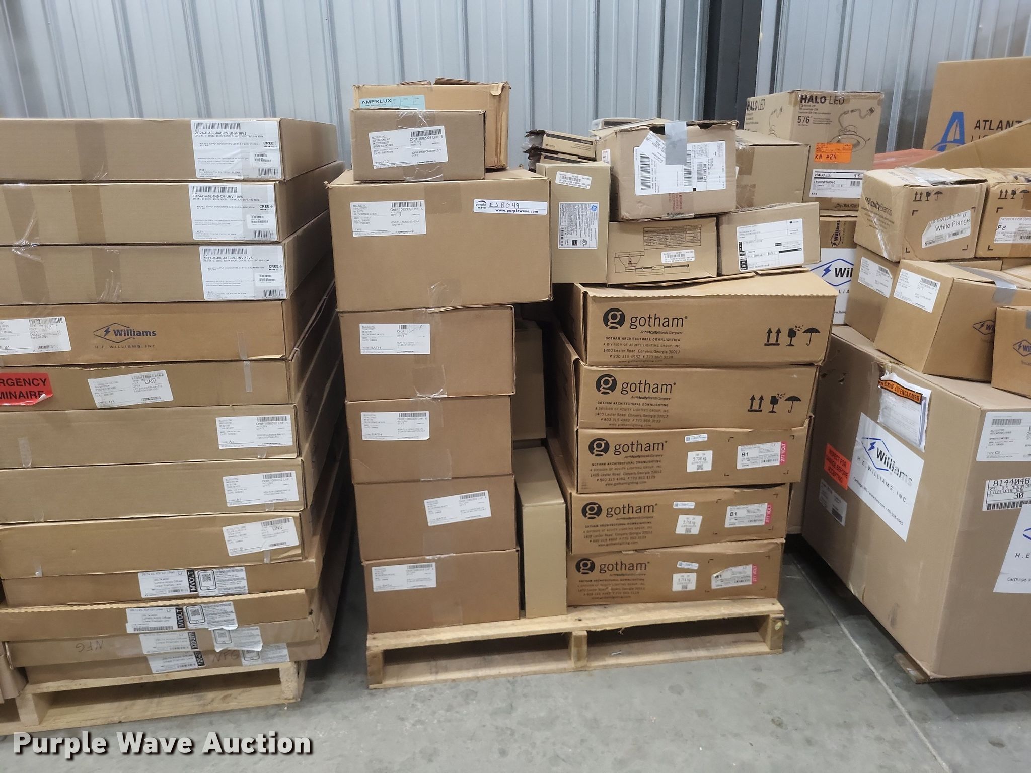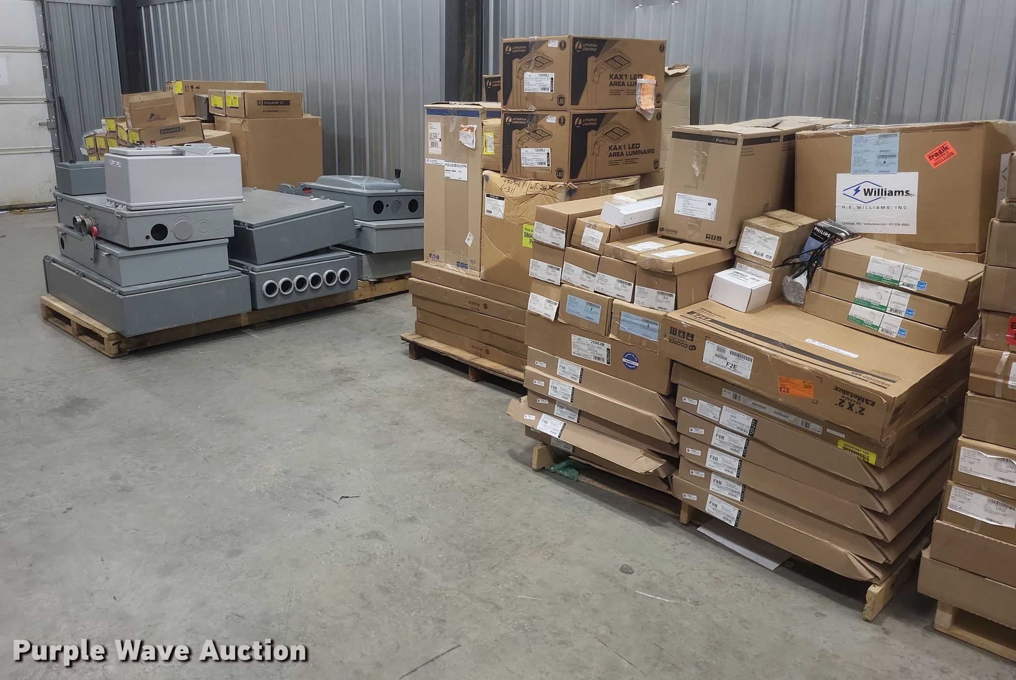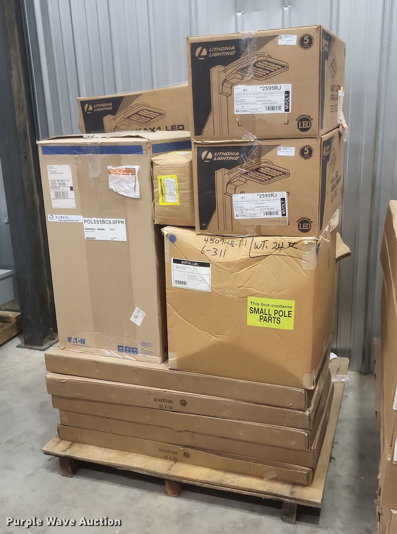 Purple Wave is selling a used Building Materials in Missouri. This item is a Light fixtures with the following: Can lights, Can trim, Can bulbs, Pole arms and more