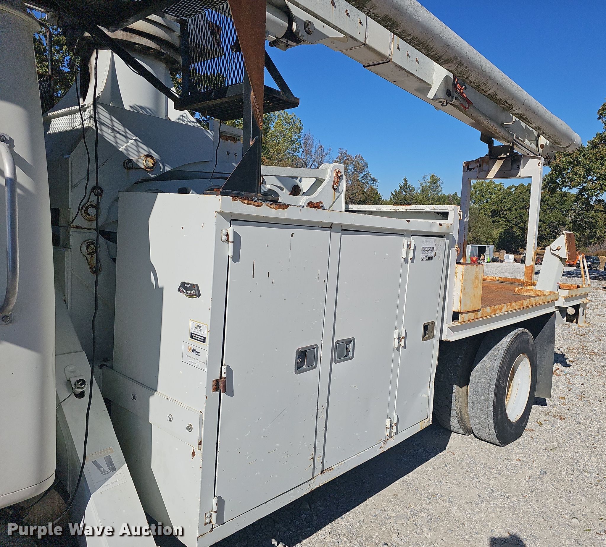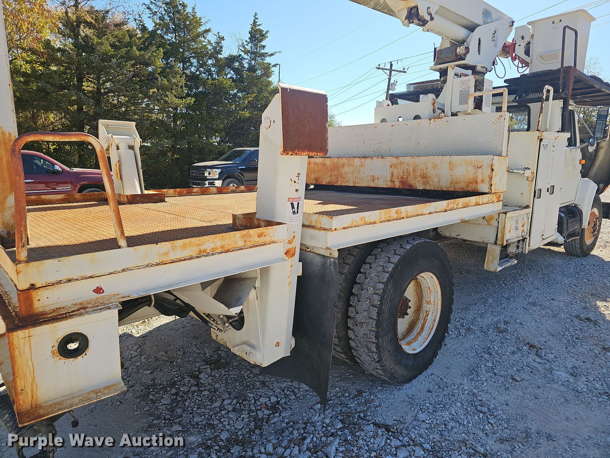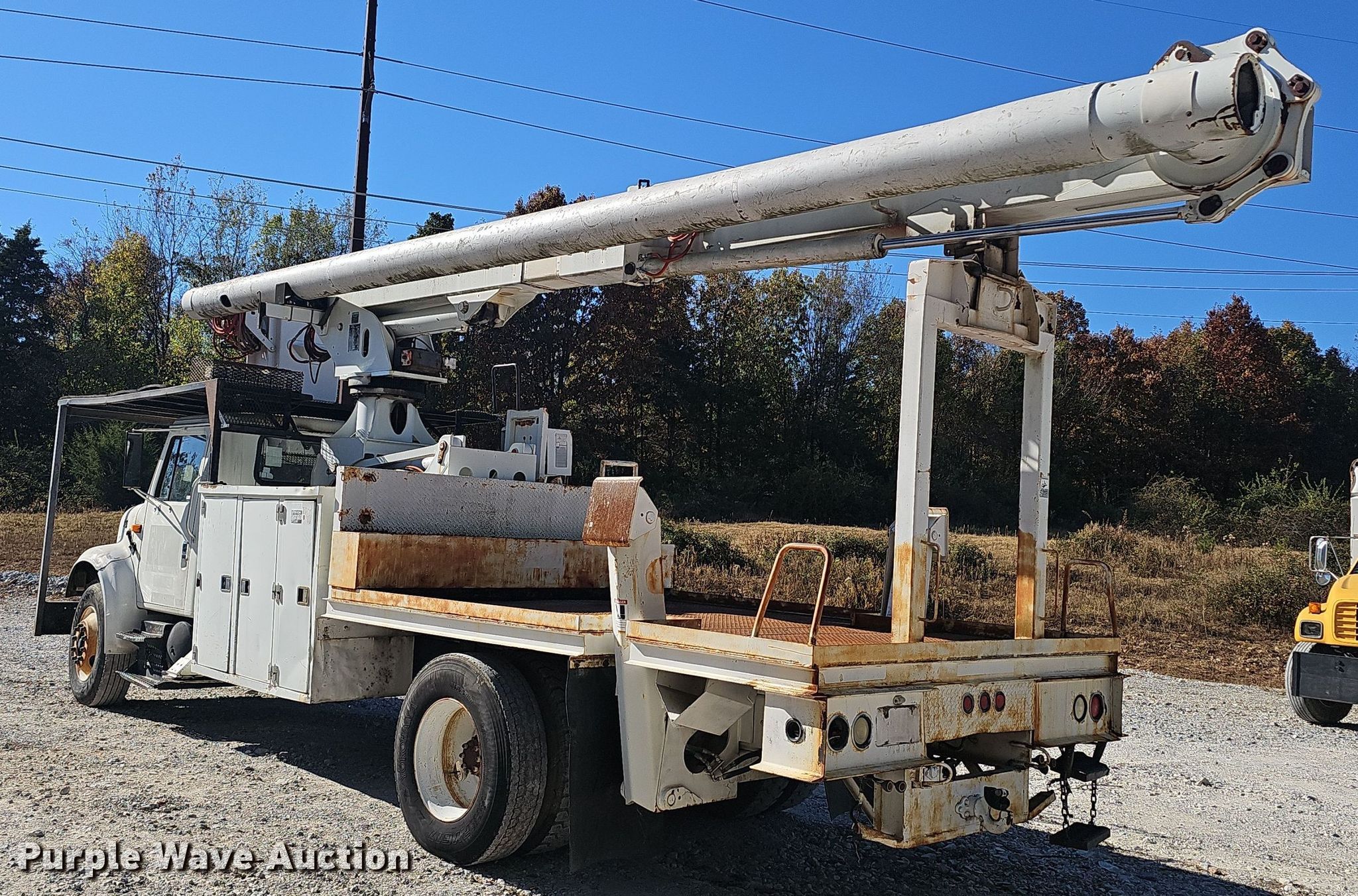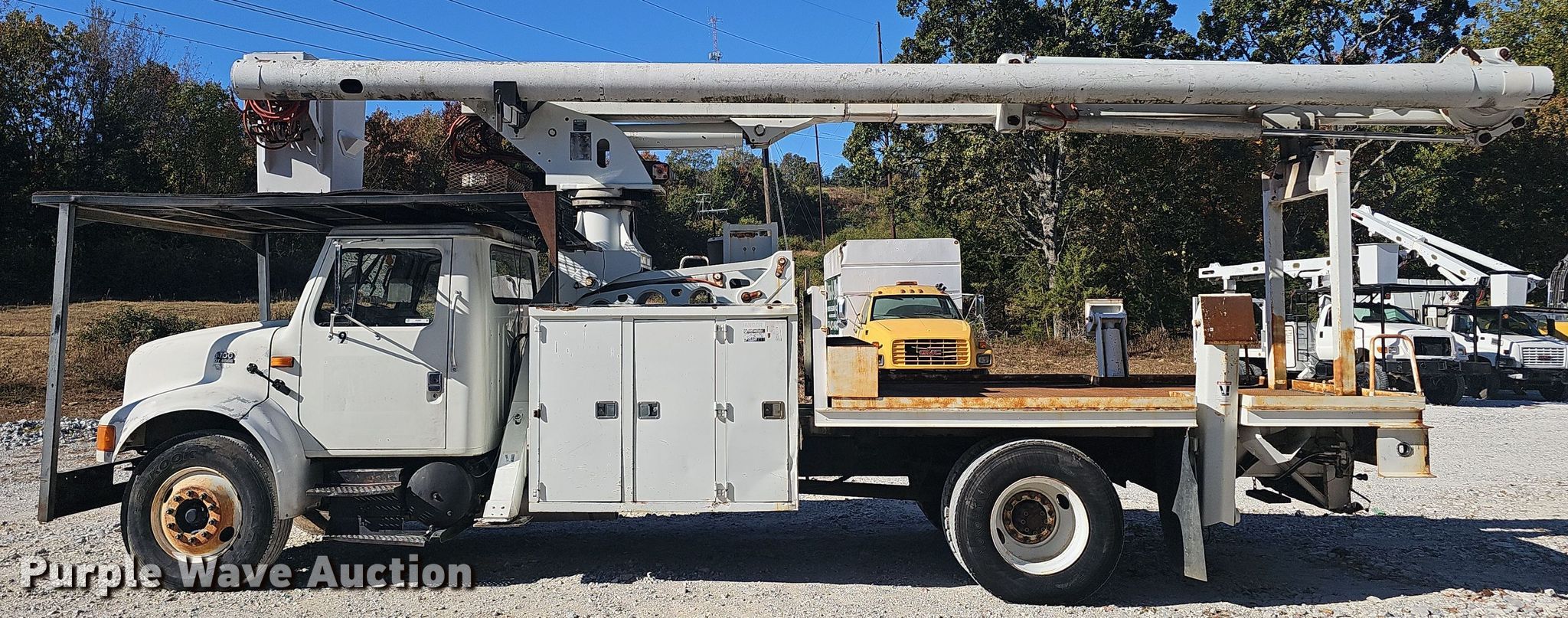 Purple Wave is selling a used Bucket Truck in Arkansas. This item is a 2002 International 4700 bucket truck with the following: Miles: 90,524 on odometer, VIN: 1HTSCAAN02H409056