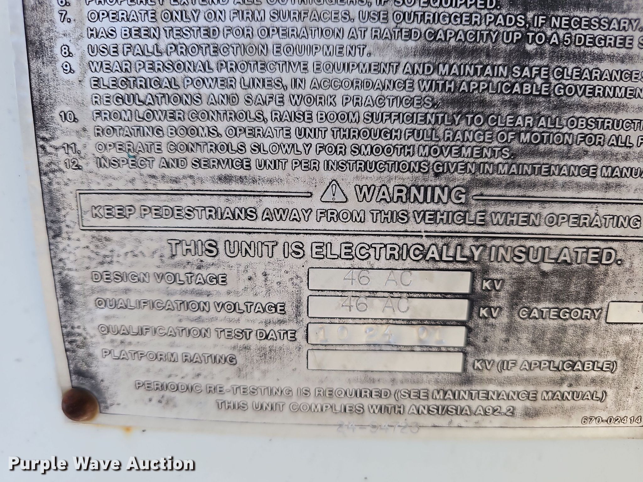 - Maximum lift height: 70'