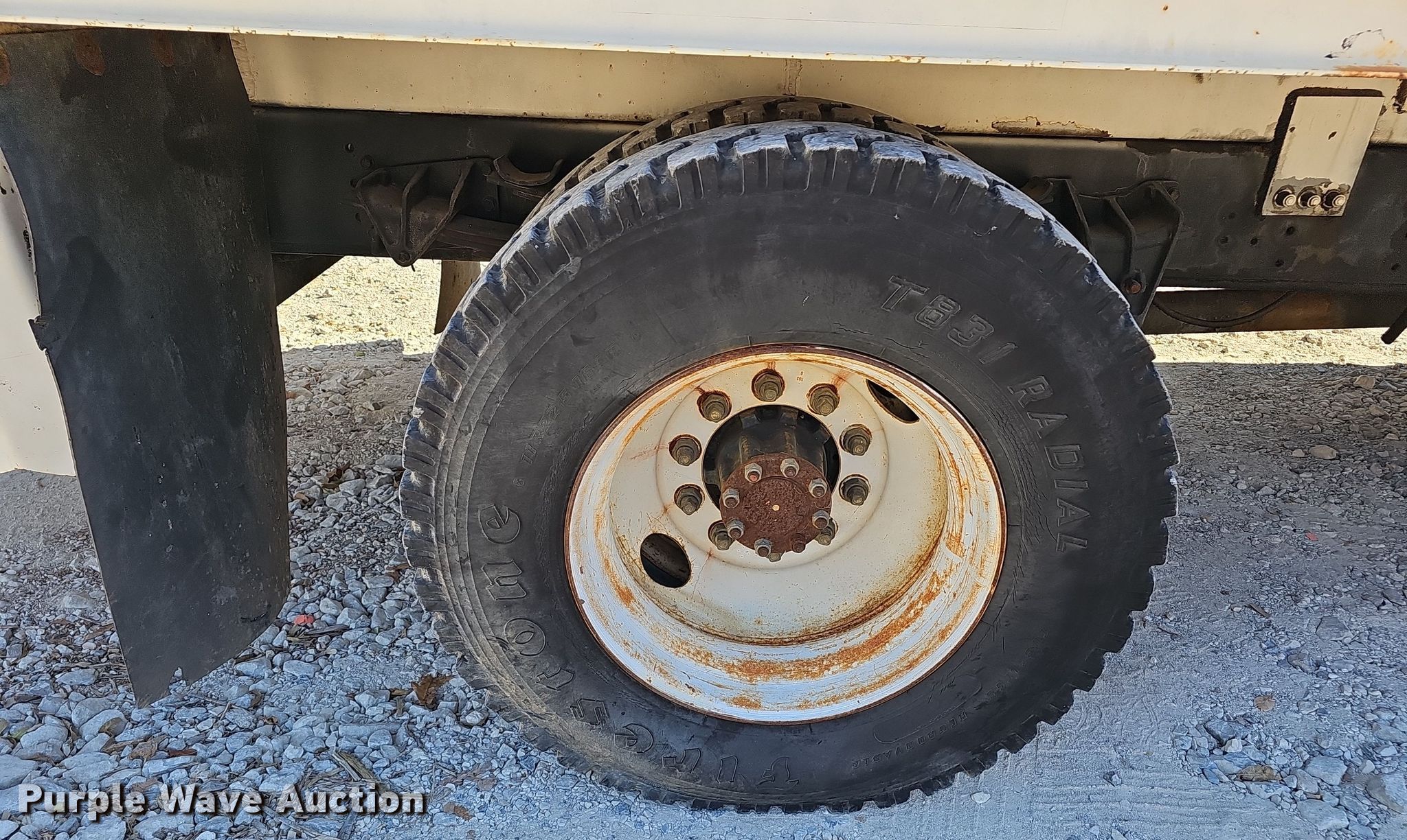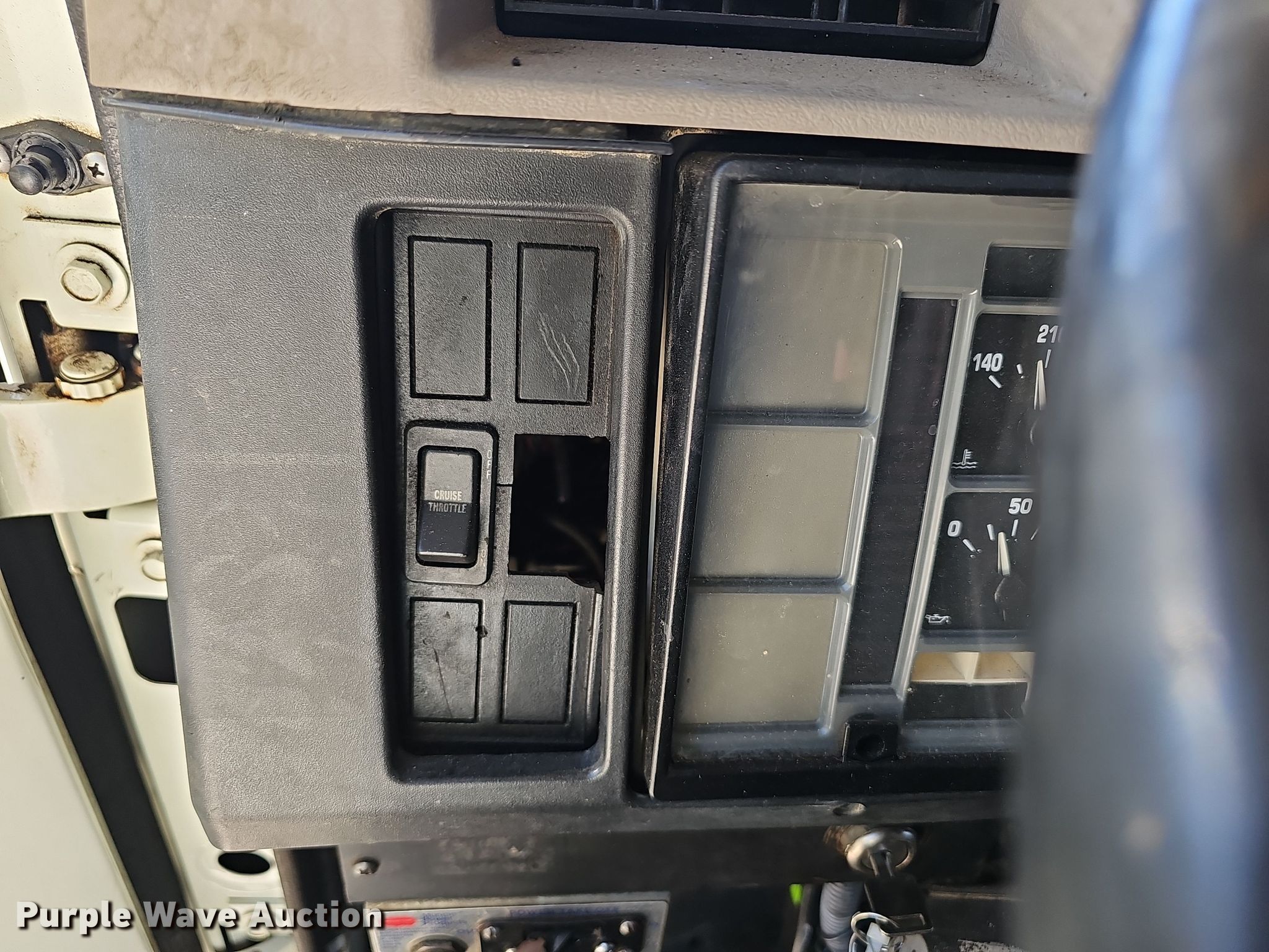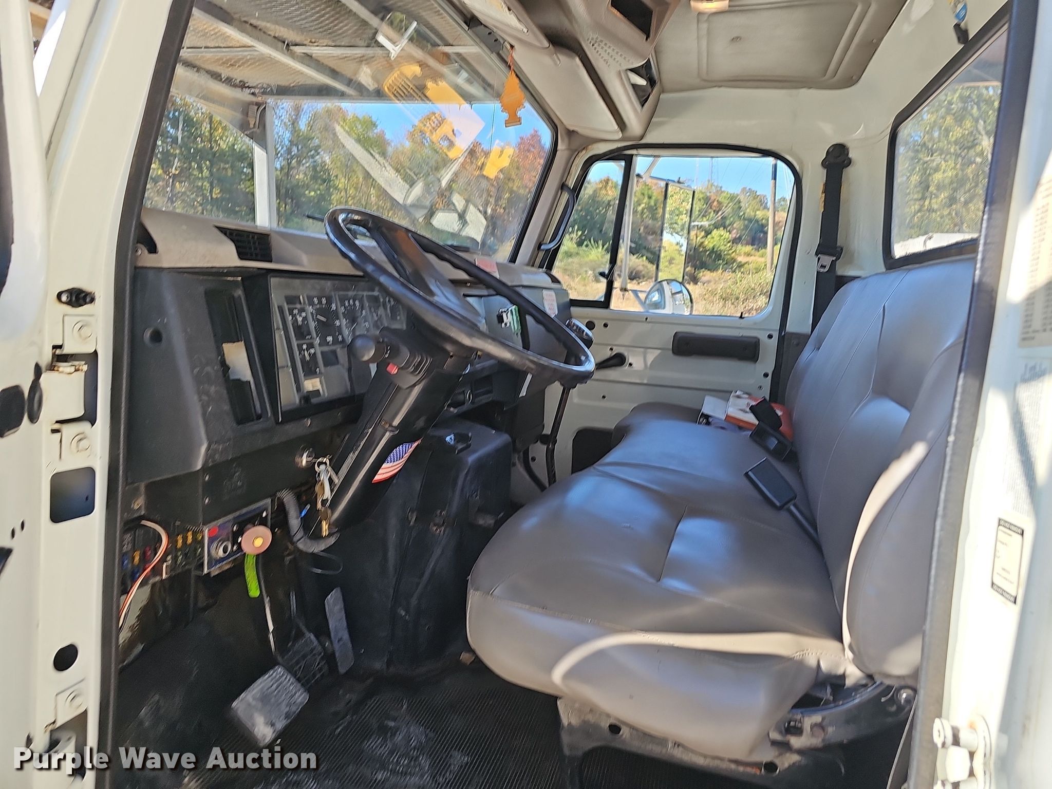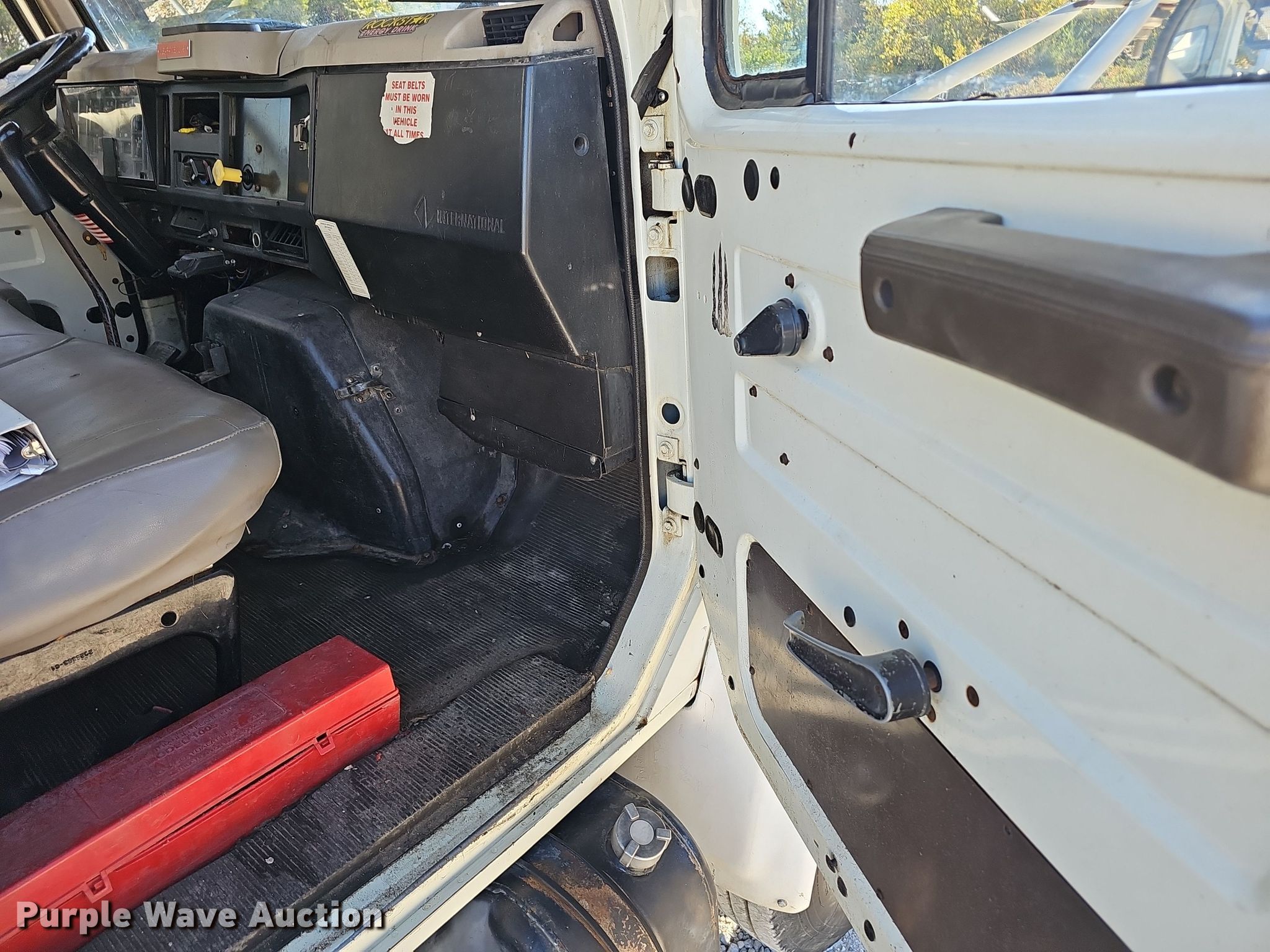 This 2002 International 4700 bucket truck will sell to the highest bidder regardless of price.