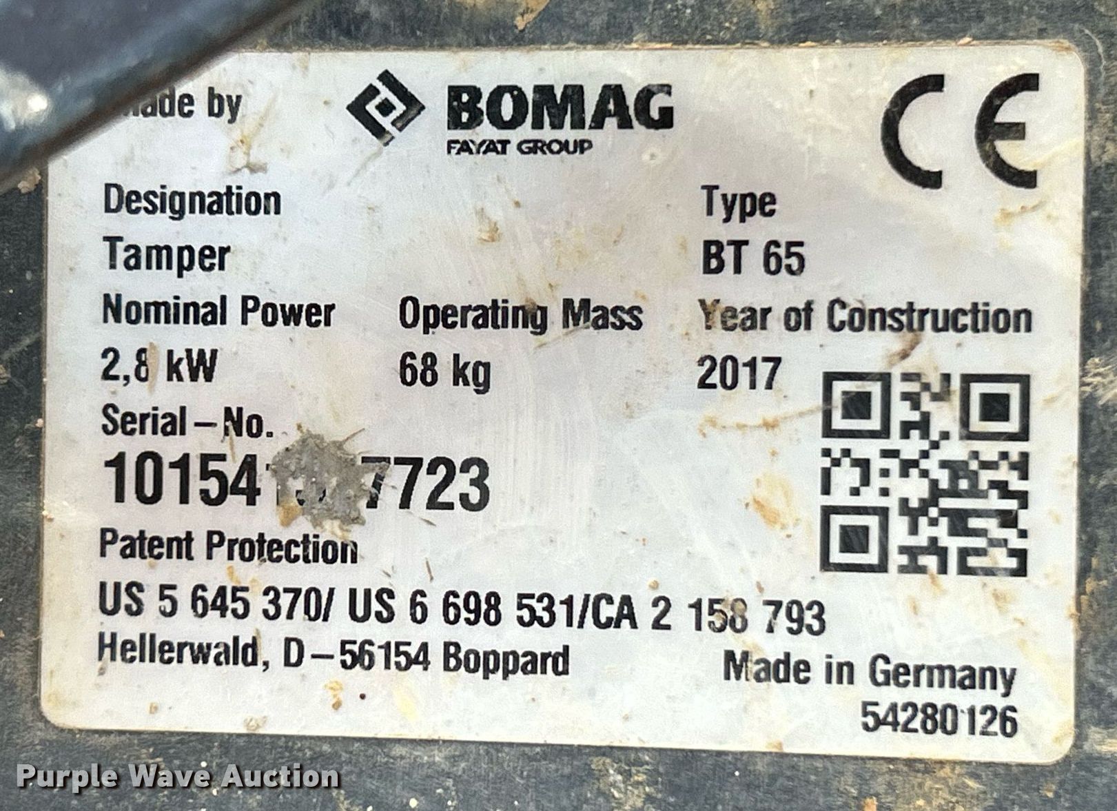 Purple Wave is selling a used Walk Behind Compactor in Missouri. This item is a 2017 Bomag BT 65 plate compactor with the following: Hours: Unknown
