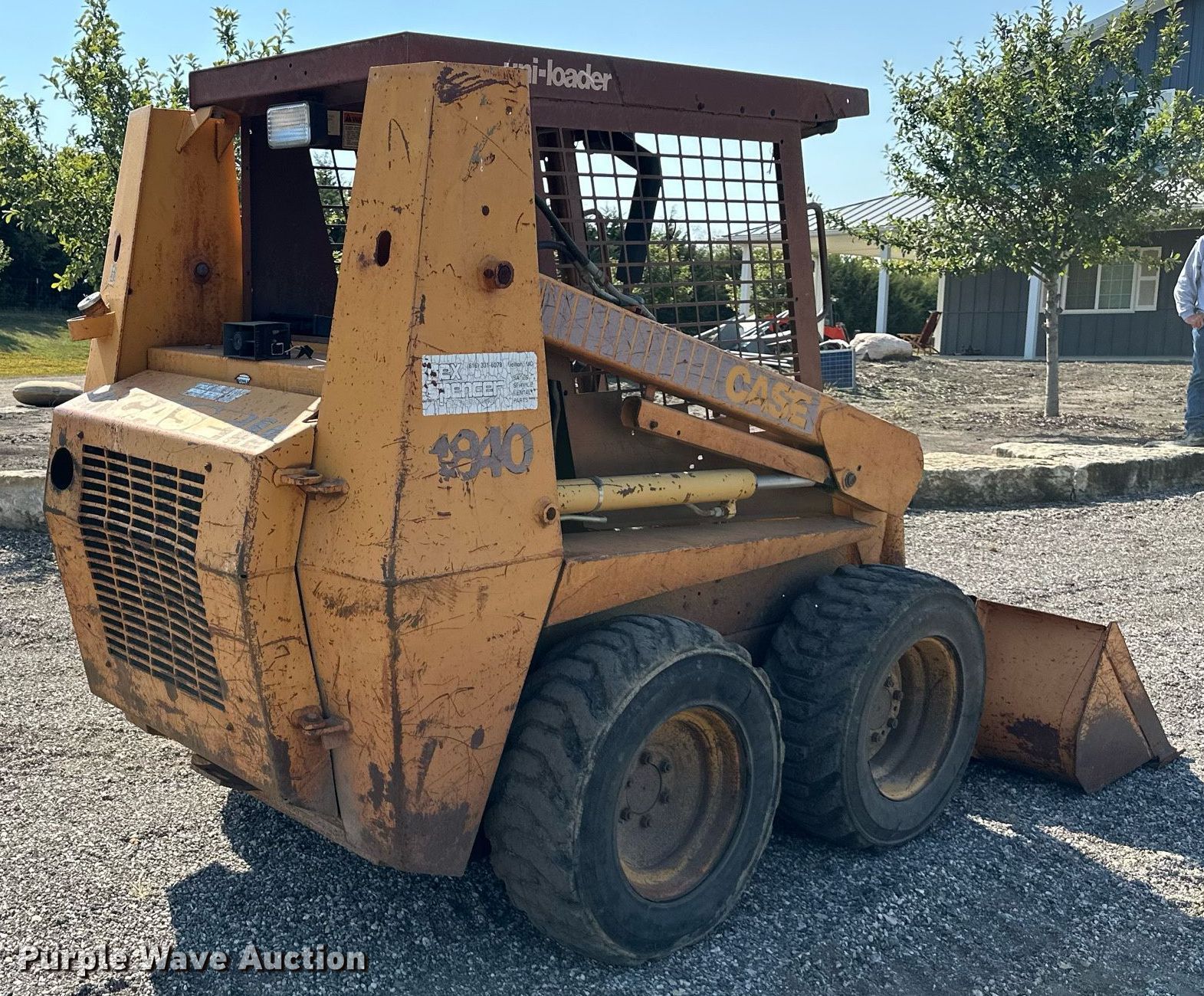 Purple Wave is selling a used Skid Steer Loader in Kansas. This item is a 1994 Case 1840 skid steer loader with the following: Hours: 3,700 on meter, Serial: JAF0134038