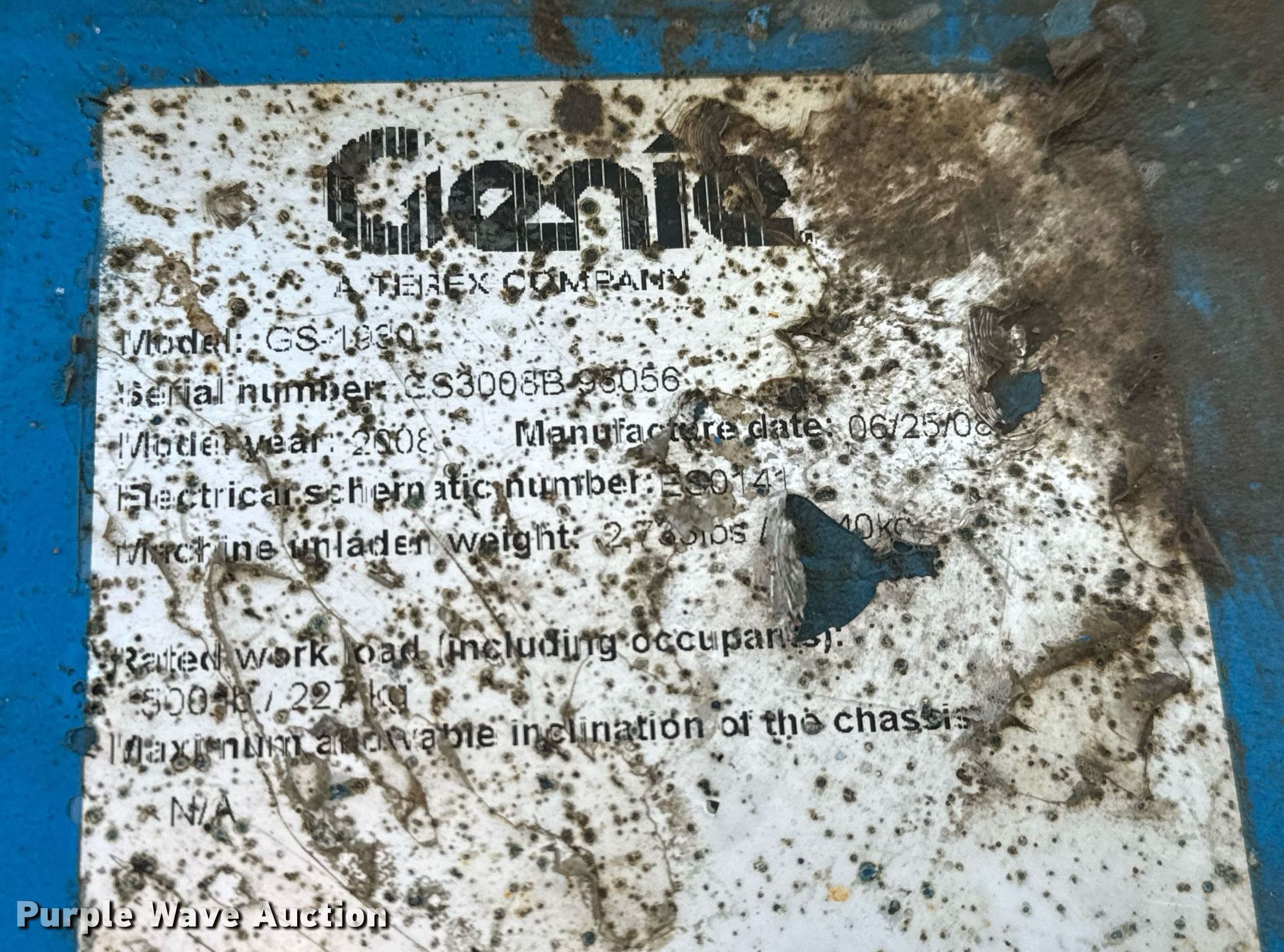 Purple Wave is selling a used Scissor or Vertical Lift in Kansas. This item is a 2008 Genie GS-1930 scissor lift with the following: Hours: 173 on meter, Serial: GS3008B-98056