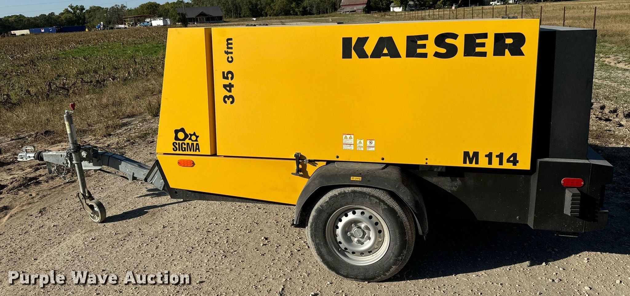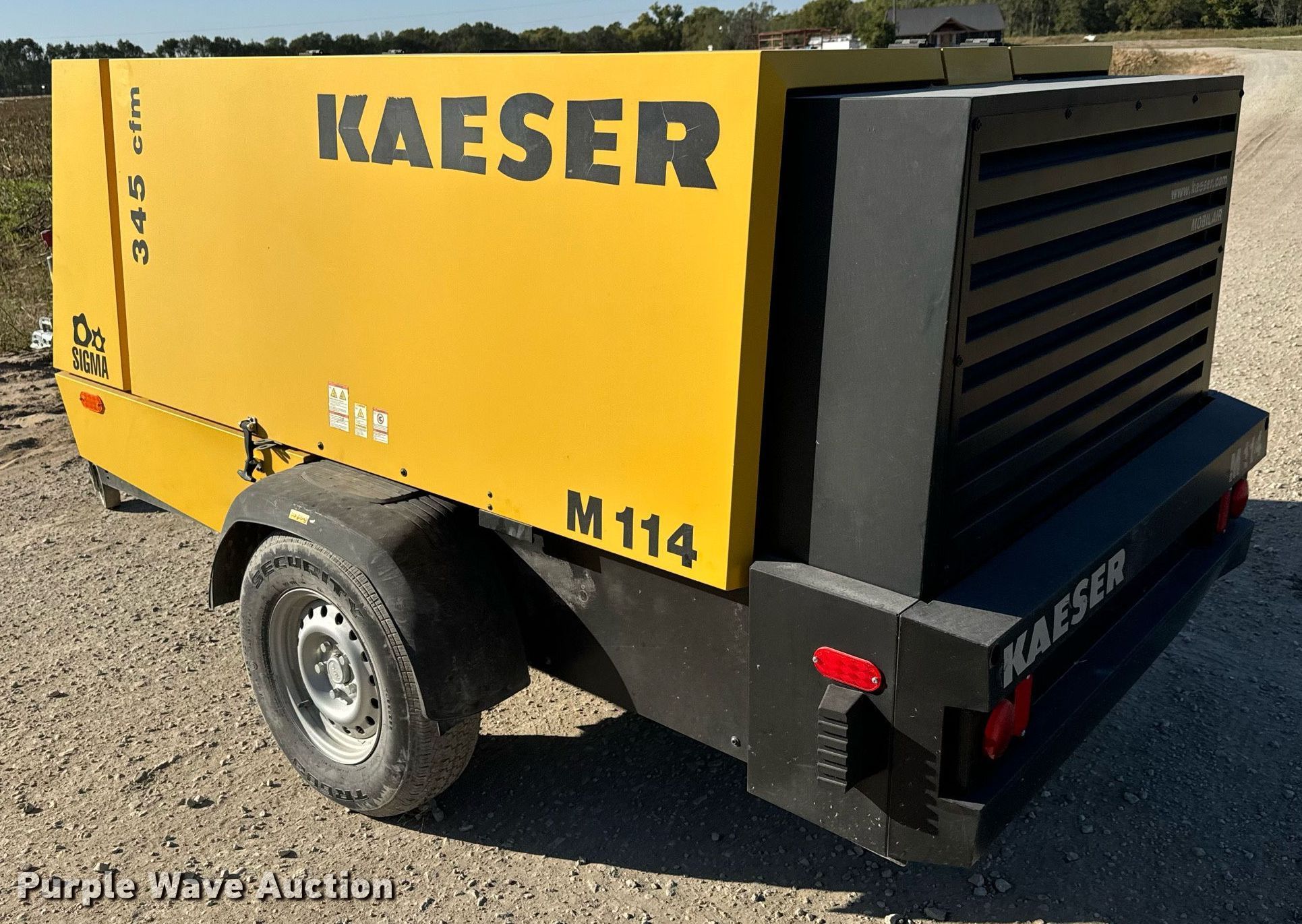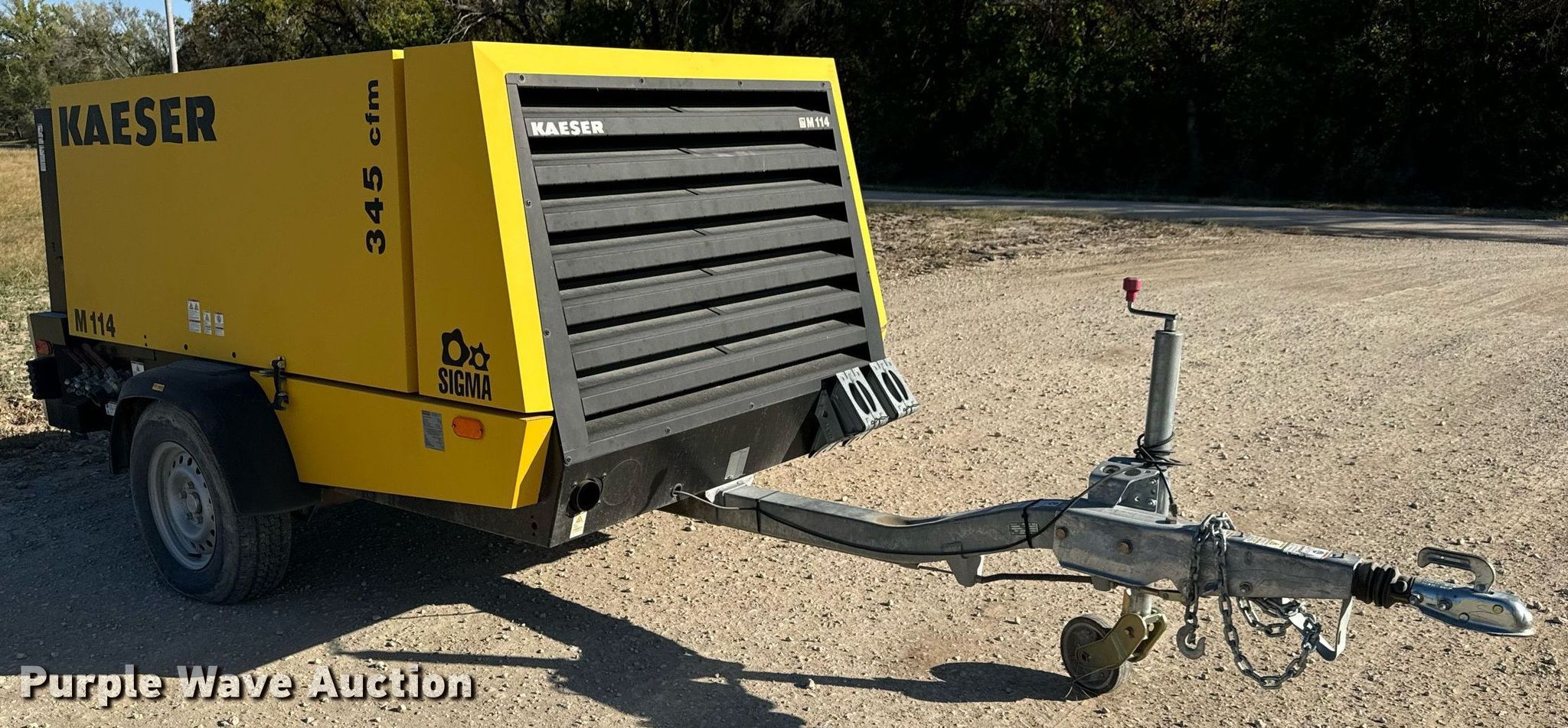 2015 Kaeser M114 air compressor. Hours: 421 on meter, Serial: 1029. Engine Cylinders: 4, Fuel type: Diesel, HP: 114. Features Air compressor CFM: 375, PSI: 145. Trailer 15.5' L x 72" W, Ball hitch size: 2", Suspension: Spring, Axles: Single, Tire size: 195R14. This is worksite support equipment and will not come with a title. Transfer of ownership documentation will be a bill of sale. Valley Center, KS 67147