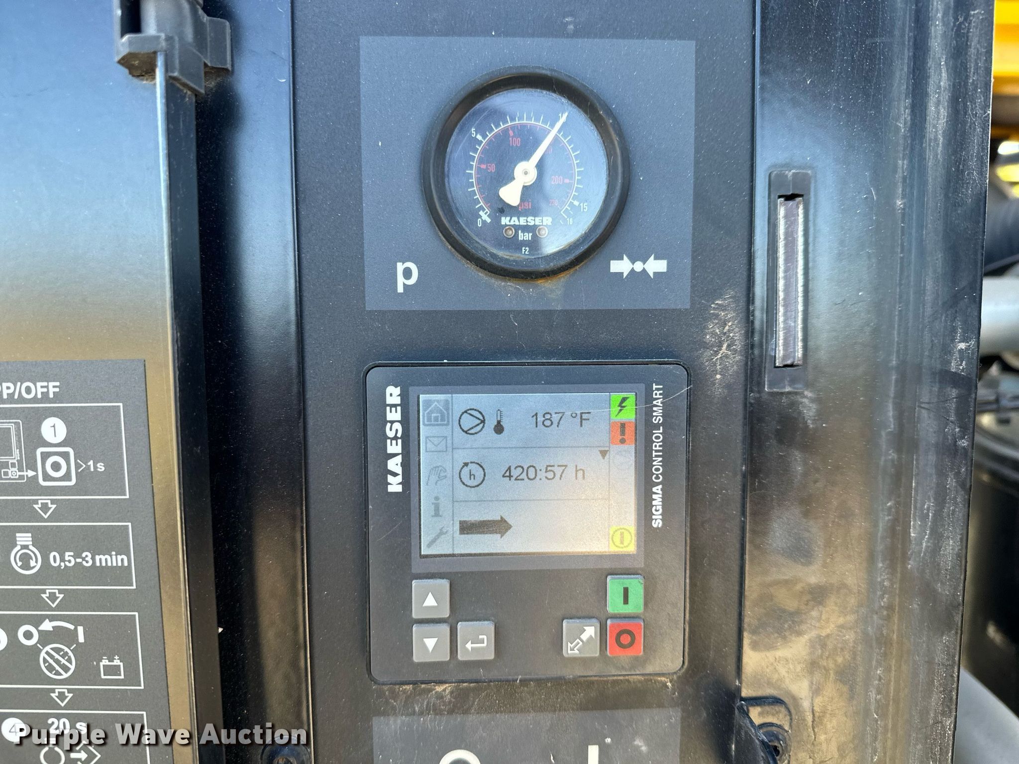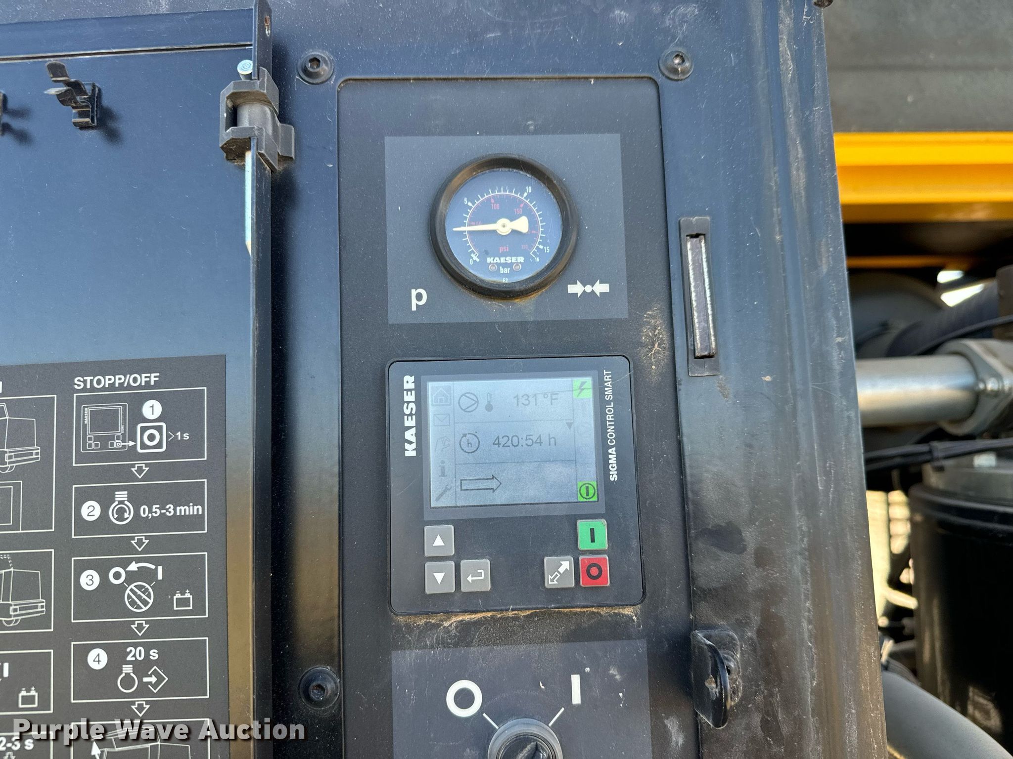 Purple Wave is selling a used Air Compressor in Kansas. This item is a 2015 Kaeser M114 air compressor with the following: Hours: 421 on meter, Serial: 1029