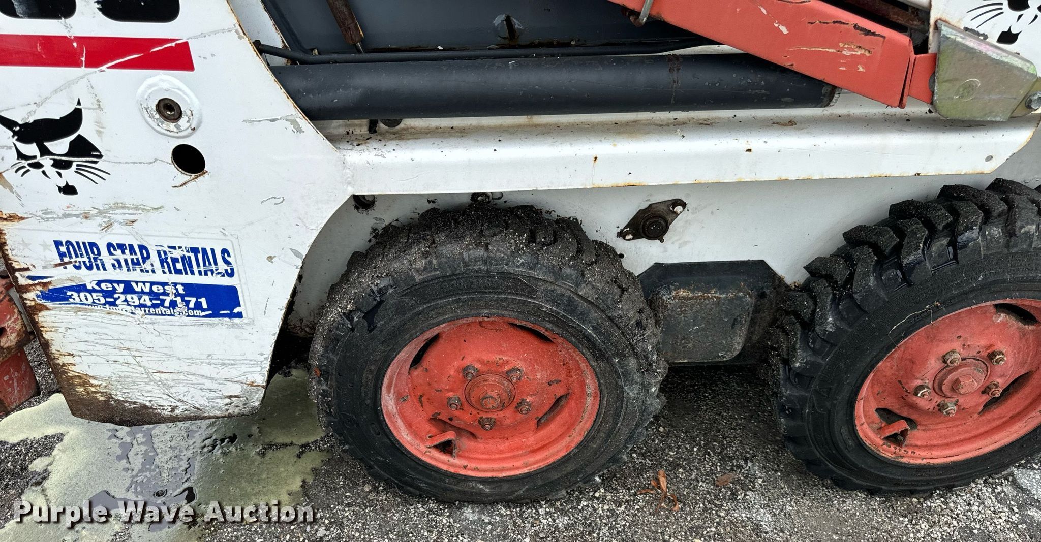 2006 Bobcat 463 skid steer loader. Hours: 1,422 on meter, Serial: 538913197. Engine Kubota D1005, Cylinders: 3, Fuel type: Diesel. Transmission Hydrostatic. Operators station OROPS, Bucket control: Foot. Features Auxiliary hydraulics, Quick coupler: Manual, Bucket Width: 35". Tires Front: 5.70-12, Foam filled. Four Star Rentals. 5216 Overseas Highway. Key West, FL 33040