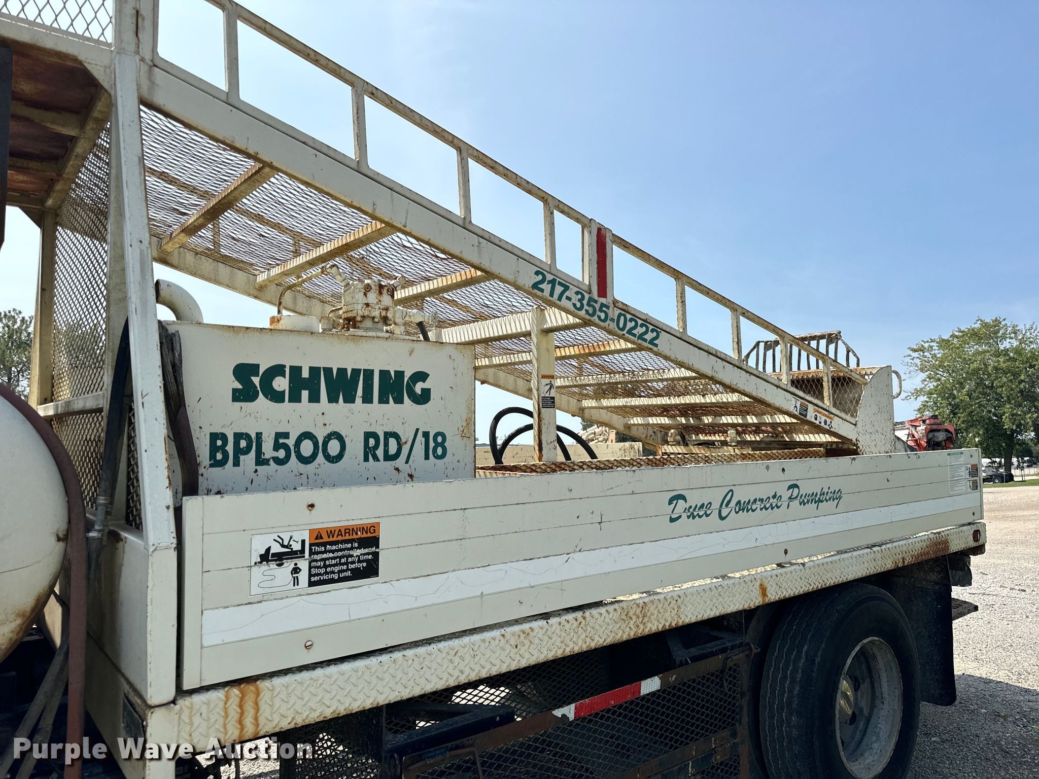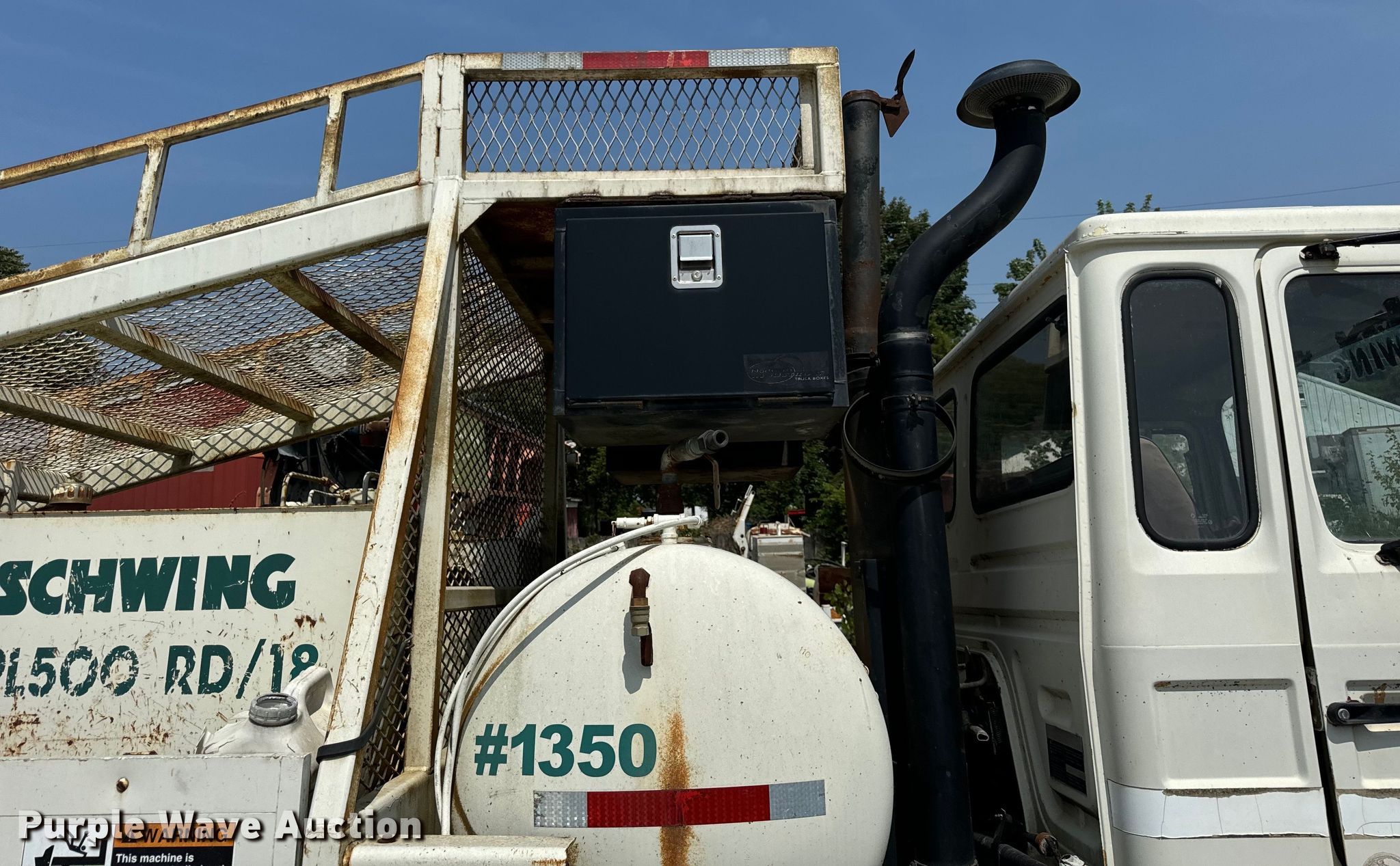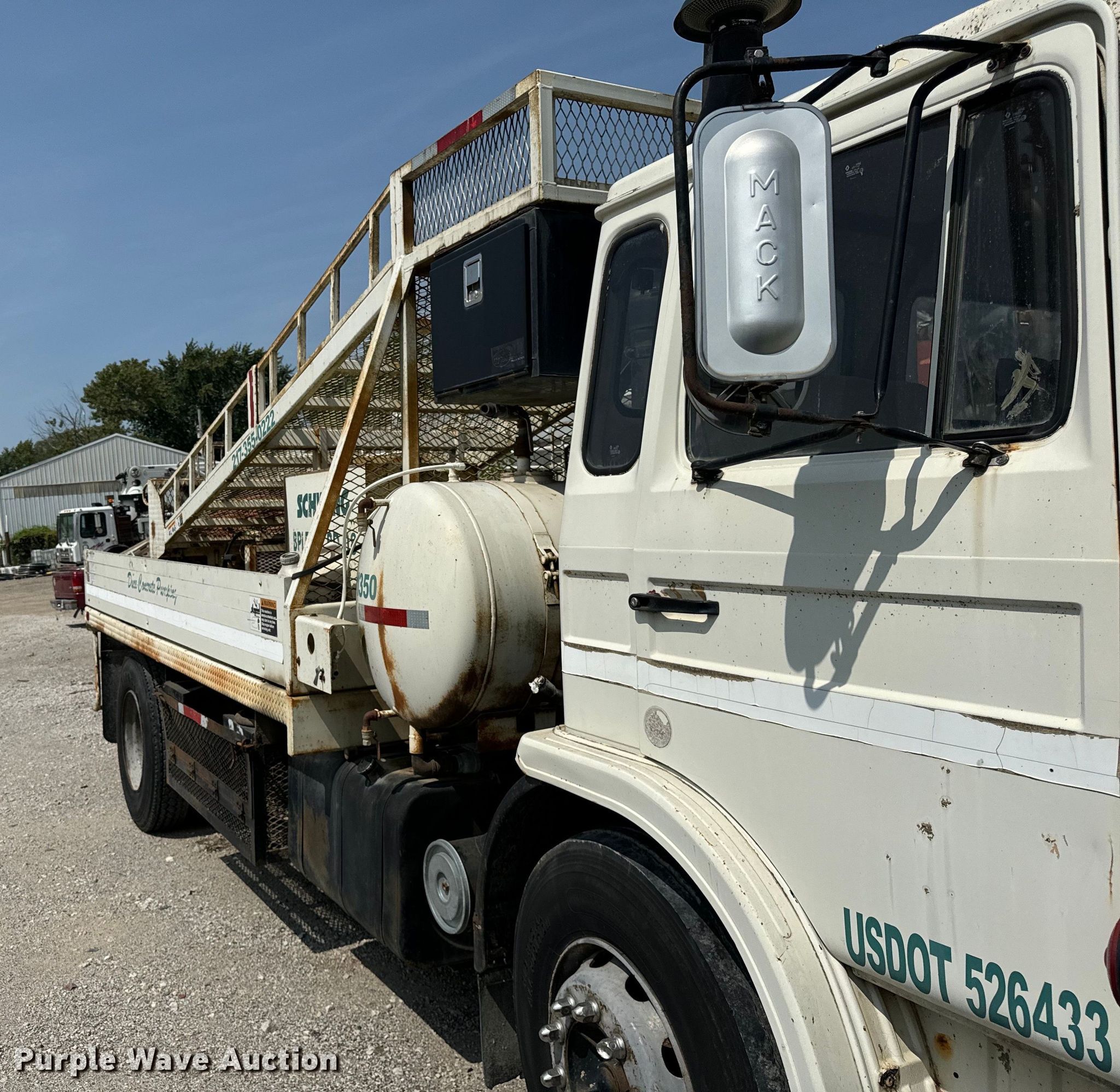 1988 Mack MS200 concrete pump truck. Miles: 251,208 on odometer, Hours: 5,313 on meter, VIN: VG6M111B1JB029383, Unit #: 1350. Engine Renault, Displacement: 5.5L, Cylinders: 6, Fuel type: Diesel. Transmission Manual. Chassis Axles: Single, Suspension: Spring, Brakes: Air. Interior Heat. Features Pump Schwing BPL500 RD-18, Serial: 171305036. Tires Size: 11R22.5. Notes Windshield chipped or cracked, Possible transmission issues, linkage issues., Possible pump electrical issues, Unit must be towed or hauled, Unknown operating condition. Illinois title. Mileage has not been verified. Exempt will be written in the odometer disclosure on the title. Duce Construction Company. Champaign, IL 61822