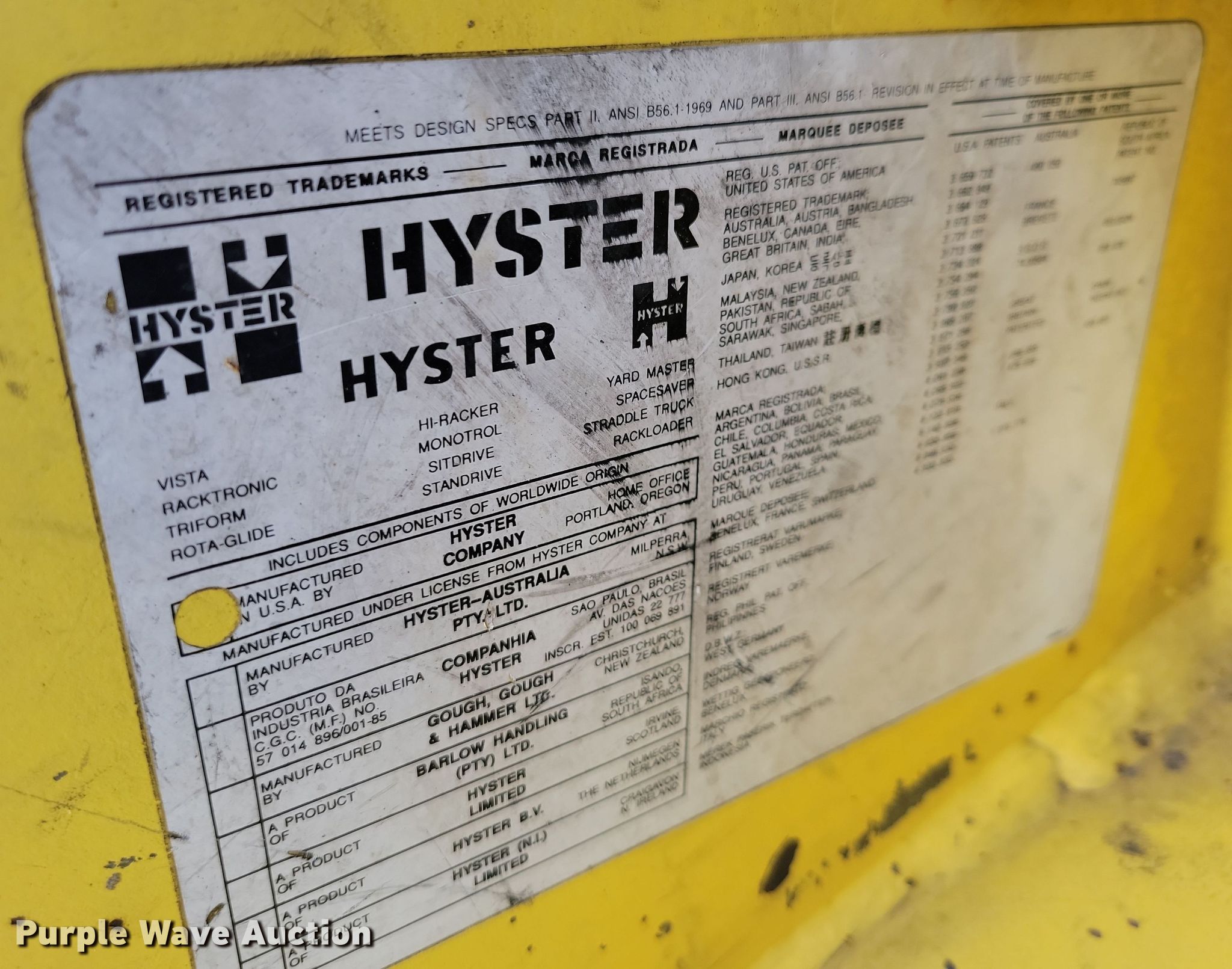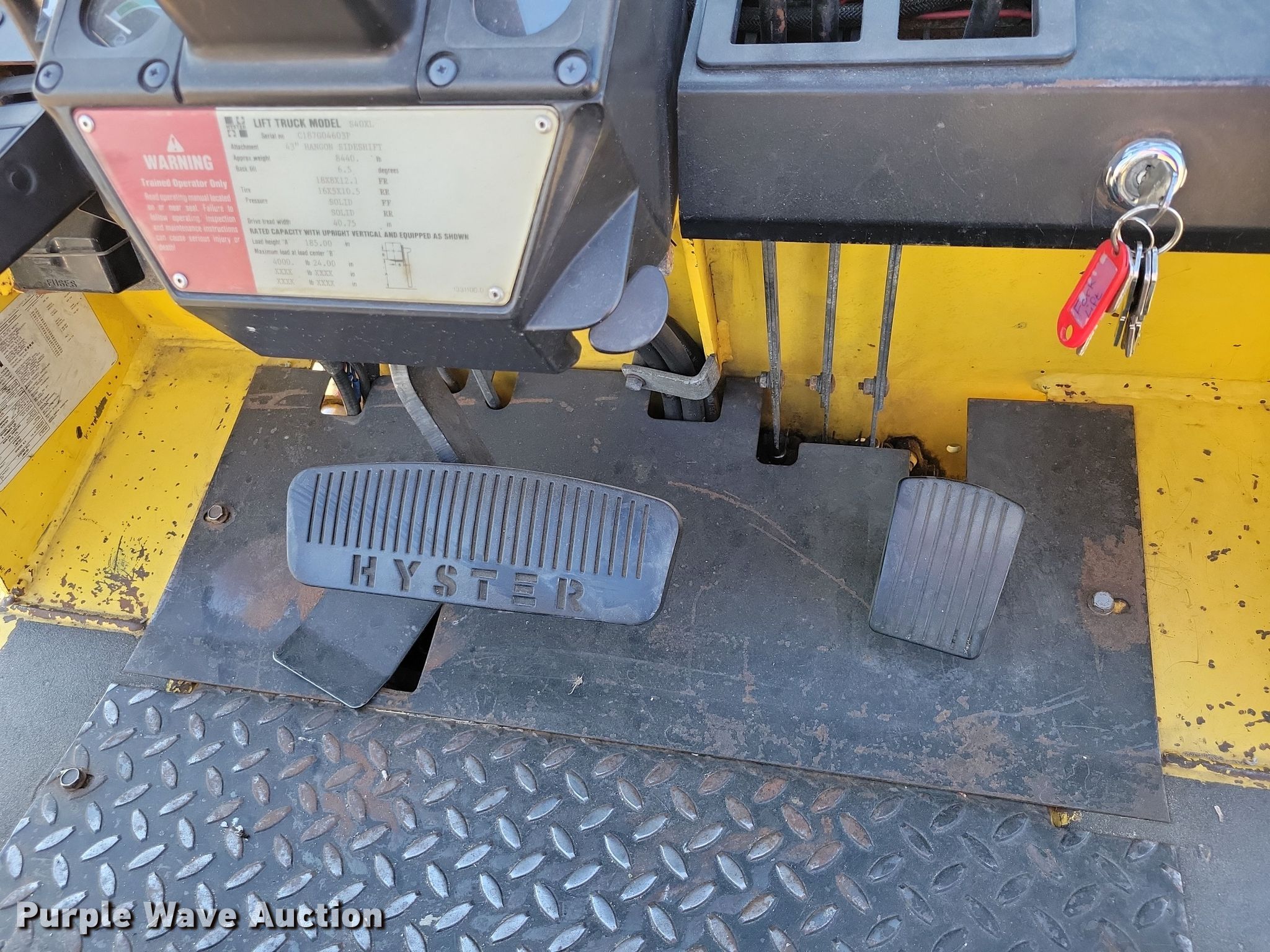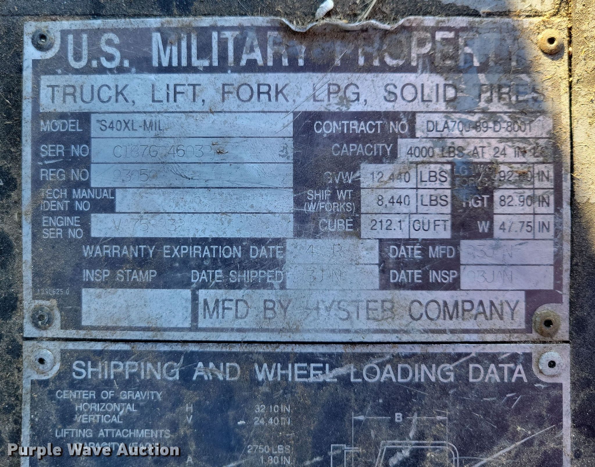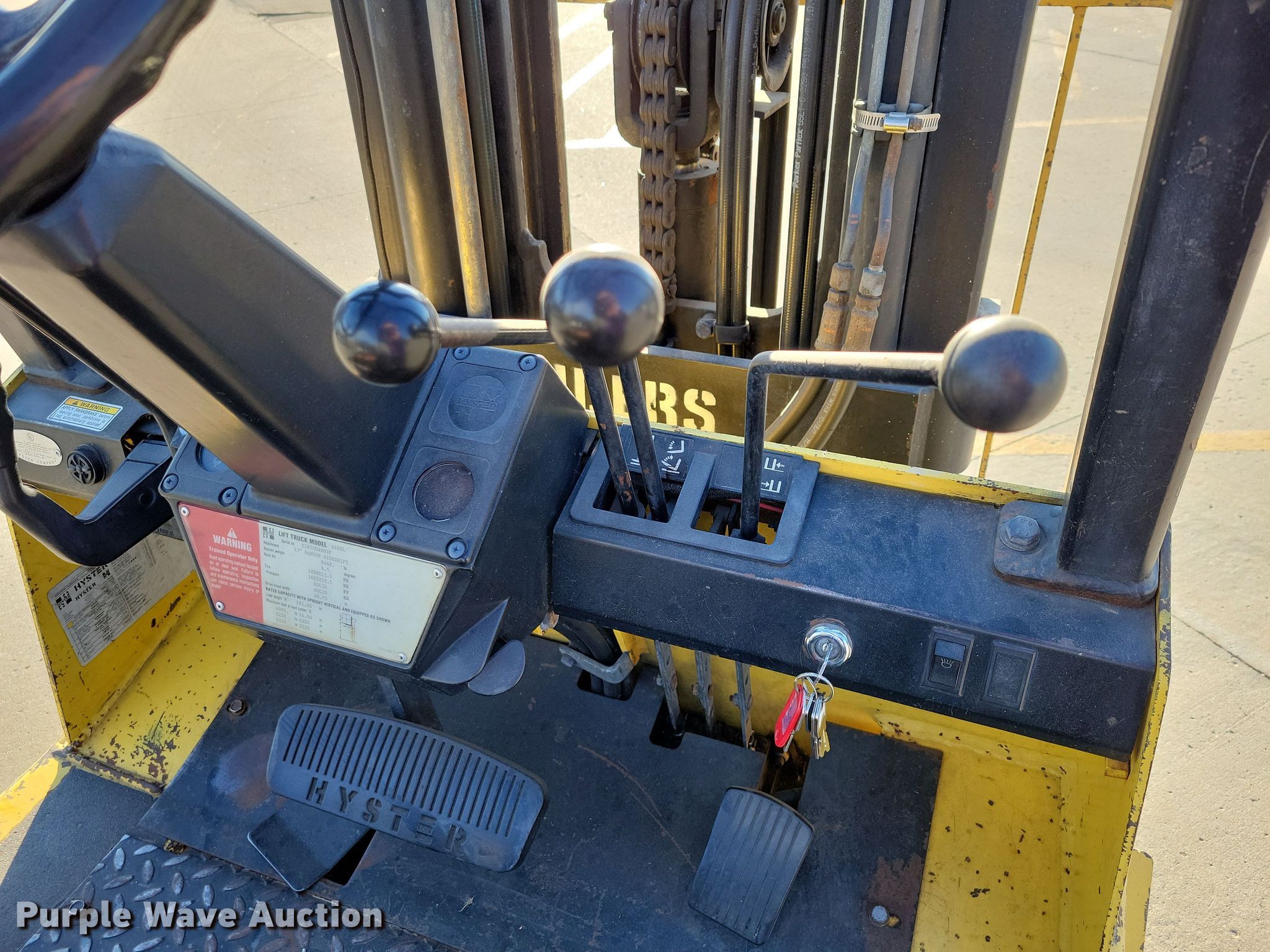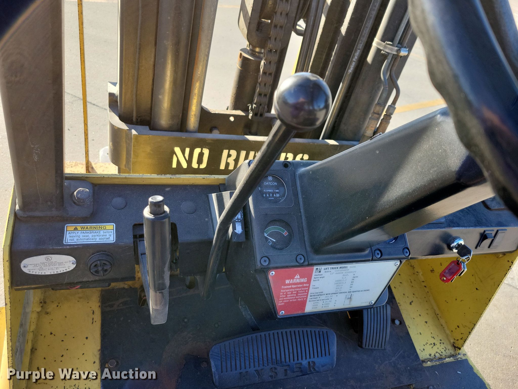 Purple Wave is selling a used Warehouse Forklift in South Dakota. This item is a 1993 Hyster S40XL-MIL forklift with the following: Hours: 4,424 on meter, Serial: C187G04603P