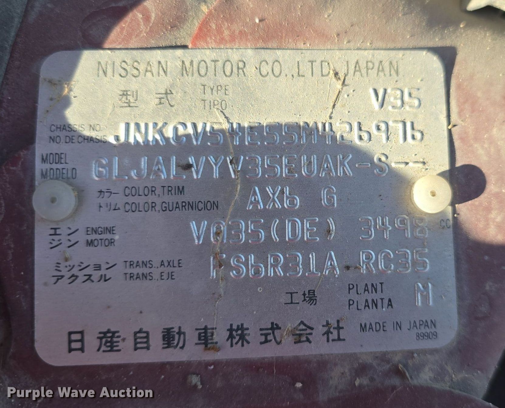 Purple Wave is selling a used Passenger Vehicle in Kansas. This item is a 2005 Infiniti G35 with the following: Miles: 165,413 on odometer, VIN: JNKCV54E55M426976