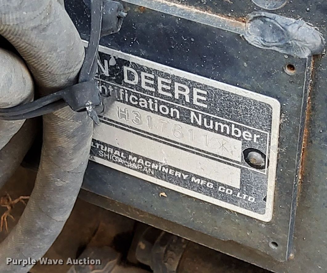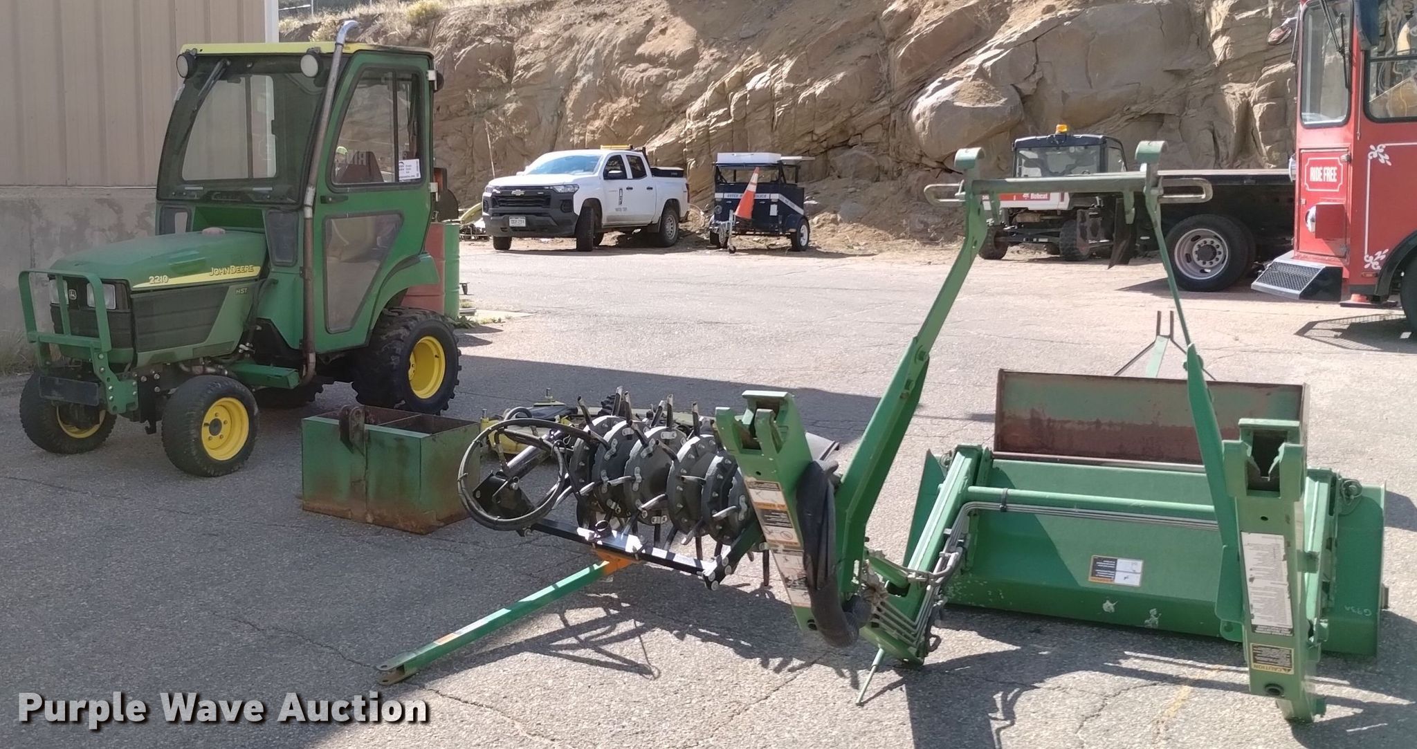 2004 John Deere 2210 MFWD tractor. Hours: 1,064 on meter, Serial: H317611. Engine Yanmar 3TNE74-EJKH, Displacement: 1.0L, Cylinders: 3, Fuel type: Diesel. Transmission Hydrostatic. Operators station Heat. Features PTO: 540, Three point, Hydraulic remote sets Rear: 2, Loader John Deere 210, Quick attach, Controls: Joystick, Bucket Width: 54", Weight box Width: 24", Hitch: Three point, Aerator Width: 32", Hydraulic lift, Box blade Cammond, Width: 48", Hitch: Three point, Rotary mower John Deer, Width: 54". Tires Front: 18x8.50-10, Rear: 26x12.00-12. Notes Differential may need replaced. Town of Estes Park. Estes Park, CO 80517