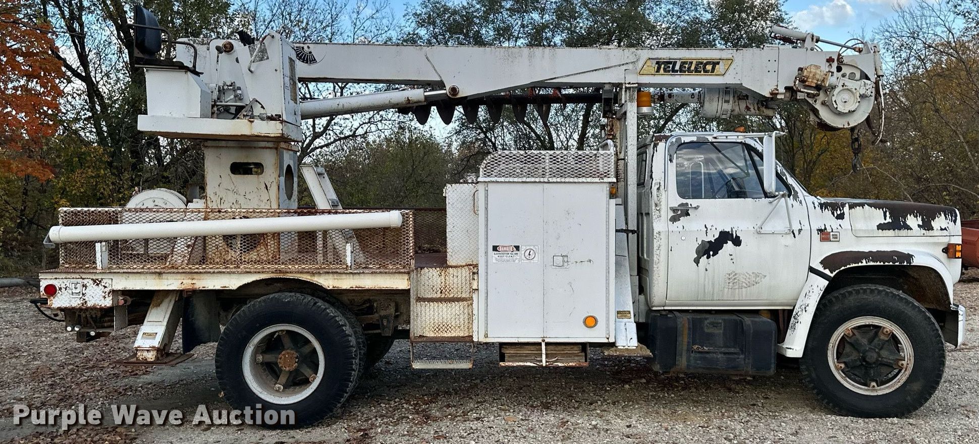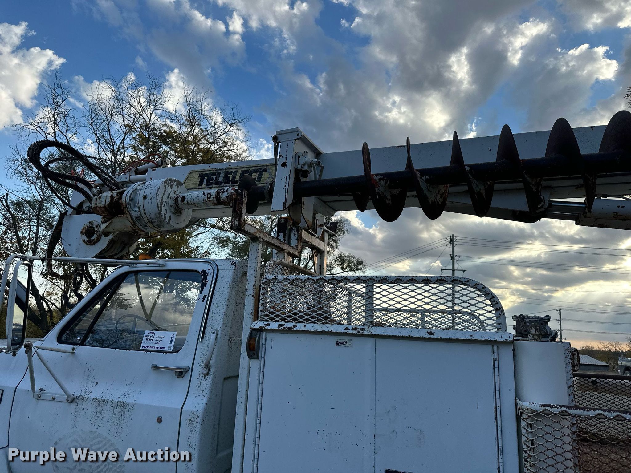1990 GMC 7000 digger derrick truck. Miles: 30,269 on odometer Actual miles unknown, VIN: 1GDL7D1G9LV507929. Engine Displacement: 8.2L, Cylinders: 8, Fuel type: Diesel. Transmission Manual. Chassis Axles: Single, Suspension: Spring, Brakes: Hydraulic, PTO. Interior Heat. Features Bed 13' 6" L x 96" W, Boom Telelect, Boom length: 17', Boom controls Platform/ basket, Pole guide, Auger Diameter: 18".. Tires Size: 10.00-20. Kansas title. Mileage has not been verified. Exempt will be written in the odometer disclosure on the title. Title distribution may be delayed up to 14 days from verification of funds. City of Holton, KS. Holton, KS 66436