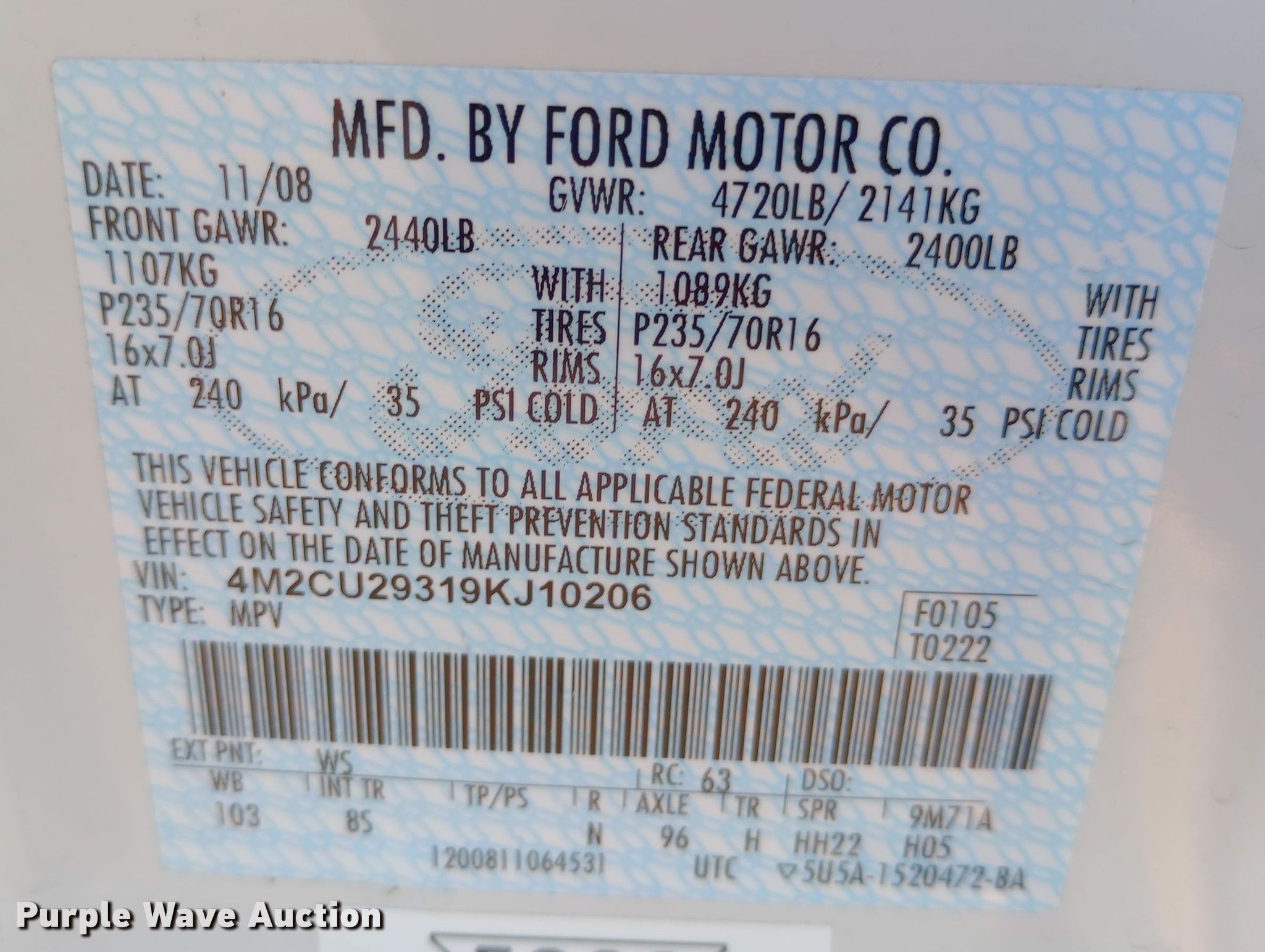 Purple Wave is selling a used Passenger Vehicle in Kansas. This item is a 2009 Mercury Mariner SUV with the following: Miles: Unknown, VIN: 4M2CU29319KJ10206, Unit #: 5002