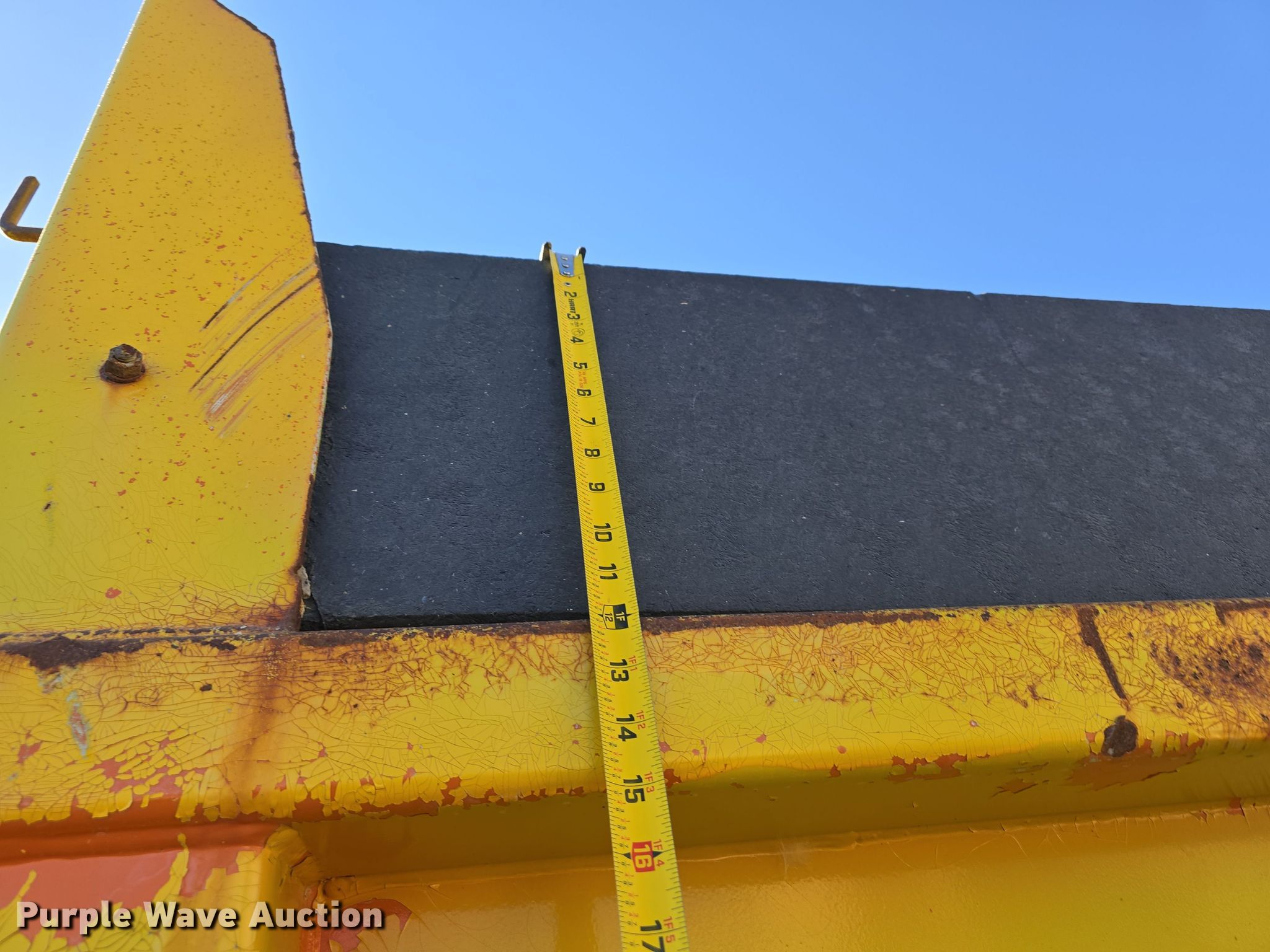 2010 Freightliner Business Class M2 dump truck. Miles: 223,497 on odometer, Hours: 216 on meter, VIN: 1FVHC7CV3ADAN9362. Engine Mercedes Benz, Displacement: 12.8L, Cylinders: 6, Fuel type: Diesel, Engine brake. Transmission Eaton Fuller 8LL, Manual, Speed: 10. Chassis Double frame, Axles: Tandem, Differential lock: Full, Suspension: Spring over walking beam, Brakes: Air, Front mount PTO, GVWR: 58,000 lbs FAWR: 18,000 lbs, IAWR: 20,000 lbs, RAWR: 20,000 lbs, Wheelbase: 208". Interior Heat, Heated mirrors, Cruise control. Features Dump bed Tenco TCB-14-T-AH-S-LF, 14' L x 98" W, Side height: 42", Side board height: 12", Bed type: Steel, Ram: Single, End gate: Air operated, Spreader Tenco. Tires Front: 385/65R22.5, Rear: 11R22.5. Notes Dash warning indicator: Check engine, ABS, Brake, Non-operational hydraulic lift cylinder, Non-operational unit. Iowa title. Adair County Secondary Roads. Greenfield, IA 50849