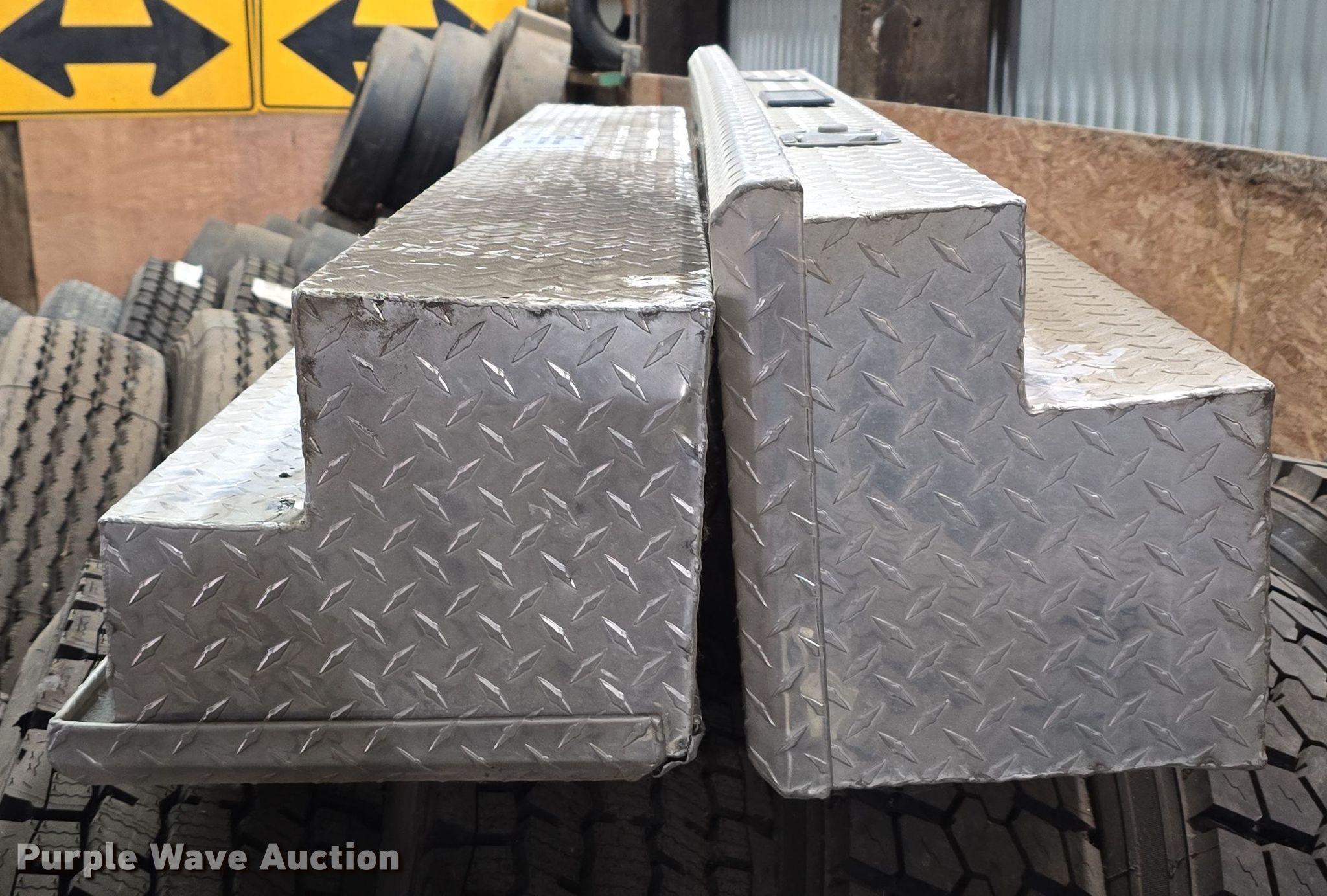 Purple Wave is selling a used Truck Part and Attach. in Iowa. This item is a (2) Bomgaars toolboxes with the following: 68" L x 13" W