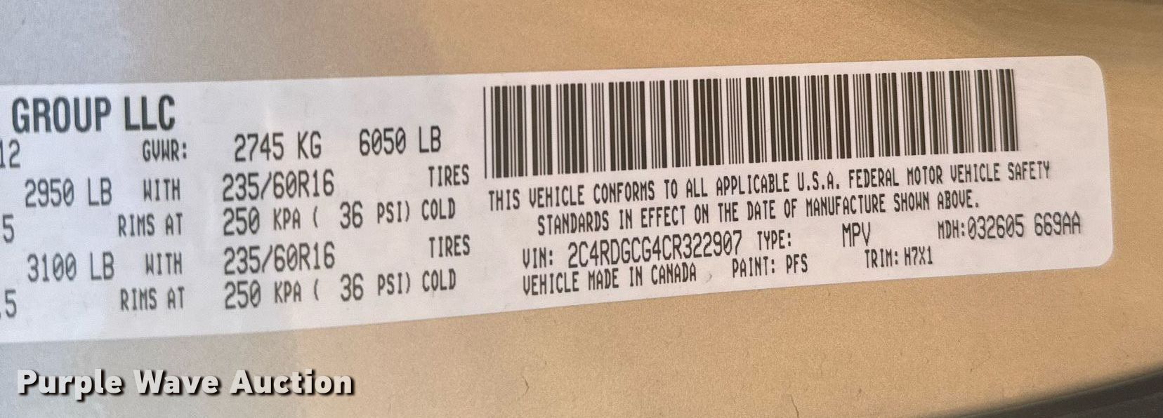 Purple Wave is selling a used Passenger Vehicle in Kansas. This item is a 2012 Dodge Grand Caravan handicap accessible van with the following: Miles: 146,772 on odometer, VIN: 2C4RDGCG4CR322907