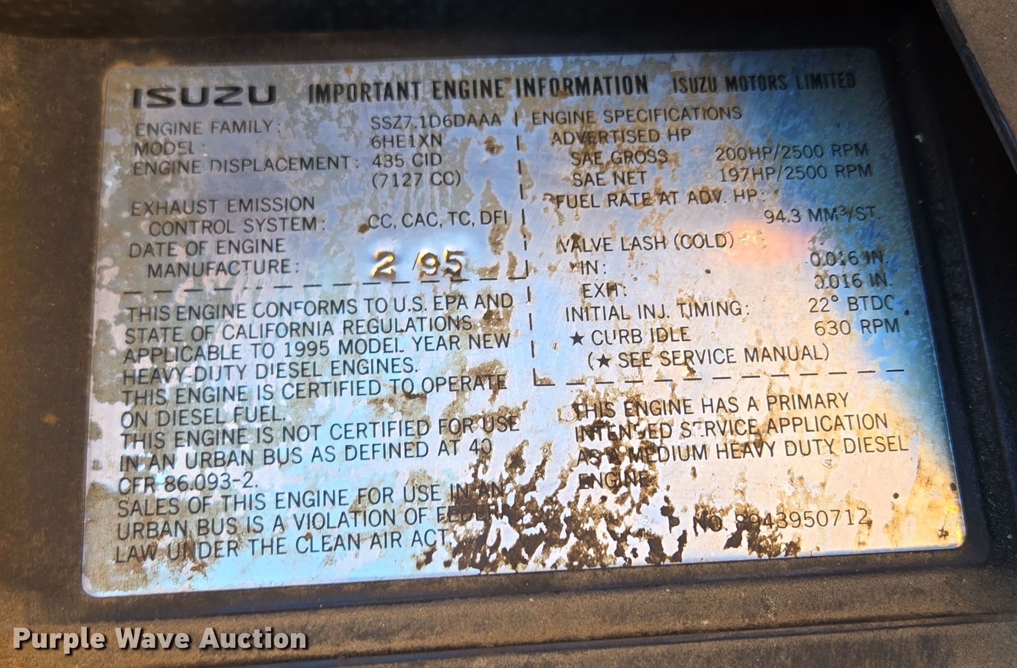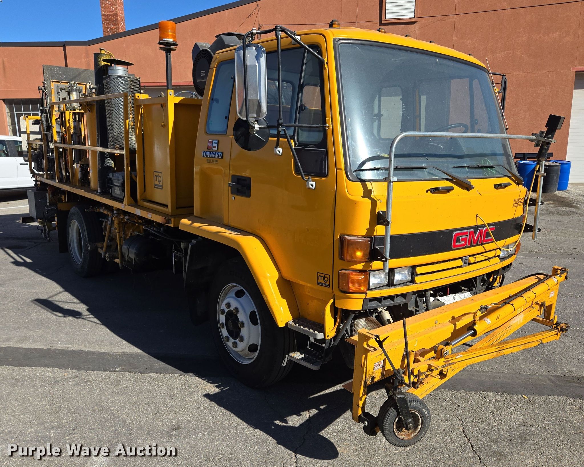 1995 GMC Forward W6 flatbed truck. Miles: 20,323 on odometer, VIN: J8DH6A126S3100367. Engine Isuzu 6HE1XN, Displacement: 7.1L, Cylinders: 6, Fuel type: Diesel. Transmission Automatic. Chassis Axles: Single, Suspension: Spring, Brakes: Hydraulic. Interior AC, Heat. Features Flatbed 198" L x 90" W, Paint striper John Deere Series 220, Atlas Copco engine, Solvent tank, Oil tank, (2) paint tanks, Bead tank, MB water heater. Tires Size: 9R22.5. Missouri title. Mileage has not been verified. Exempt will be written in the odometer disclosure on the title. Title distribution may be delayed up to 14 days from verification of funds. City of Independence / Fire Department. Independence, MO 64052