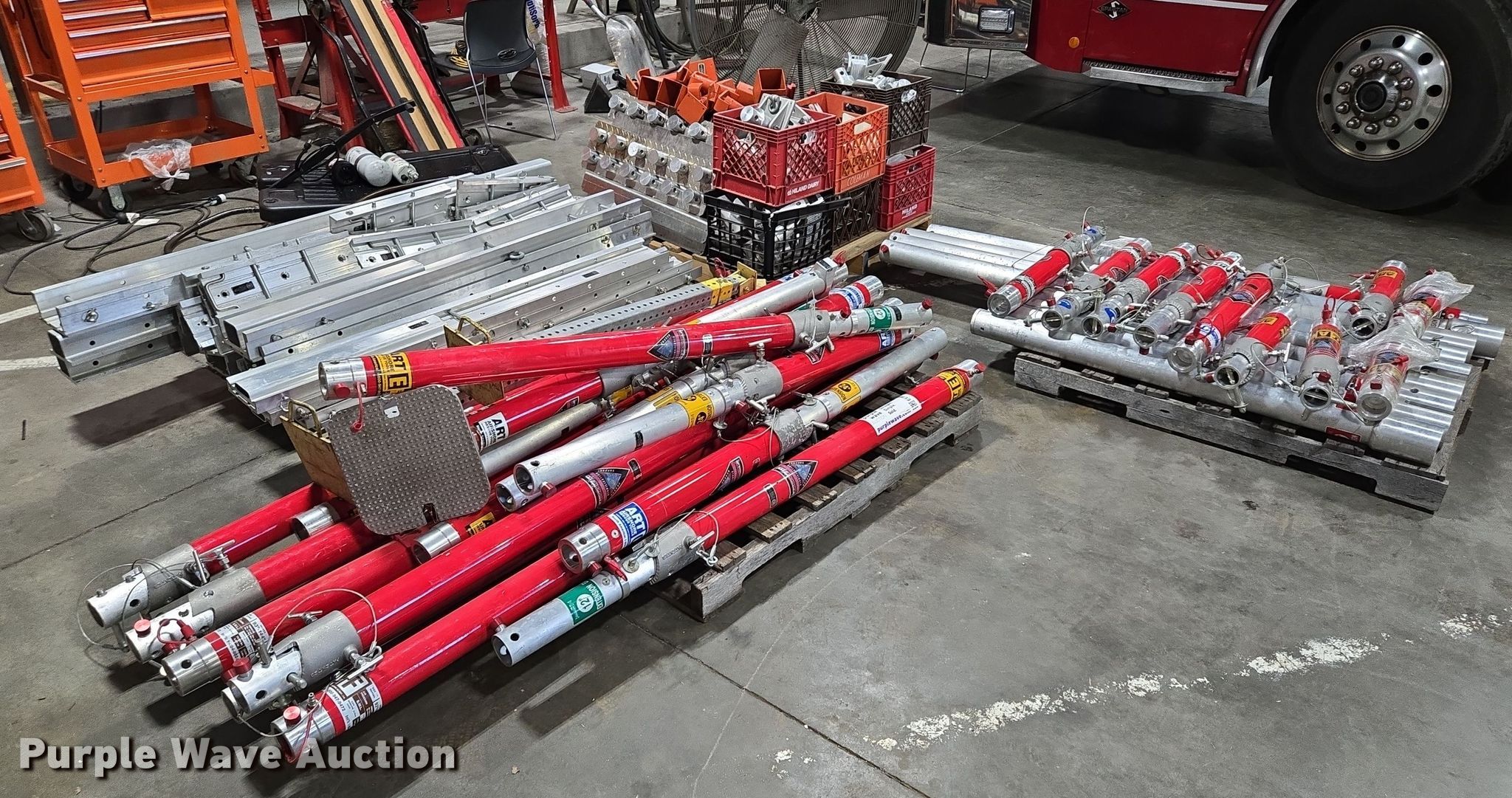 Airshore shoring arms. (5)-21" to 28" shores, (5) 26"to 37" shores, Approx. 8 93" to 144", Strutt attachments, Extension couplings. City of Independence / Fire Department. Independence, MO 64052