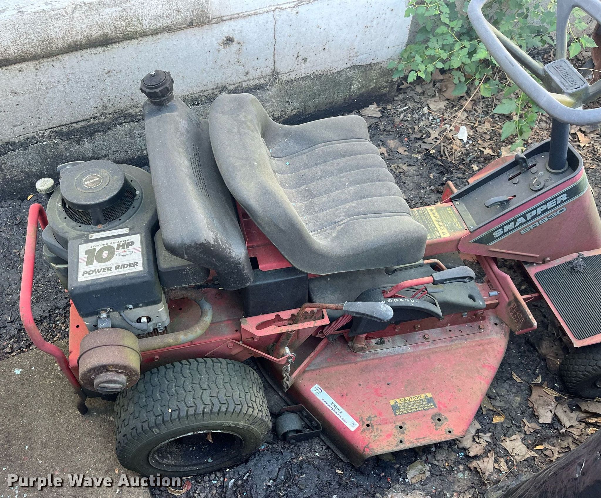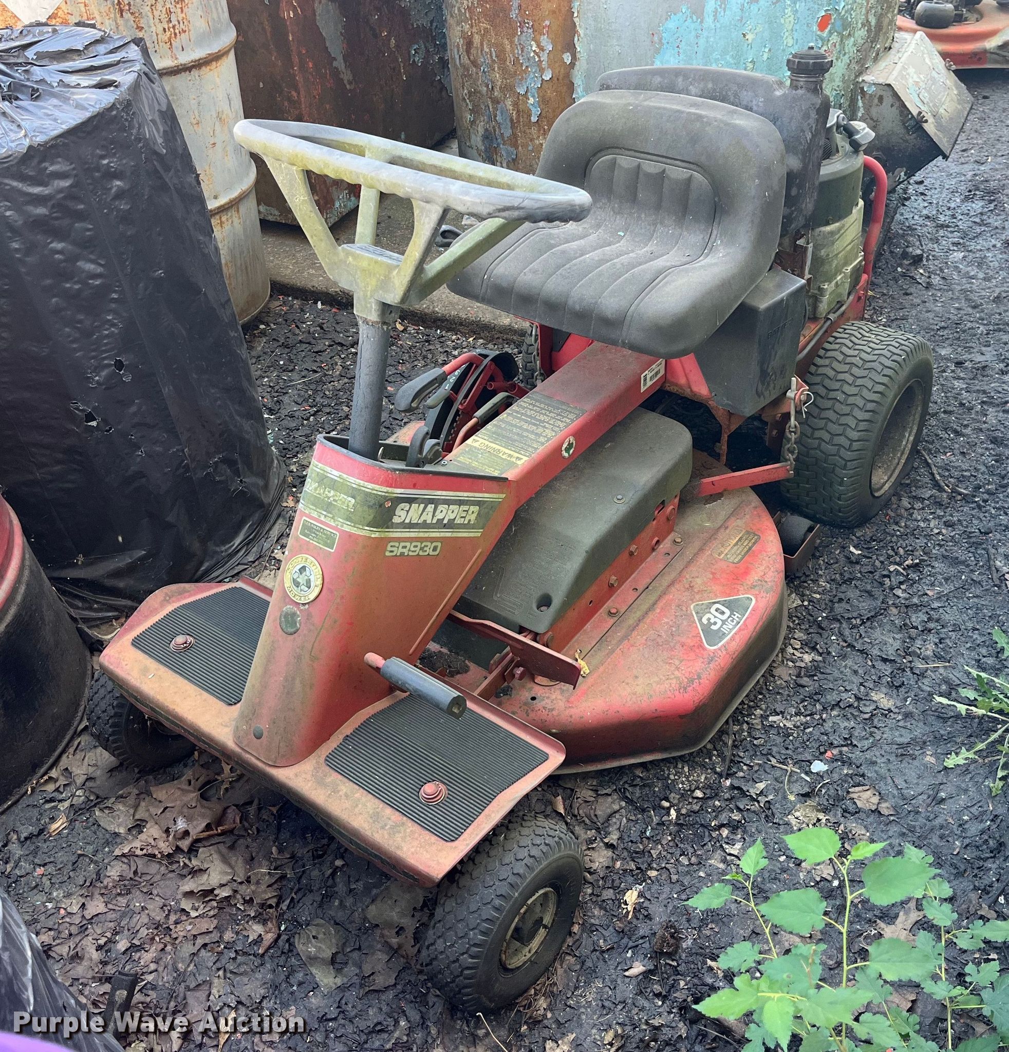 Purple Wave is selling a used Lawn Mower in Missouri. This item is a Snapper SR930 lawn mower with the following: Hours: Unknown, Cutting width: 30"