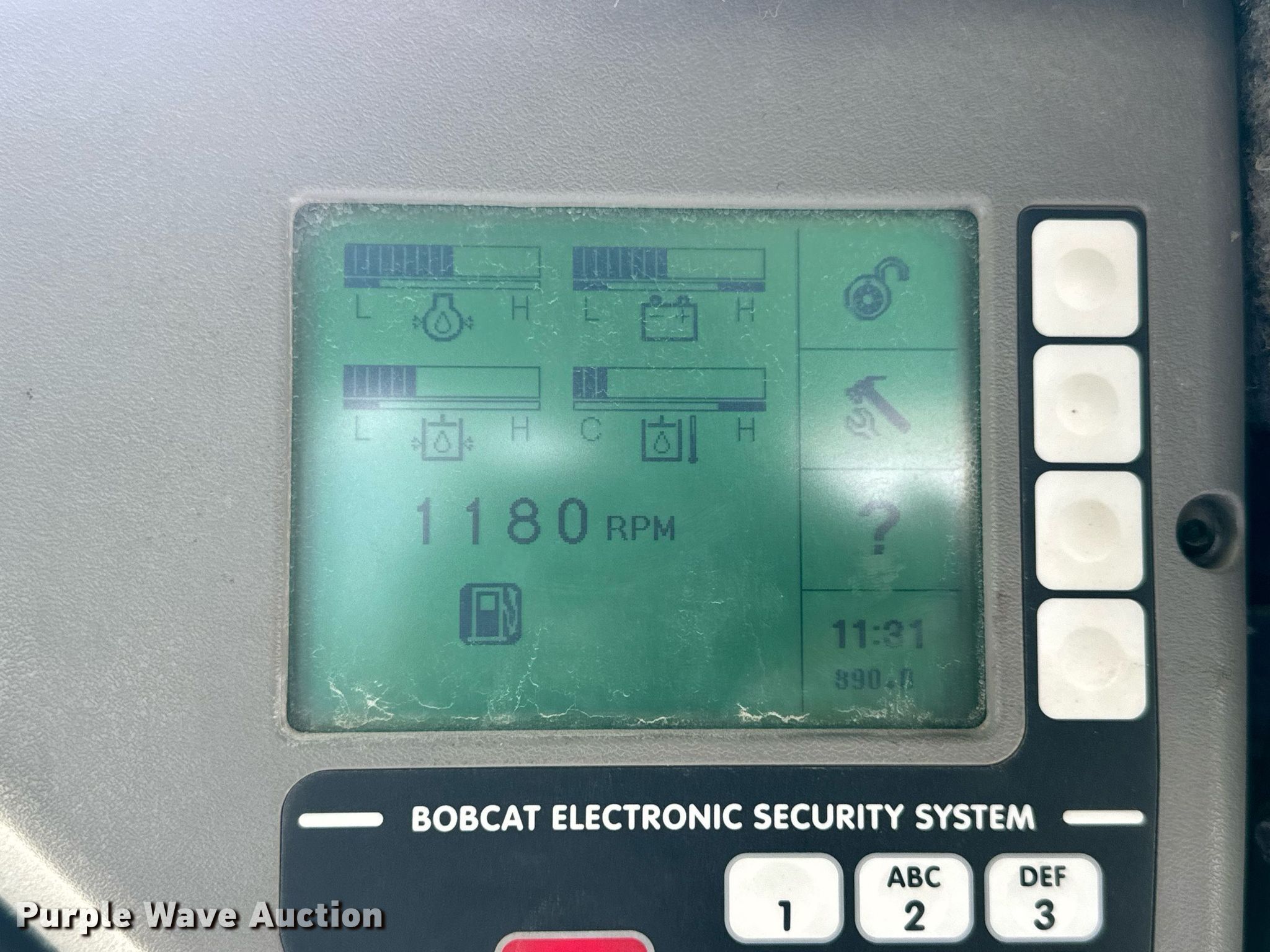 2008 Bobcat S300 skid steer loader. Hours: 2,920 on meter, Serial: 531117370. Engine Kubota, Cylinders: 4, Fuel type: Diesel. Transmission Hydrostatic, Two speed travel. Operators station Enclosed cab, AC, Heat, Bucket control: Foot, Electronic Monitoring System panel. Features Auxiliary hydraulics, Auxiliary electrical outlet, Quick coupler: Hydraulic, Bucket Width: 79.5", Cutting edge: Bolt-on. Tires Size: 33x12-20. Notes Non-operational fuel gauge , Hydraulic leak. Jefferson City, MO 65109