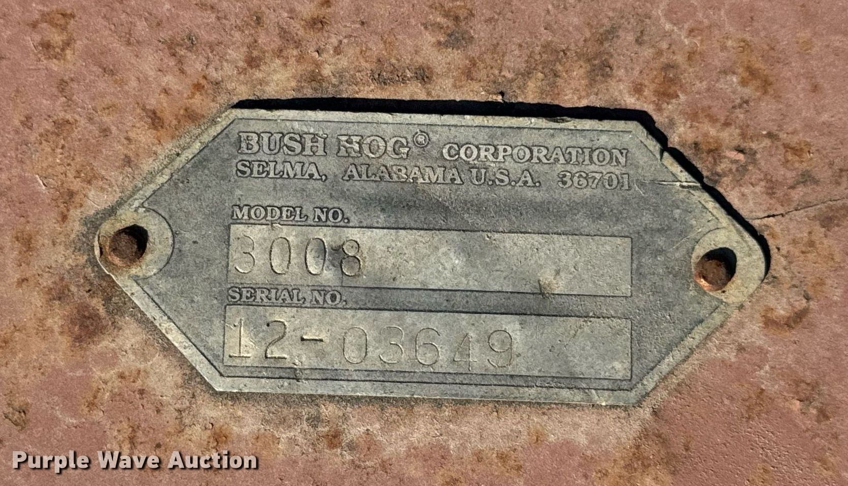 Purple Wave is selling a used Mower, Cutter, Shredder in Missouri. This item is a Bush Hog 3008 rotary mower with the following: Serial: 12-03649