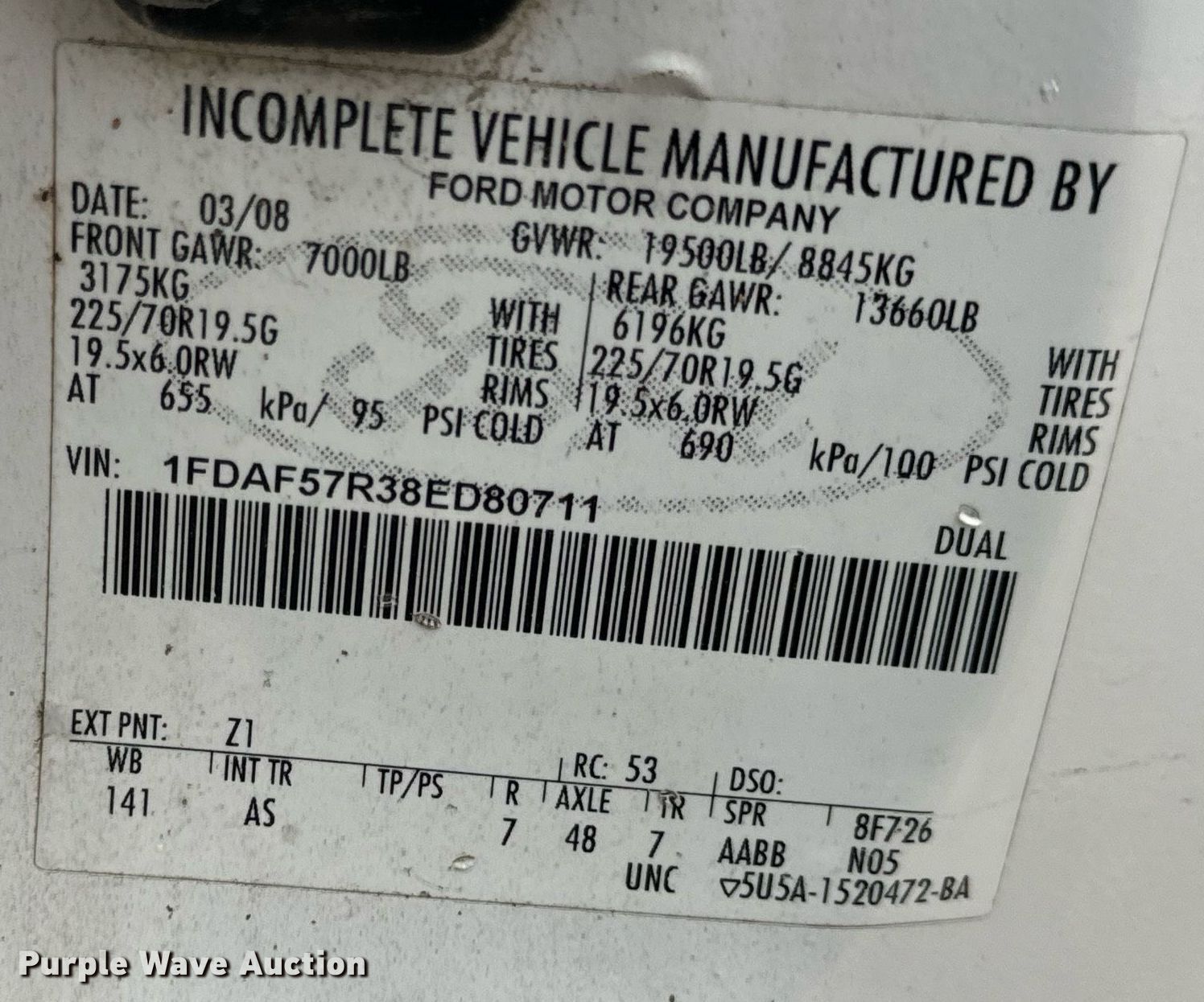 - VIN: 1FDAF57R38ED80711