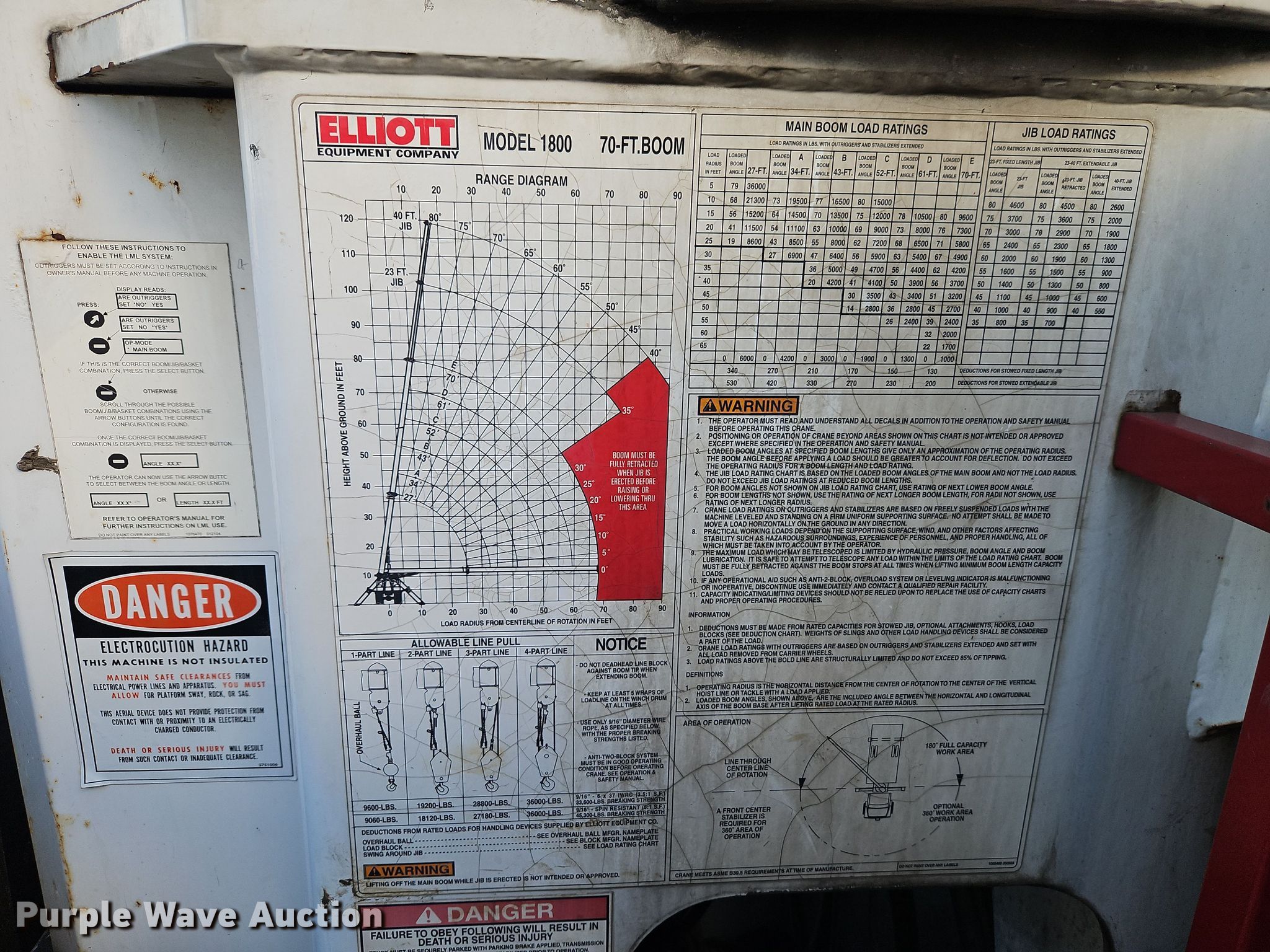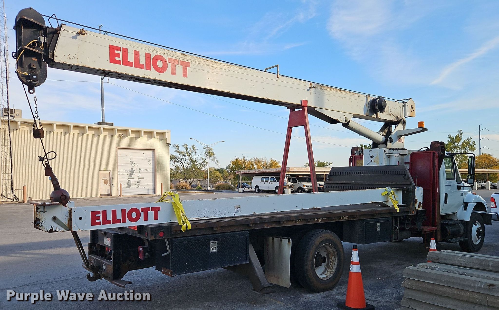 2004 International 7400 crane truck. Miles: 141,525 on odometer, Hours: 21,144 on meter, VIN: 1HTWCADR04J016914. Engine International DT530, Displacement: 8.7L, Cylinders: 6, Fuel type: Diesel. Transmission Allison, Automatic. Chassis Axles: Single, Suspension: Spring, Brakes: Air, PTO, GVWR: 35,000 lbs FAWR: 10,000 lbs, RAWR: 23,000 lbs, Wheelbase: 236". Interior AC, Heat, Cruise control, Brake controller. Features Flatbed 20' L x 96" W, Crane Elliott 1800 Serial: AP3158, Boom Telescopic, Maximum boom length: 70' Sections: 3, Maximum lift capacity: 36,000 lbs, Jib: 23', Boom controls Ground, Crane ball & hook, Manuals, Lift chart. Tires Size: 11R22.5. Kansas title. Title distribution may be delayed up to 14 days from verification of funds. Kansas City Board of Public Utilities. Kansas City, KS 66102