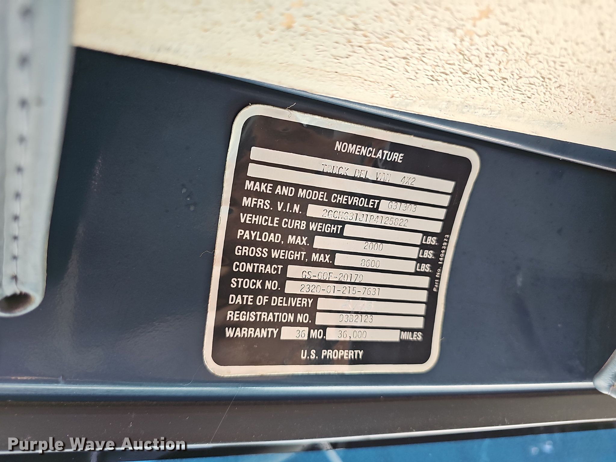 Purple Wave is selling a used Delivery Truck or Van in Arkansas. This item is a 1993 Chevrolet G-Series utility van with the following: Miles: 23,981 on odometer, VIN: 2GCHG31J1P4125822, Unit #: 25822