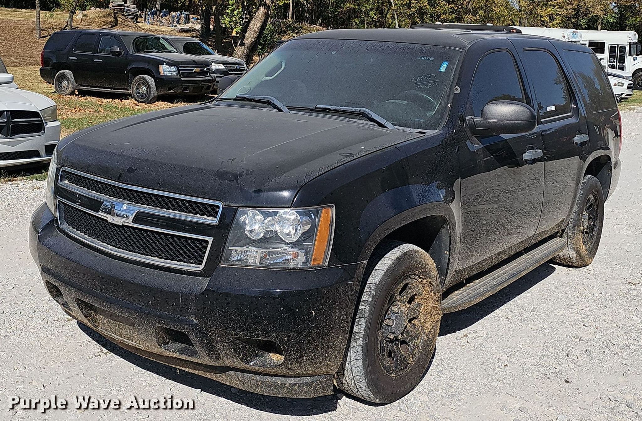 2014 Chevrolet Tahoe Police SUV. Miles: 194,017 on odometer, VIN: 1GNLC2E02ER217438, Unit #: 50727. Engine Displacement: 5.3L V8 OHV, Cylinders: 8, Fuel type: Gas. Transmission Automatic. Interior AC, Heat, Seat: Power driver, Power passenger, Power windows, Power locks, Cruise control. Tires Size: 265/60R17. Notes Dead battery. Arkansas title. Title distribution may be delayed up to 14 days from verification of funds. Benton County. Bentonville, AR 72712