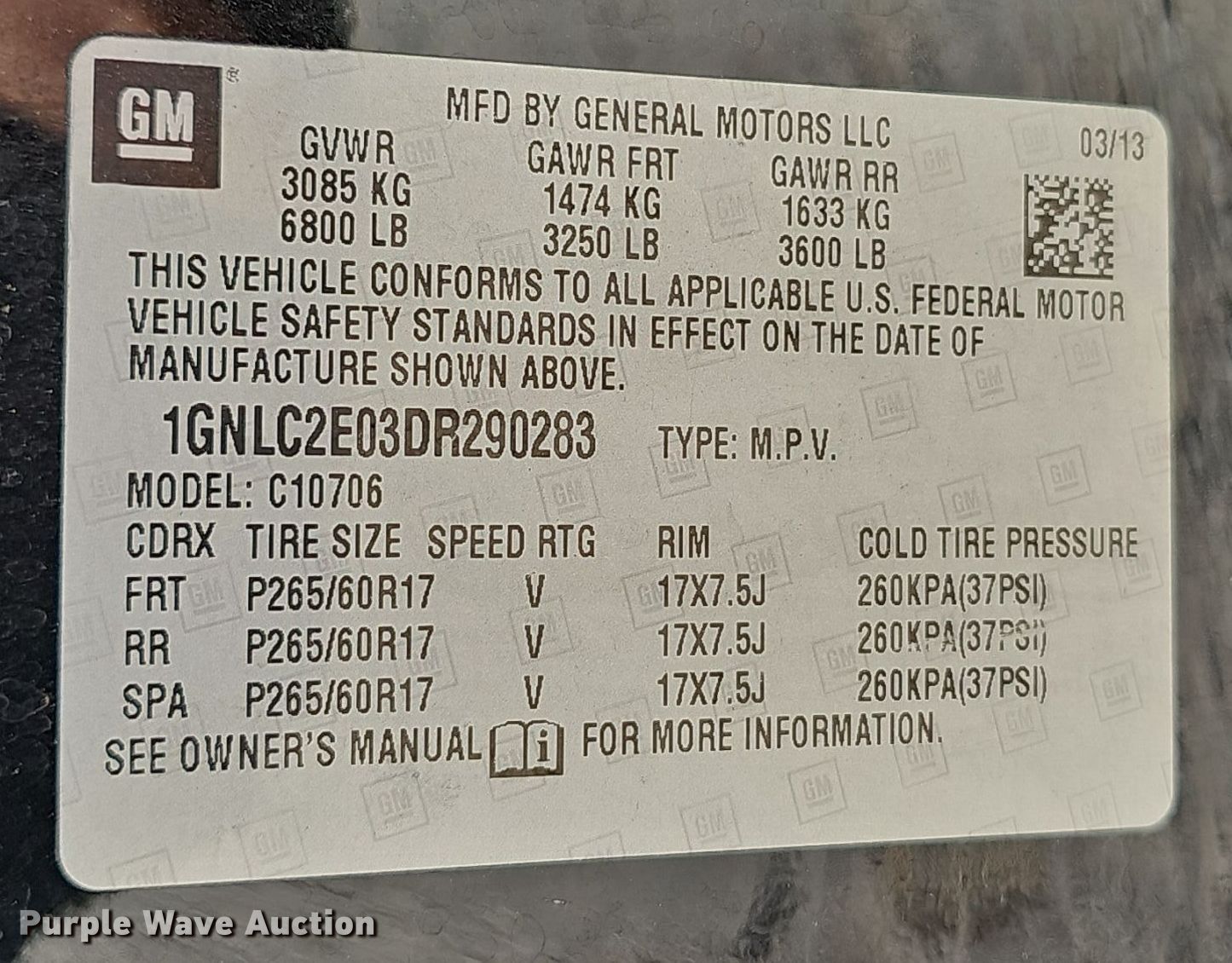 Purple Wave is selling a used Passenger Vehicle in Arkansas. This item is a 2013 Chevrolet Tahoe Police SUV with the following: Miles: 220,636 on odometer, VIN: 1GNLC2E03DR290283